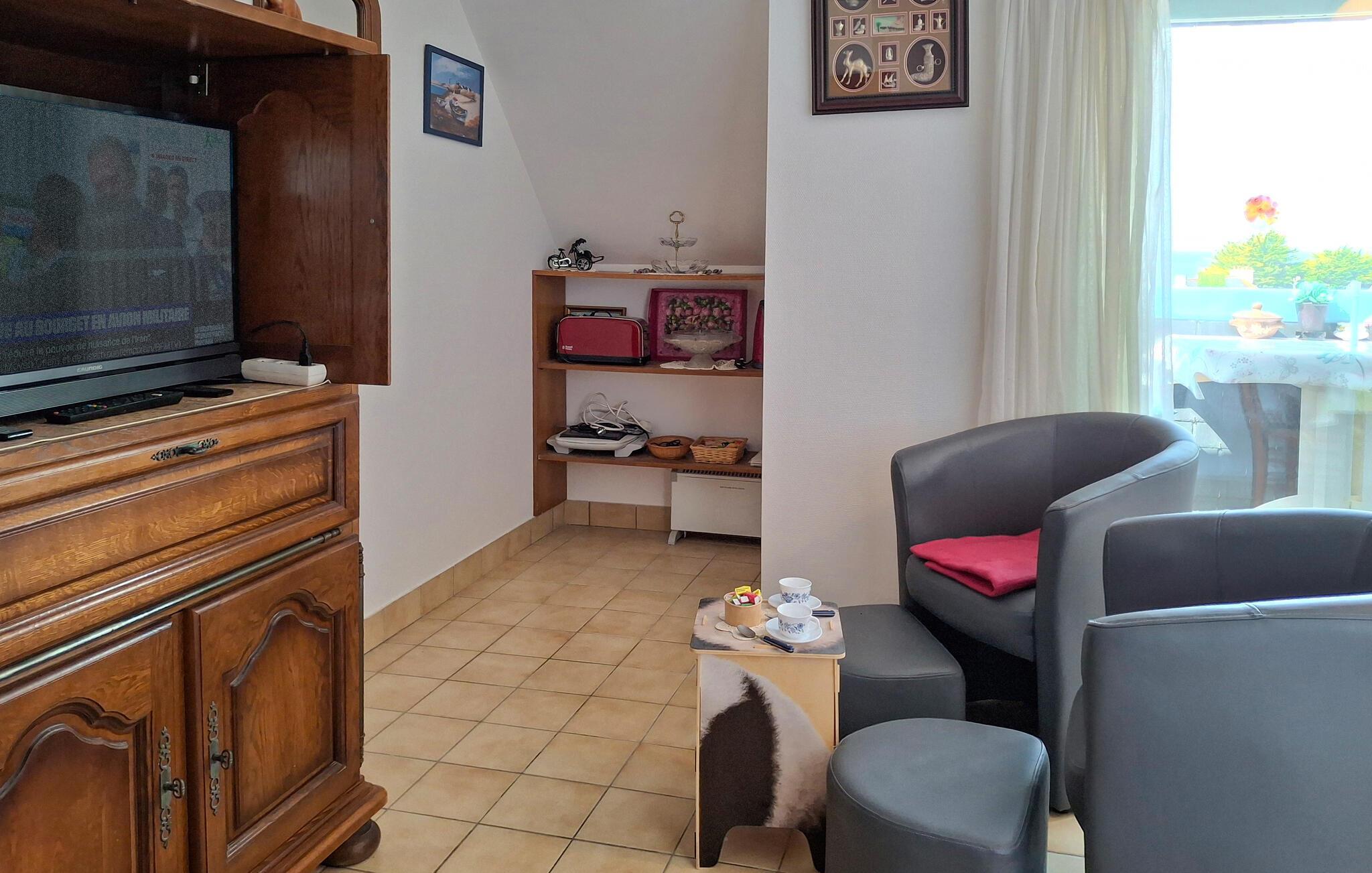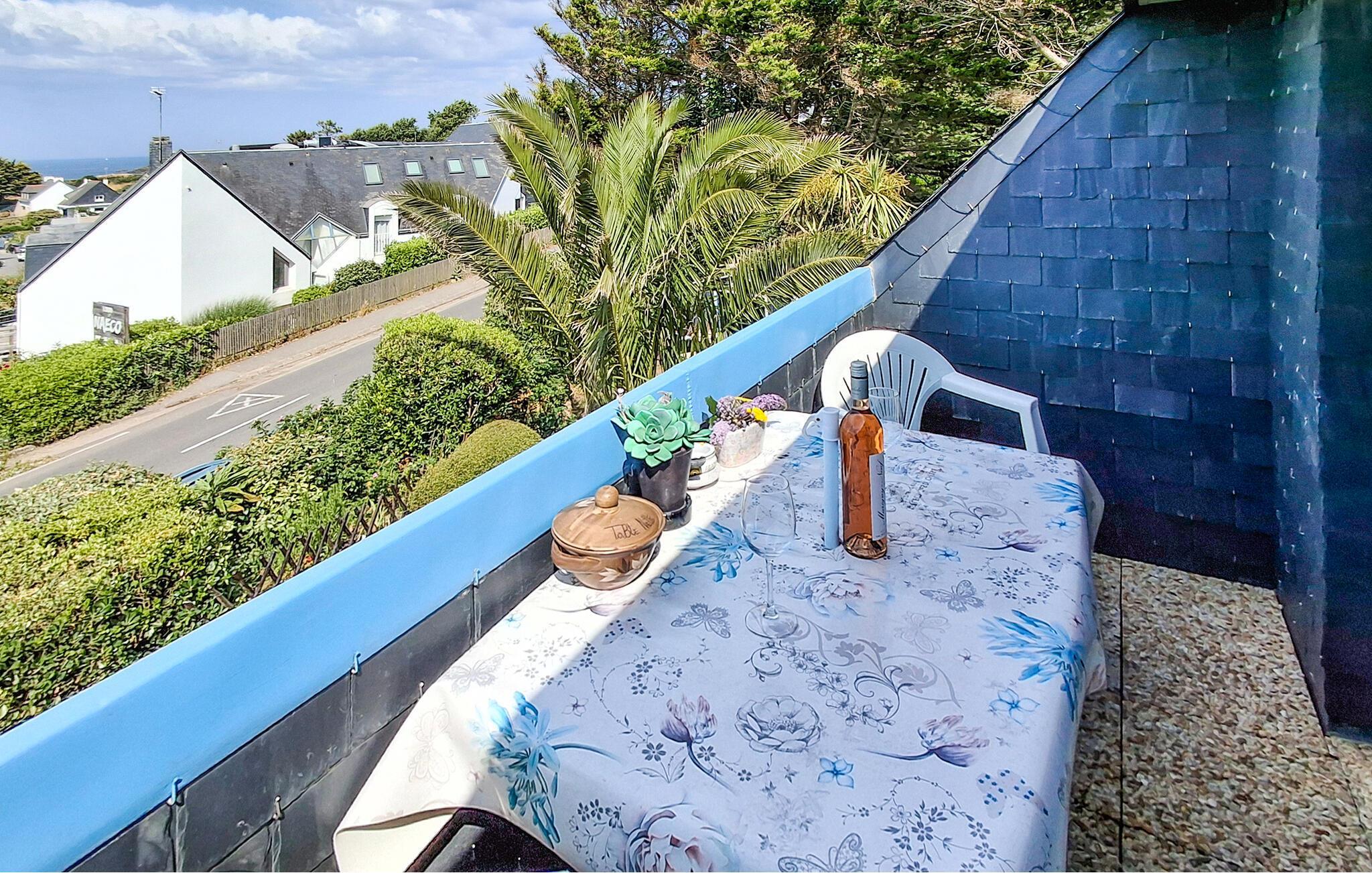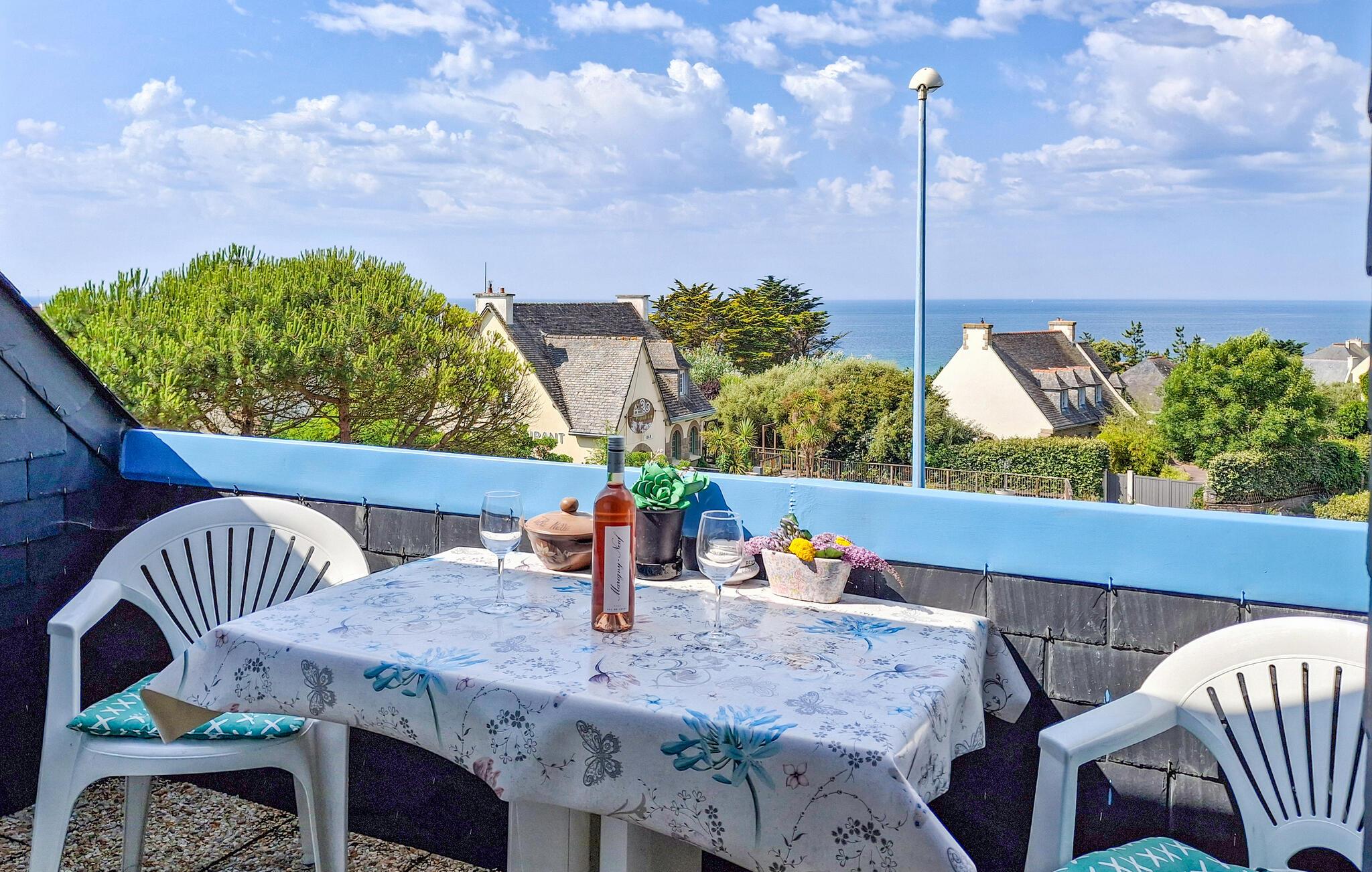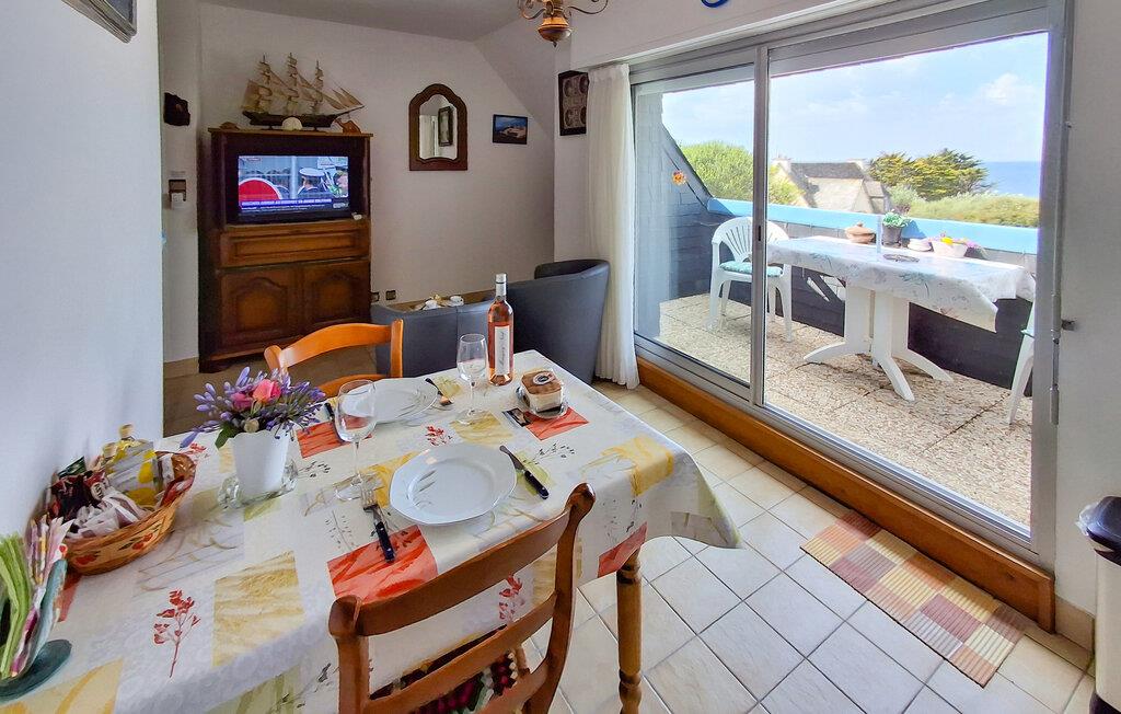 Lejligheden ligger på første sal, ved kanten af den lille by Le Puoldu, 20 km vest for den levende havneby Lorient ved sydkysten af Finistère. Le Pouldu er en levende familiebadeby. Sydkysten af departementet Finistère (eller ”Penn Ar Bed” på bretonsk) består af skiftende ru klipper og smukke sandstrande. Også baglandet, der er rig på seværdigheder som dysser og bautasten, kendt fra Asterix-tegneserierne, sørger for afveksling. Den komfortable lejlighed er komplet indrettet, byder på en smuk udsigt og ligger i en levende ferieby Le Puoldu, 100 m fra Kerou-stranden. I samme hus ligger også FBF557.