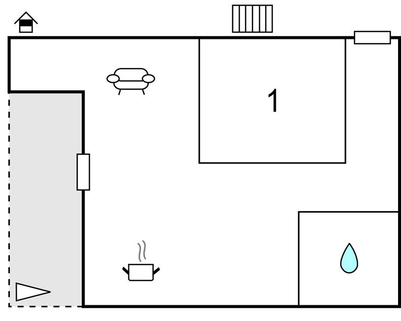 Soveværelse (nr. 1) - 2 Sovepladser. (Enkeltseng(e)).
