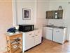 På 1. etage: (Køkken(elkedel, komfur(Komfur med to kogeplader, elektrisk), kaffemaskine, mikrobølgeovn, køleskab), Stue/soveværelse(dobbeltsovesofa(140 x 190 cm)), badeværelse(bruser, toilet)) vaskemaskine(deles med andre gæster), have(deles med andre gæster), grill(deles med andre gæster)