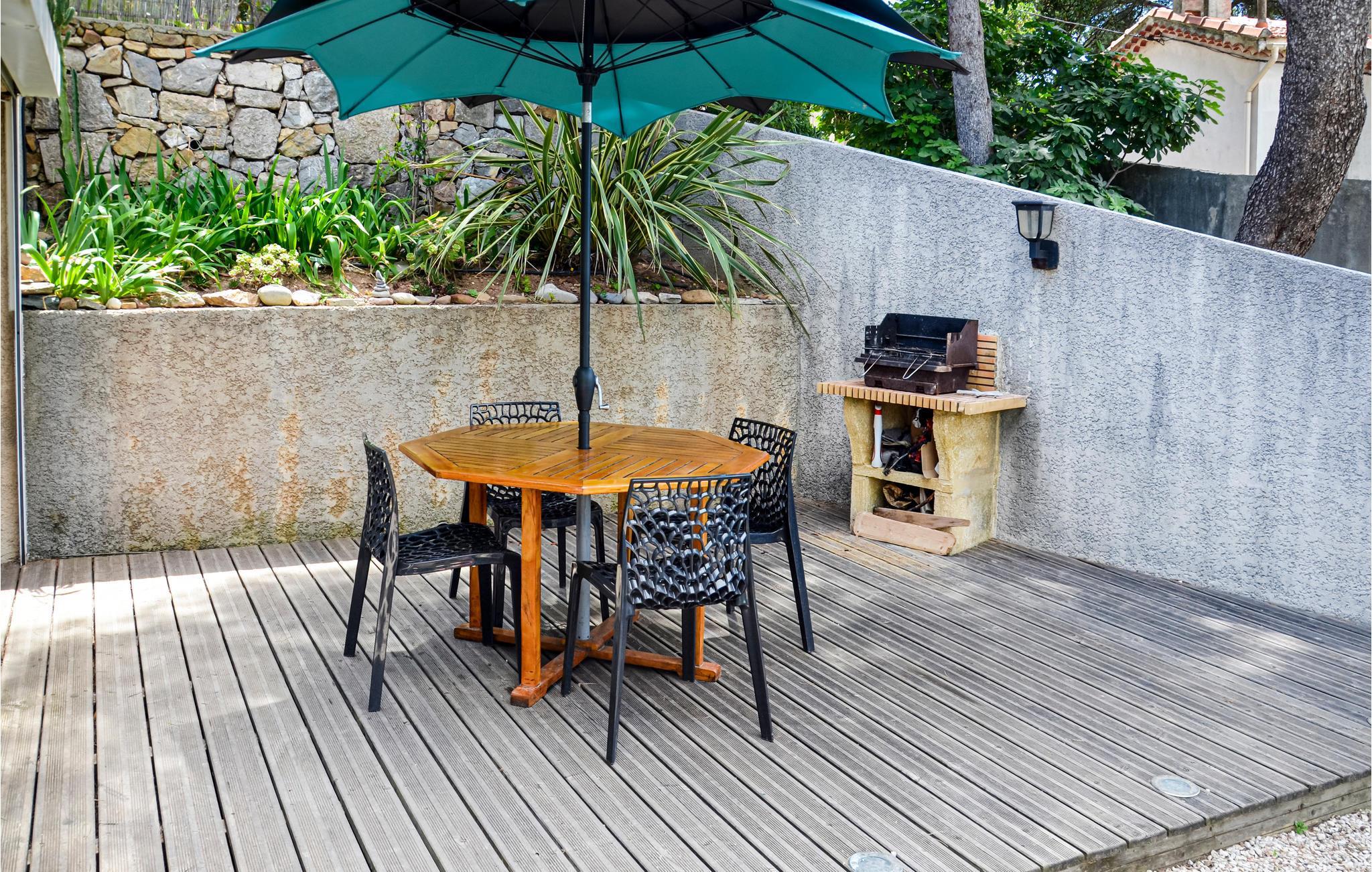 Et par minutters kørsel fra Toulon finder I dette smukke sommerhus med have og grill til lækre måltider udenfor, kun 30 m fra havet. Tilbring afslappende øjeblikke på den åbne terrasse i huset, og lad hverdagen være bag jer. Huset har 1 soveværelse, 1 badeværelse og en stue med tekøkken.