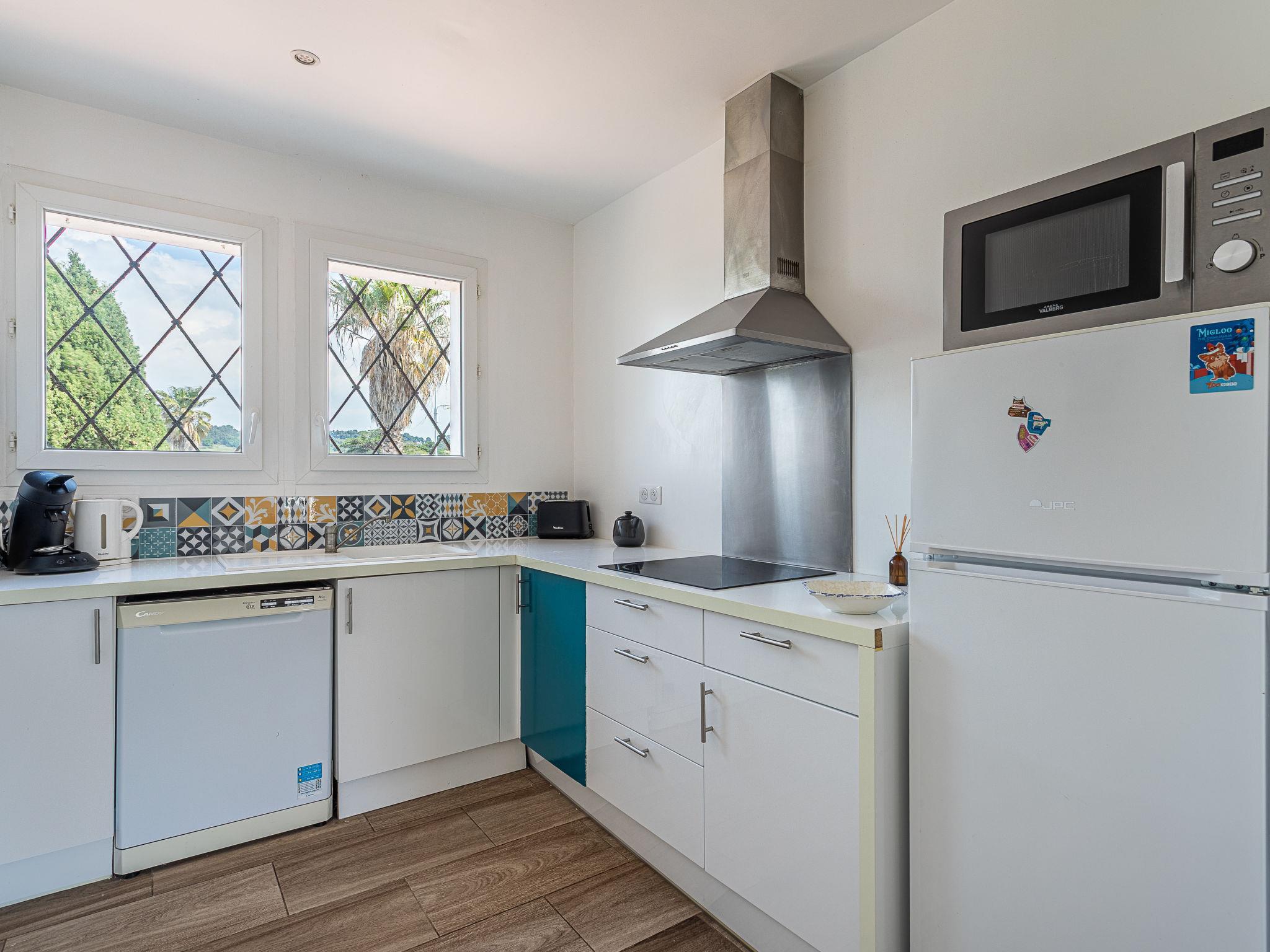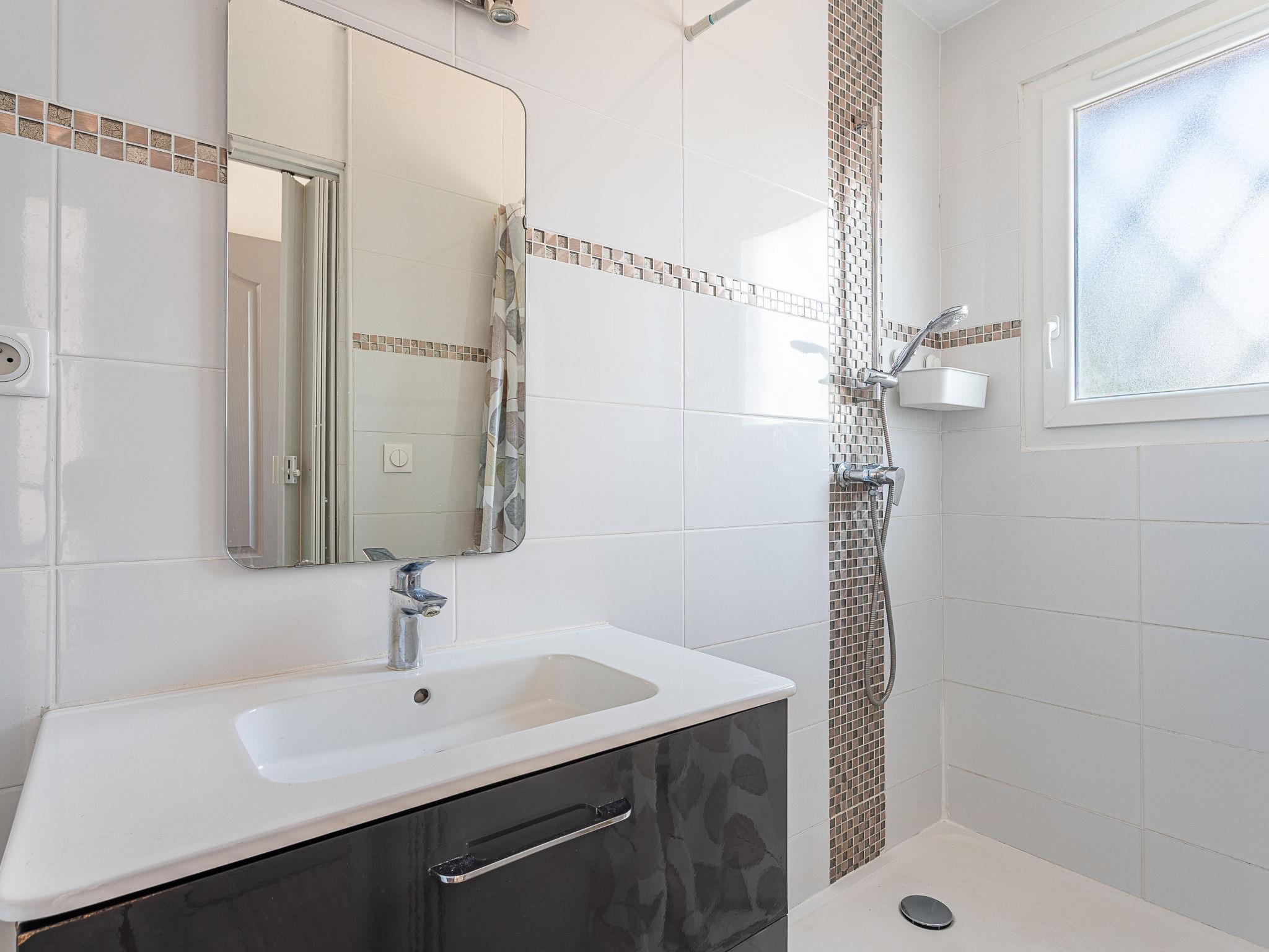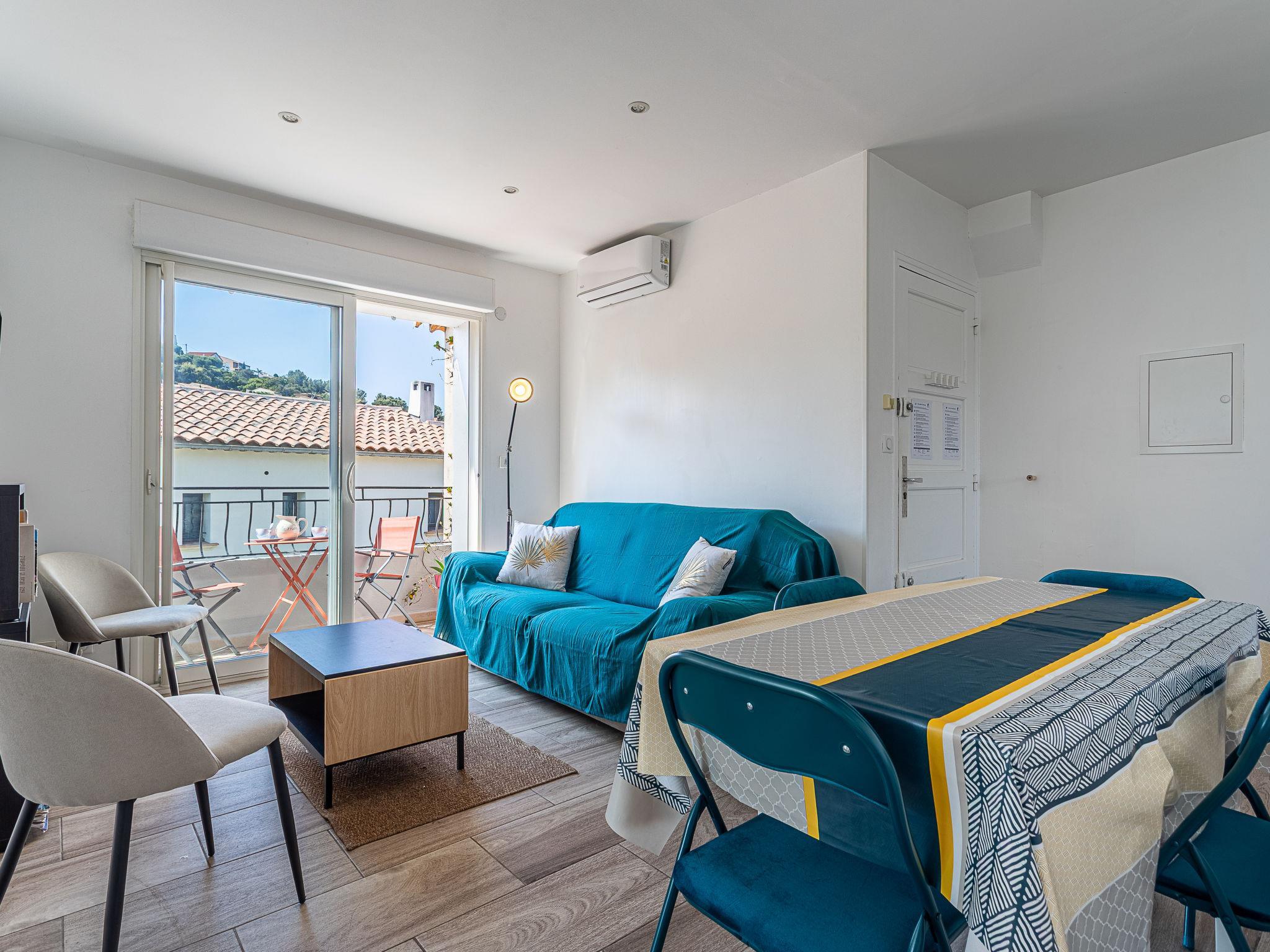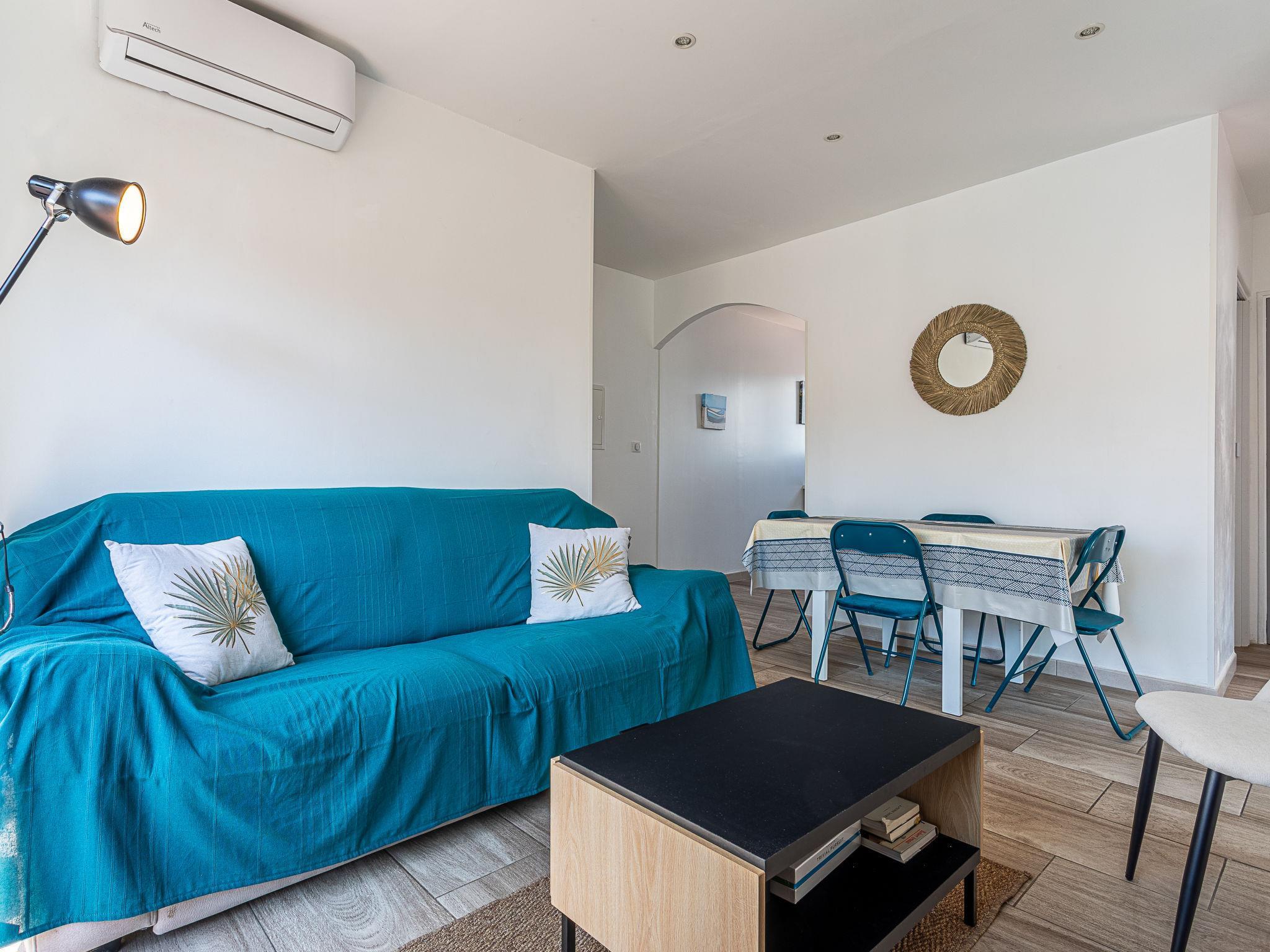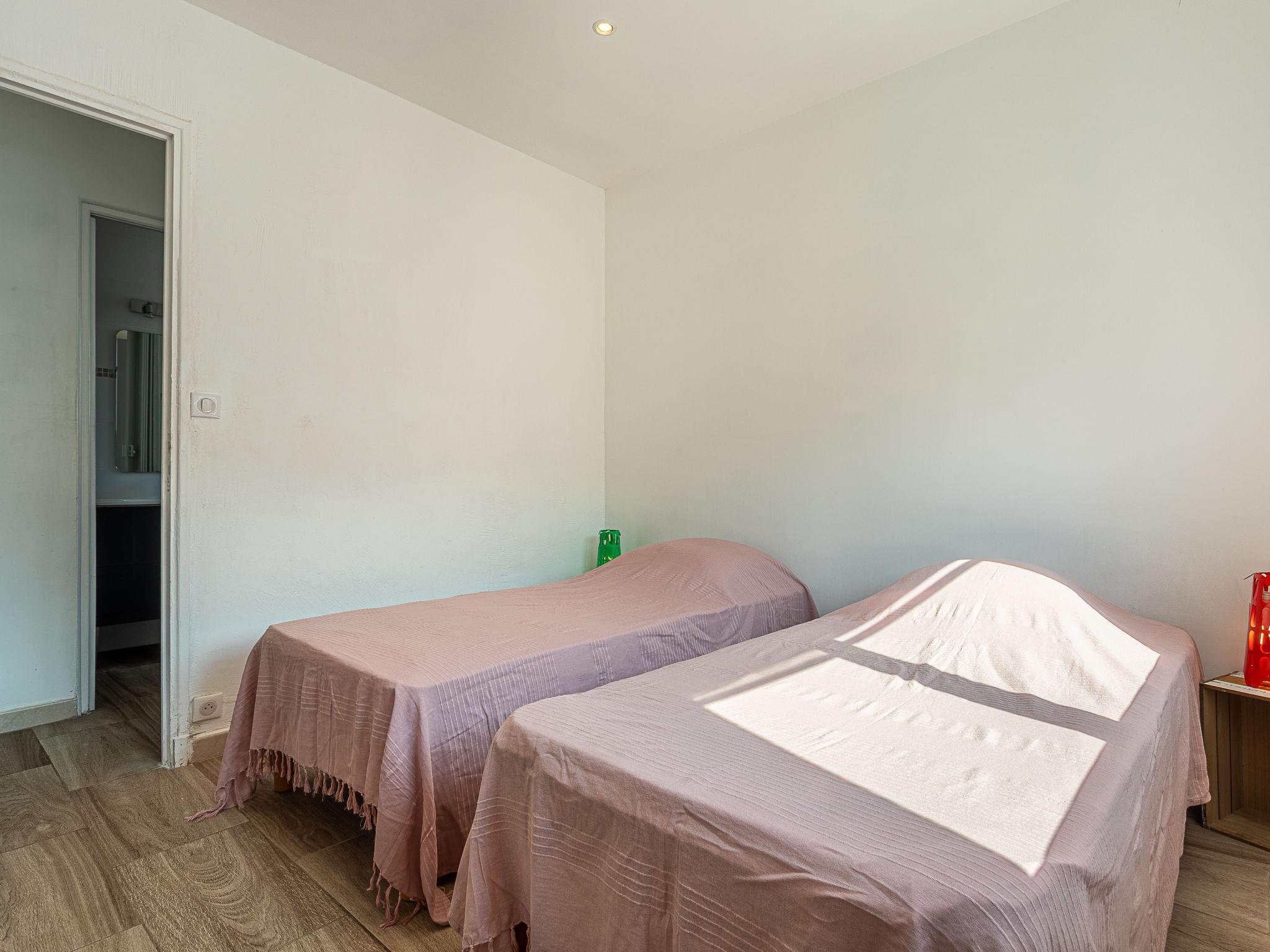 3-room apartment 60 m2 on 2nd floor. Beautiful furnishings: living room with TV (flat screen), air conditioning. Exit to the balcony. 1 room with 1 french bed (140 cm, length 190 cm). 1 room with 2 beds (90 cm, length 190 cm). Kitchen (dishwasher, 3 induction hot plates, toaster, kettle, freezer, electric coffee machine, combination microwave) with dining table. Shower, sep. WC. Electric heating. Balcony 6 m2. Balcony furniture. Partial view of the sea. Facilities: washing machine, hair dryer. Internet (WiFi, free). Please note: no parking. TV only FR. Smoke alarm. Offer by a private individual according to Art. 155, IV of CGI.