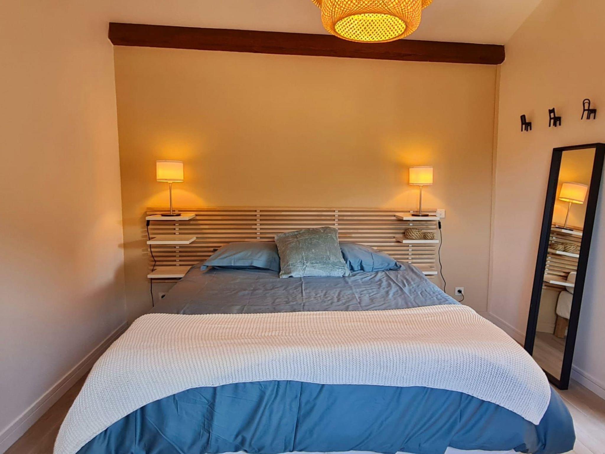 108m² gîte for 7 to 9 people. On 2 floors, the ground floor comprises a fully-equipped kitchen (hob, oven, microwave, fridge, coffee maker, toaster, dishwasher), a living room with sofa bed, bathroom with shower and WC. Upstairs, 2 bedrooms with double beds + connecting bedroom sleeping 3. Washing machine and iron available. 2 terraces. * Bedroom 1: 1 double bed 1.60 x 2.00m * Bedroom 2: 1 double bed 1.60 x 2.00m * Bedroom 3 (connecting): 1 single bed 0.90 x 2.00m + 1 bunk bed * Lounge: Sofa bed 1.40 x 2.00m for 2 people Fully equipped kitchen.