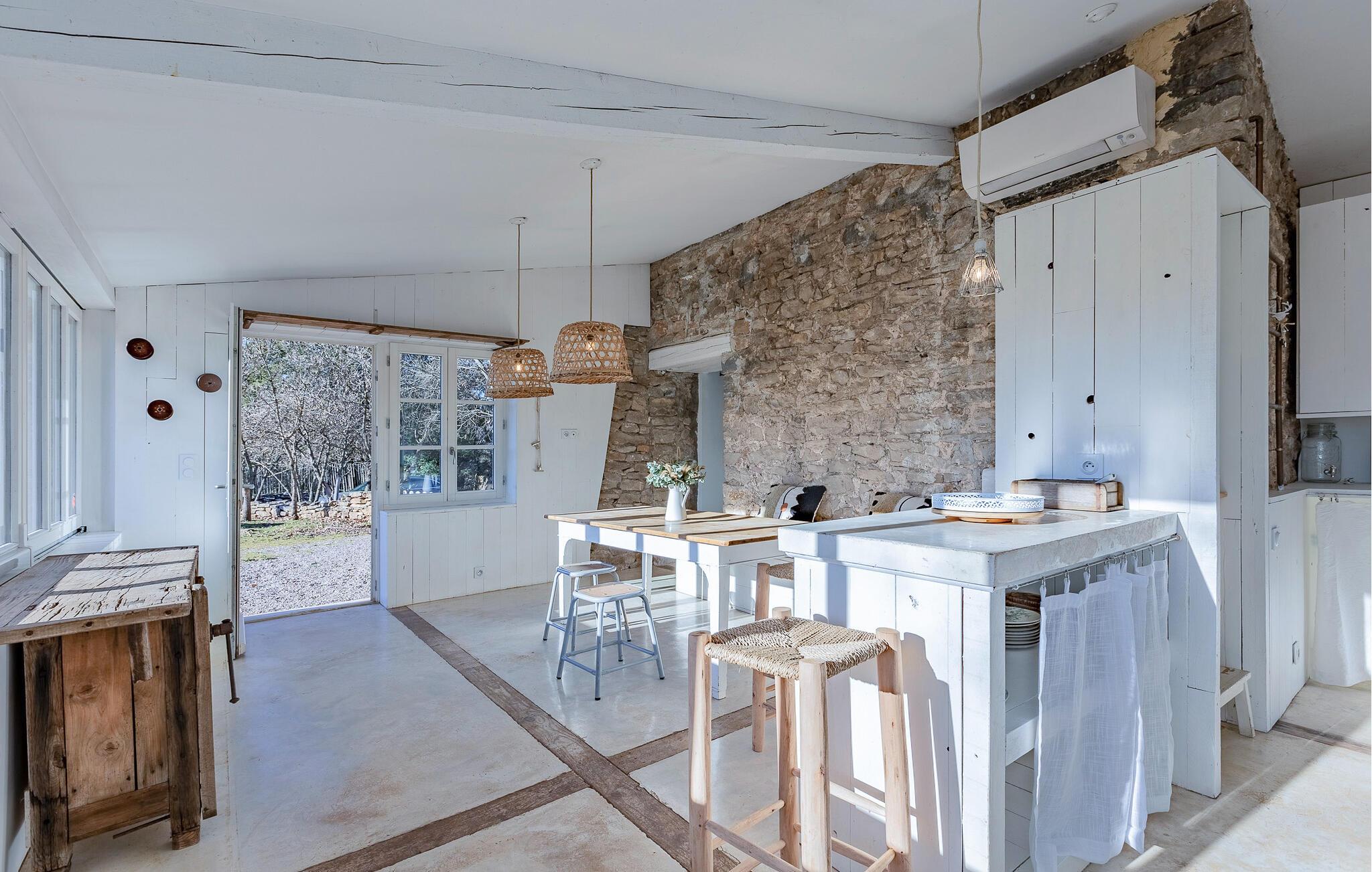 Dette enestående feriehus tæt på Middelhavskysten giver jer mulighed for at nyde en uforglemmelig ferie med en gruppe venner eller den store familie. Oplev den særlige atmosfære i de lyse og rummelige rum med traditionelle stenmure, og tilbered lækre måltider sammen i det rummelige, fuldt udstyrede køkken. Afhold hyggelige spilleaftener sammen i den behagelige stue, eller find en rolig krog til at læse en spændende bog.