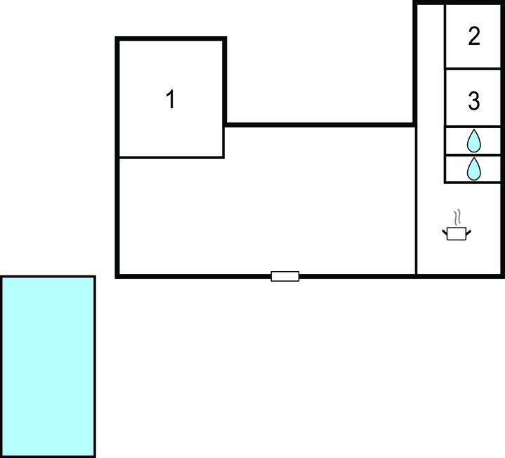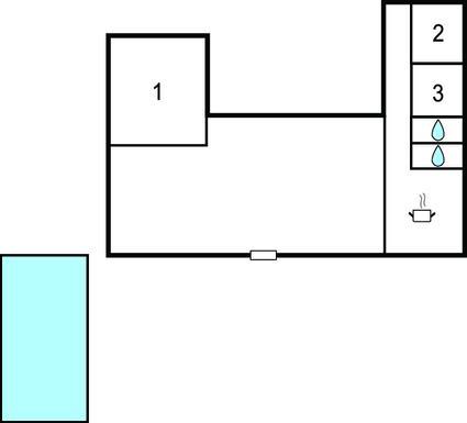 Opholdsstue 15m2 - 2 Sovepladser. (Dobbeltseng(e)).