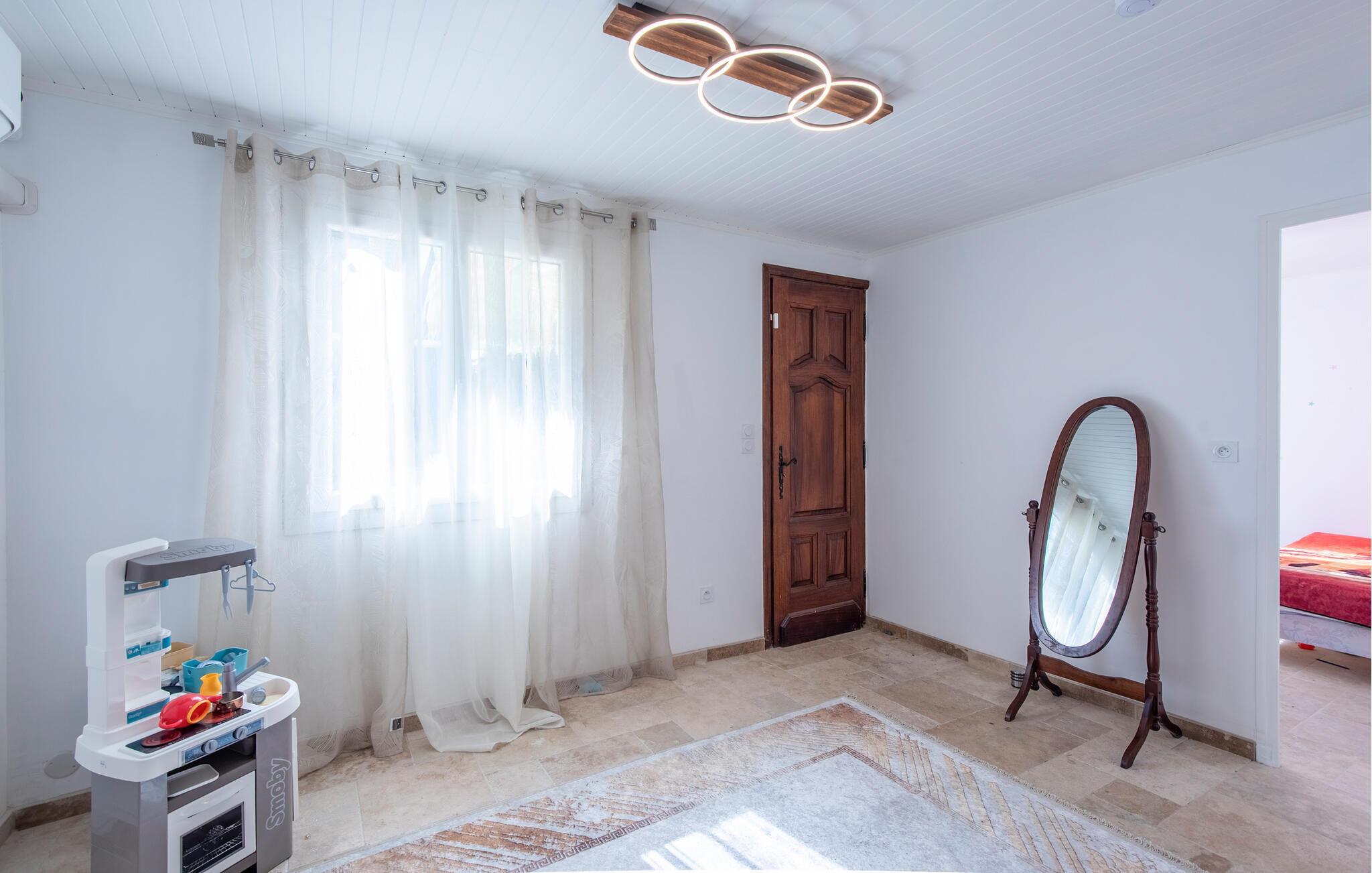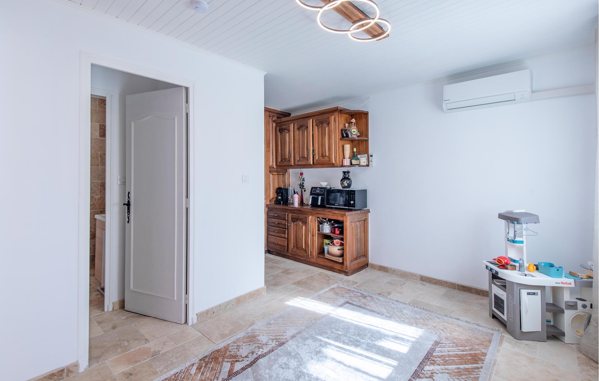 Oplev afslappende dage i Sydfrankrig i dette feriehus, som er ideelt til udflugter til Middelhavskysten. Ejendommen ligger i Le Rove, tæt på strandene i Carro, Marseille og Aix-en-Provence. Huset tilbyder komfortabel plads til hele familien. Slap af i den lyse stue eller tilbring tid sammen ved spisebordet. Tilbered dagens måltider i køkkenet, som er udstyret med masser af opbevaringsplads og alt hvad I behøver. Køkkenskabenes traditionelle trælook skaber et rustikt præg.