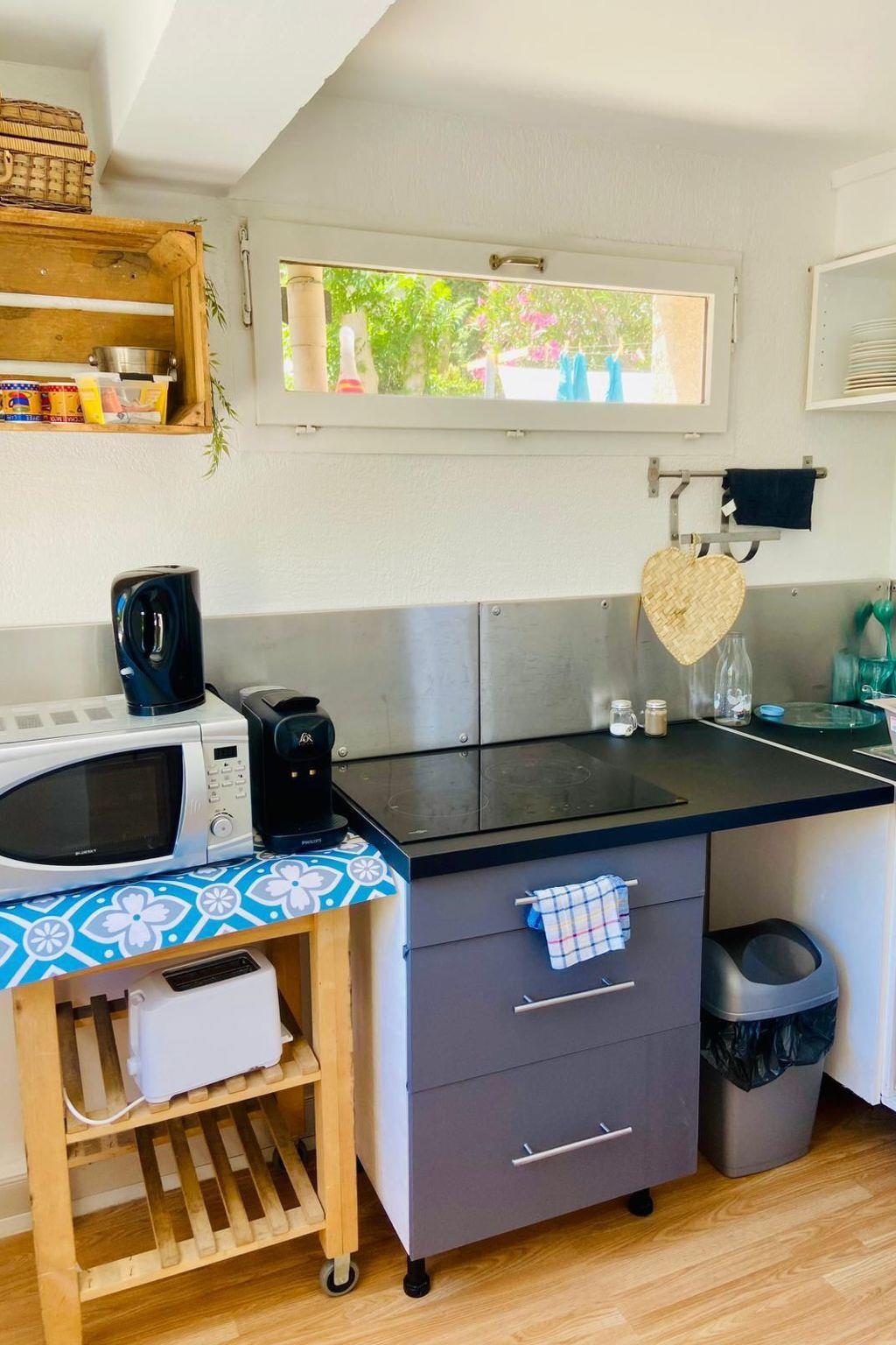 Our apartment "Fanny," located on the ground floor, has a private terrace. It includes one bedroom with a double bed, a living room with a sofa bed for two, a fully equipped kitchenette, and a bathroom with a toilet. The peacefulness of the cove, especially outside of the high season, makes it a true paradise for a relaxing break. You will also have access to the shared garden. The building houses a total of four units.