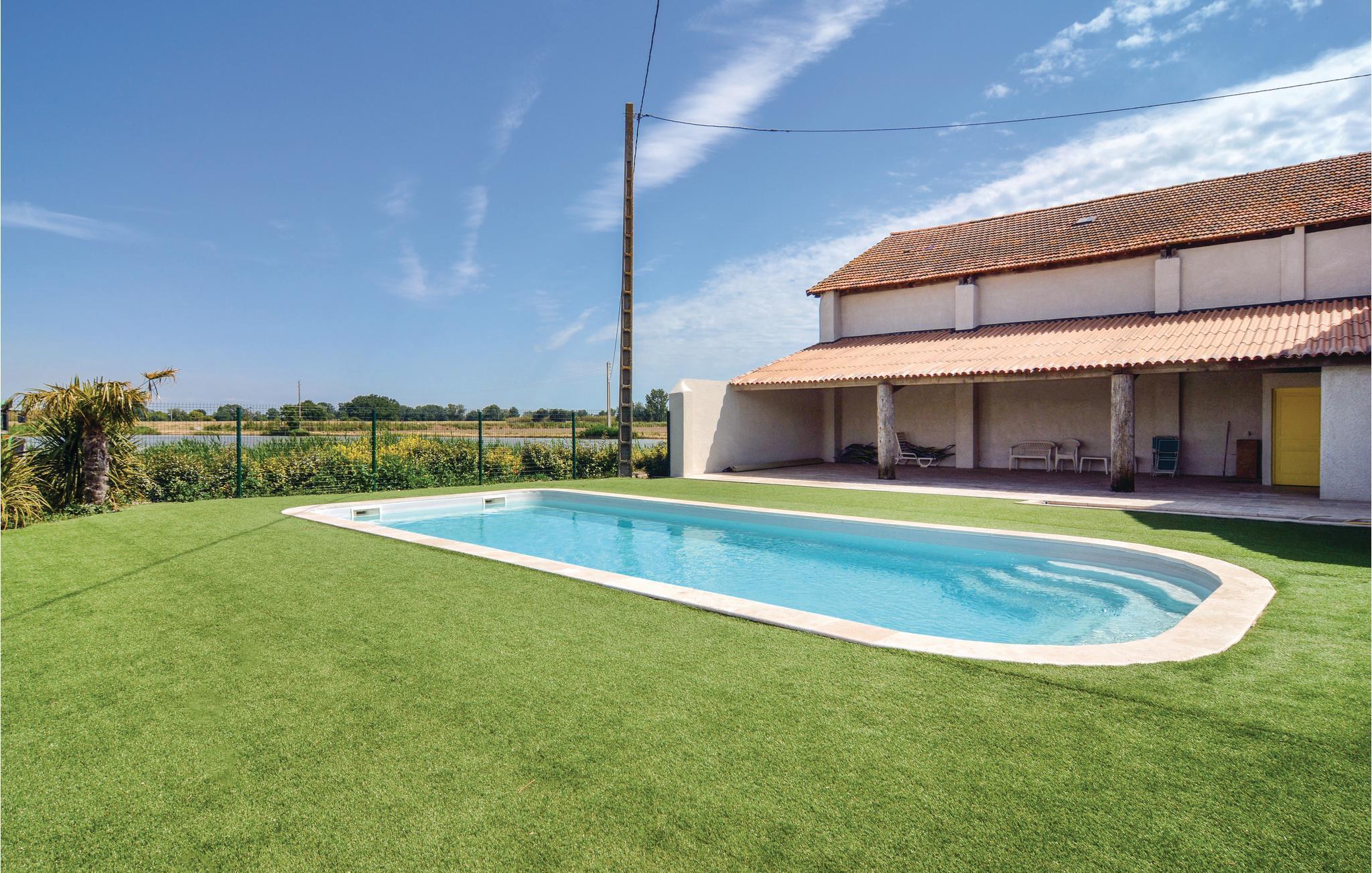 Dette feriehus ligger ikke langt fra Salinerne i Giraud, med det største anlæg i Carmargue og med en skøn udsigt over den omliggende natur. På den fælles store grund er der flere feriehus og en pragtfuld fælles pool. Her er der god plads til at slappe af. En rigtig dejlig plet er den overdækkede terrasse med solsenge ved siden af poolen. I kan også kaste jer ud i en kamp i bordtennis, spil boule som franskmænd og der er også legeplads til jeres små. Her er der ingen der kommer til at kede sig. På grunden bor en hest, på forespørgsel kan I tage jeres egen hest med. Der er et fælles toilet ved poolen. I Le Sambuc er der en lille dagligvarebutik, en restaurant og en bar. Der er 25 km til sandstranden Piémanson og det er oplagt at besøge Arles. Her er der mange restauranter og hver lørdag morgen et typisk provencalsk marked hvor bønderne sælger deres produkter. I Aigues-Mortes er der en skøn havn, en velbevaret bymur og mange smukke bygninger. I badebyer som Saintes-Maries-de-la-Mer og Le Grau-du-Roi kan I tilbringe dejlige badedage. Lidt længere kommer I gennem Nîmes med en gammel romersk arena og den skønne Place de la Comédie i Montpellier indbydere til en pause med et godt glas vin. Lidt tilbagetrukket i landskabet ligger den typise by Salon-de-Provence med Nostradamus fødehjem, og der er kun en km til Rhone hvor det er oplagt at fiske. Lej flere huse hvis I er mange der rejser: se FPB291, FPB292, FPB293 og FPB294. Der et fælles toilet ved poolen.