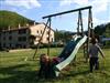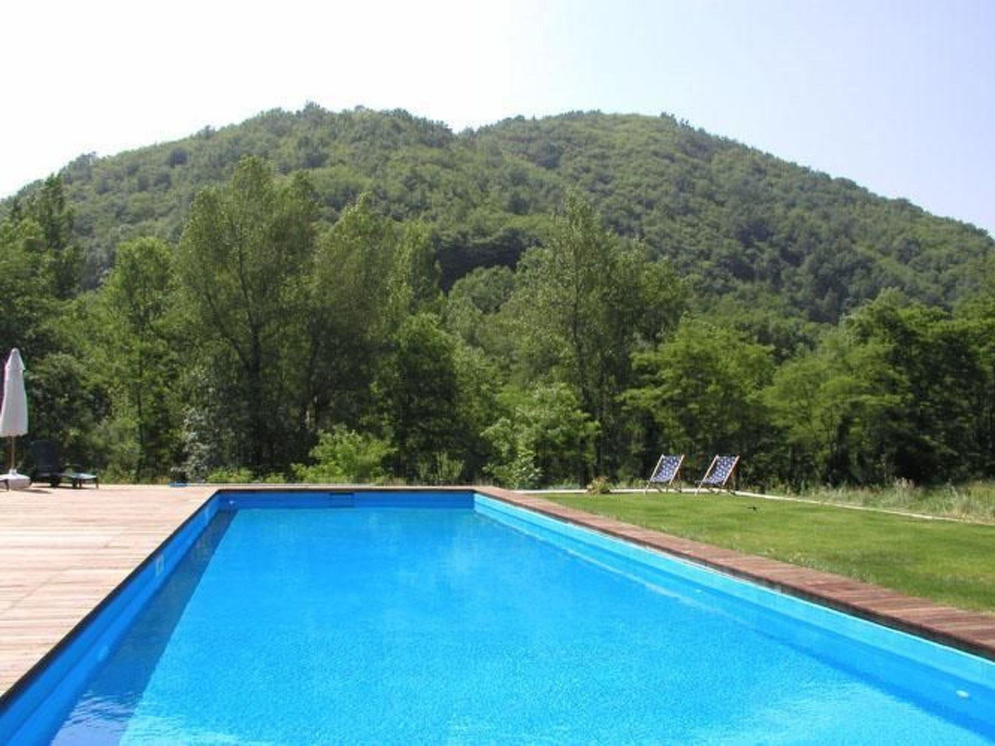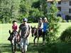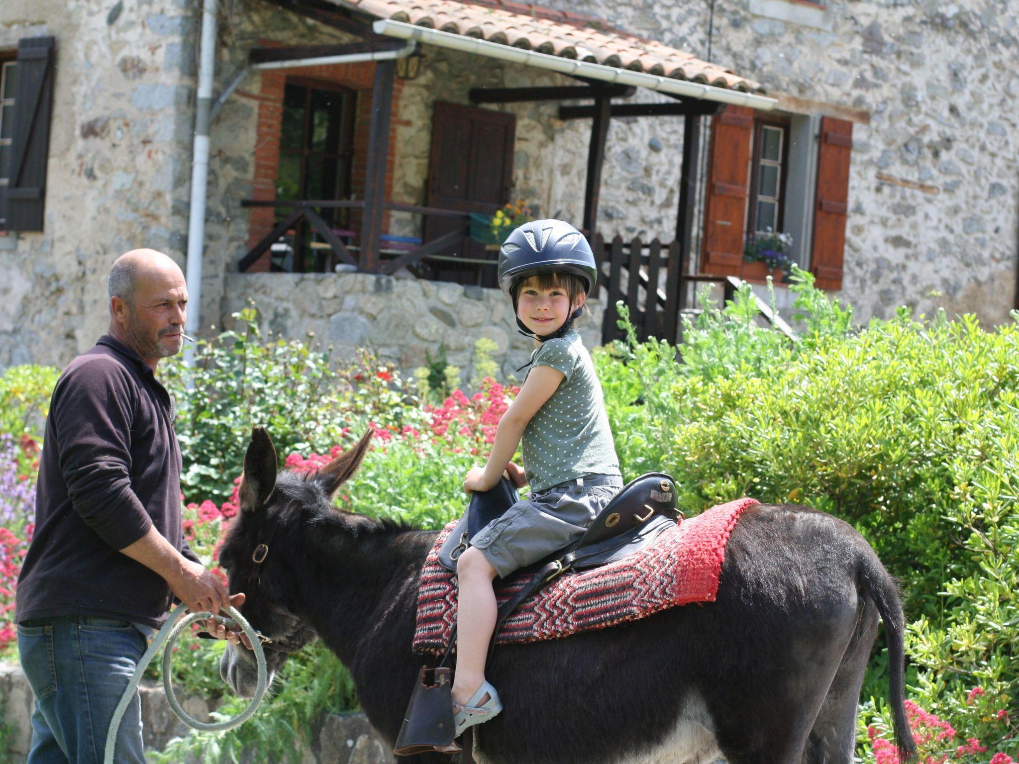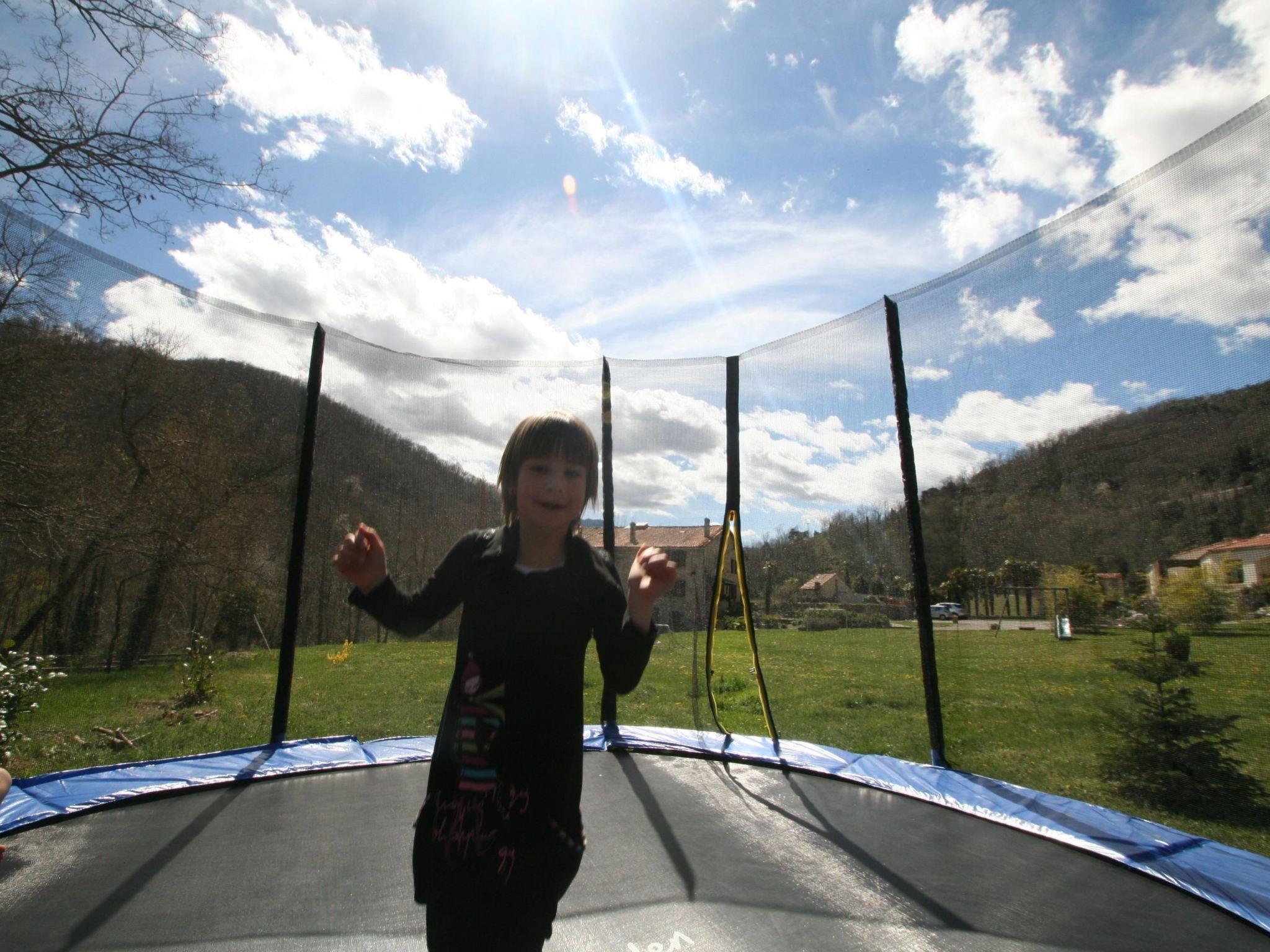 Access is via a covered porch with table and chairs, and another table in front of the gîte is on the lawn. The entrance is via the dining room and pleasant open-plan kitchen with its counter and high chairs. This north-east-facing flat comprises a spacious living/dining room with rocking chairs and TV. The open-plan kitchen is equipped with dishwasher, cooker with oven, microwave and other appliances for everyday use. Pleasant wood-burning stove. The flat has two bedrooms, one with a large 1.60 m double bed and the other with two single beds. The bathroom has a bath, bidet and separate WC. This flat also has the best view of the Mas.
