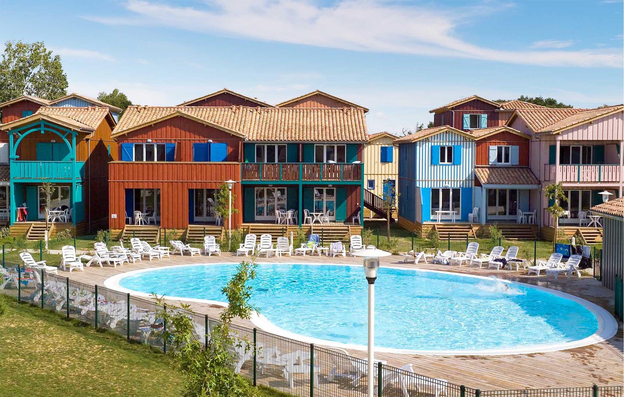Lejlighedernes arkitektur er inspireret af pælehusene, som er så typiske for Arcachon-bugten. Alle lejligheder har en skøn terrasse eller veranda med havemøbler, der lægger op til mange timers hyggeligt samvær udendørs. Komplekset har en udendørs swimmingpool, der er opvarmet i højsæsonen (hvis vejret tillader det), og gratis Wi-Fi i receptionen. Vi anbefaler jer at beøge naturparken Landes de Gascogne eller Coccinelle Animal Park. I kan også tage en afstikker til vandlandet i Gujan Mestras.