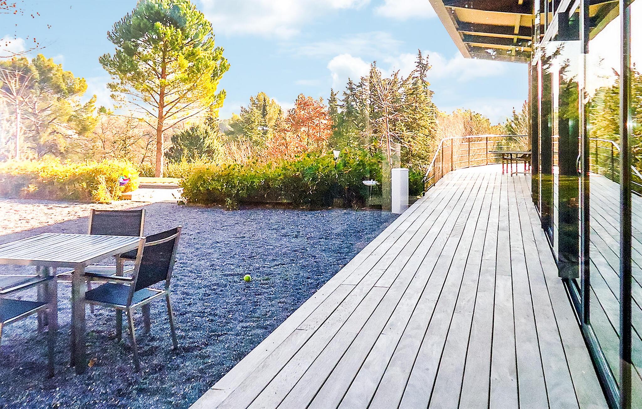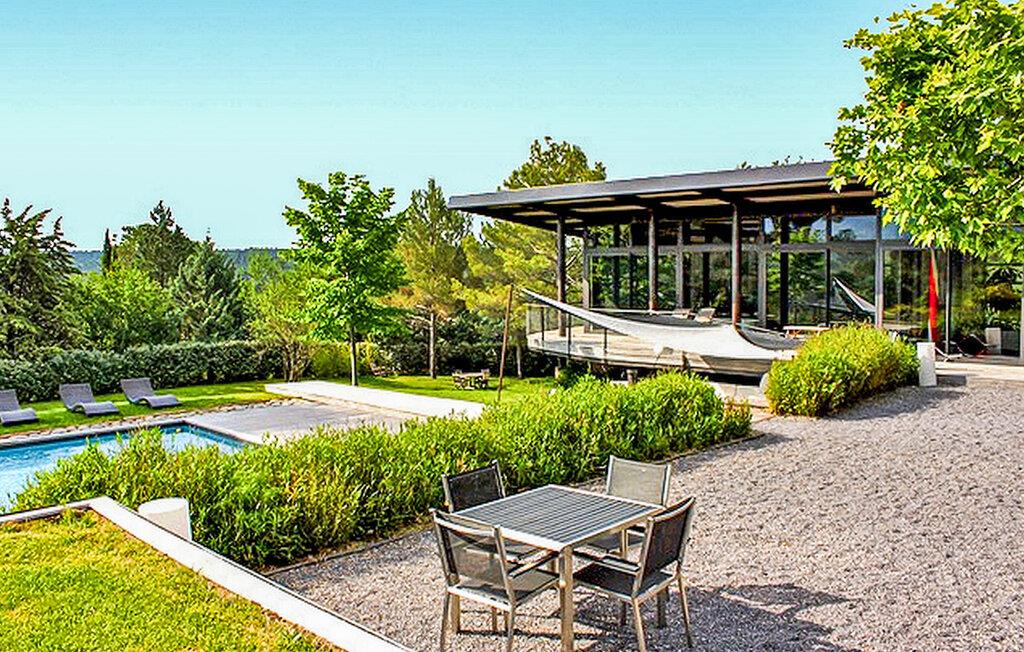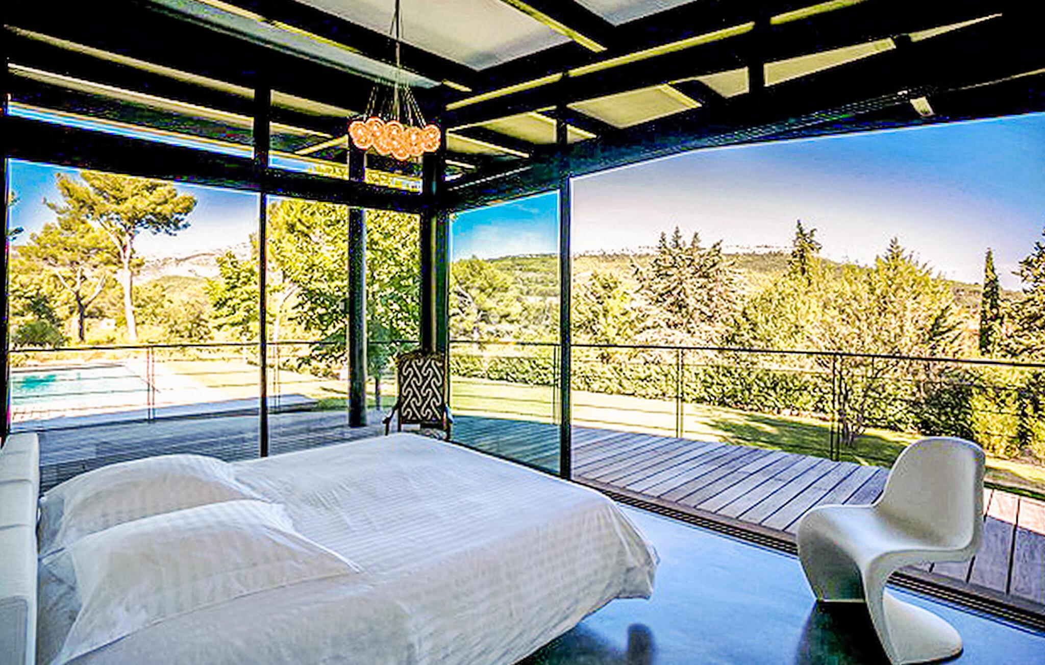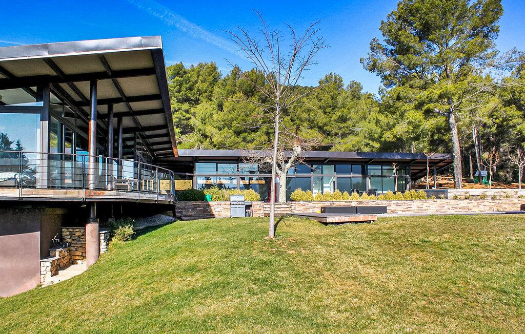 Beliggende i Le Tholonet, tæt på Aix en Provence, har denne moderne ferievilla en opvarmet privat pool med en fantastisk udsigt over Sainte Victoire-bjerget. Designervillaen, der ligger helt i stueplan, har en åben planløsning og ekspansive karnapper, der problemfrit fusionerer indendørs og udendørs rum, mens den fremviser betagende naturudsigter. Nyd moderne bekvemmeligheder under dit ophold, herunder en Nespresso-kaffemaskine i køkkenet og en Canal+-projektor i stuen, til familiefilmaftener. Soveværelserne er fordelt på to soveområder, med et område specielt designet til børn med et legerum og tv-stue til indendørs underholdning. Udenfor omfatter den vidtstrakte grund udendørs spisepladser, et udendørs badeværelse, en sikret og opvarmet pool med sikkerhedsafdækning samt rekreative områder som petanquebane og en dejlig legeplads. Villaen er beliggende i Le Tholonet omkring 10 minutter fra Aix en provence og 25 minutter fra havet og Calanques i Cassis. Le Tholonet er en ideel base for at opdage Provence, Cassis og calanques, Marseille, Aubagne, og tilbyder også forskellige vandre- og vandrestier i området omkring Sainte Victoire-bjerget. Nyd din ferie i Bouches-du-Rhône i Provence. Bemærk venligst: Om sommeren holder et afkølet gulvsystem en behagelig indendørstemperatur, selvom der ikke er aircondition. Derudover dækker rullegardiner de store karnapper, men de tilbyder måske ikke fuldstændig mørke, især i soveværelserne. Der er rengøring to gange om ugen og ugentlig vedligeholdelse af haven og poolen.