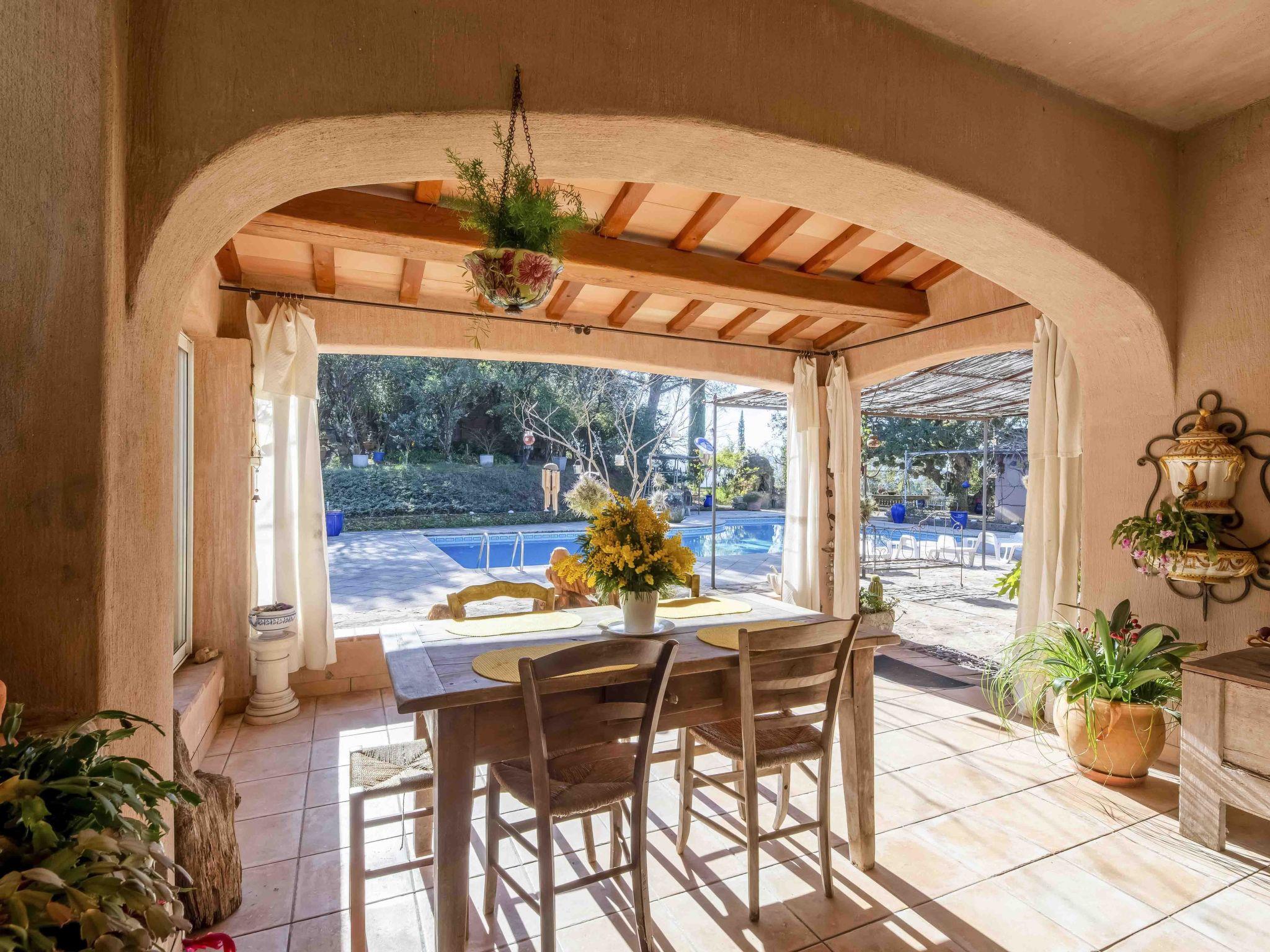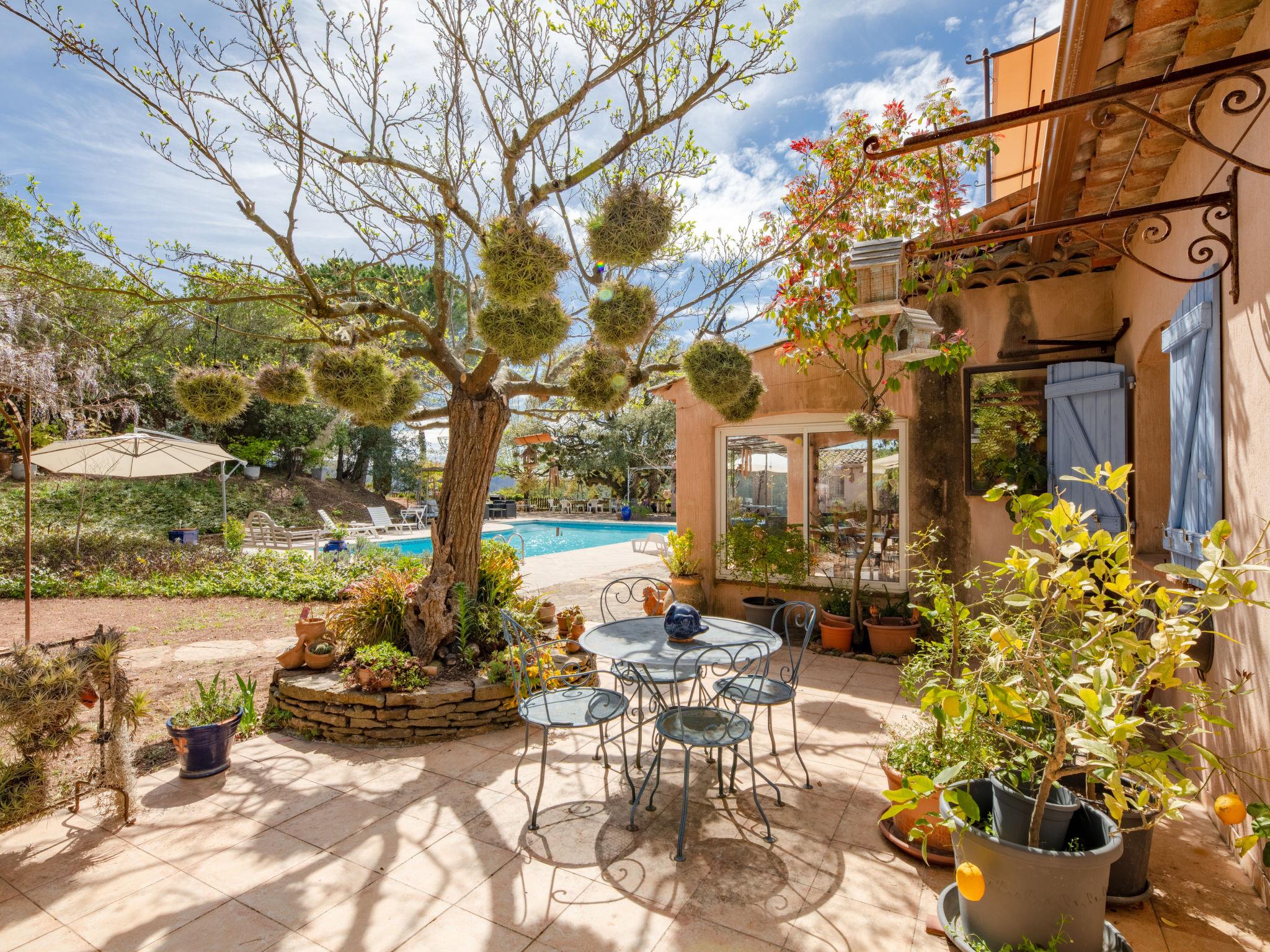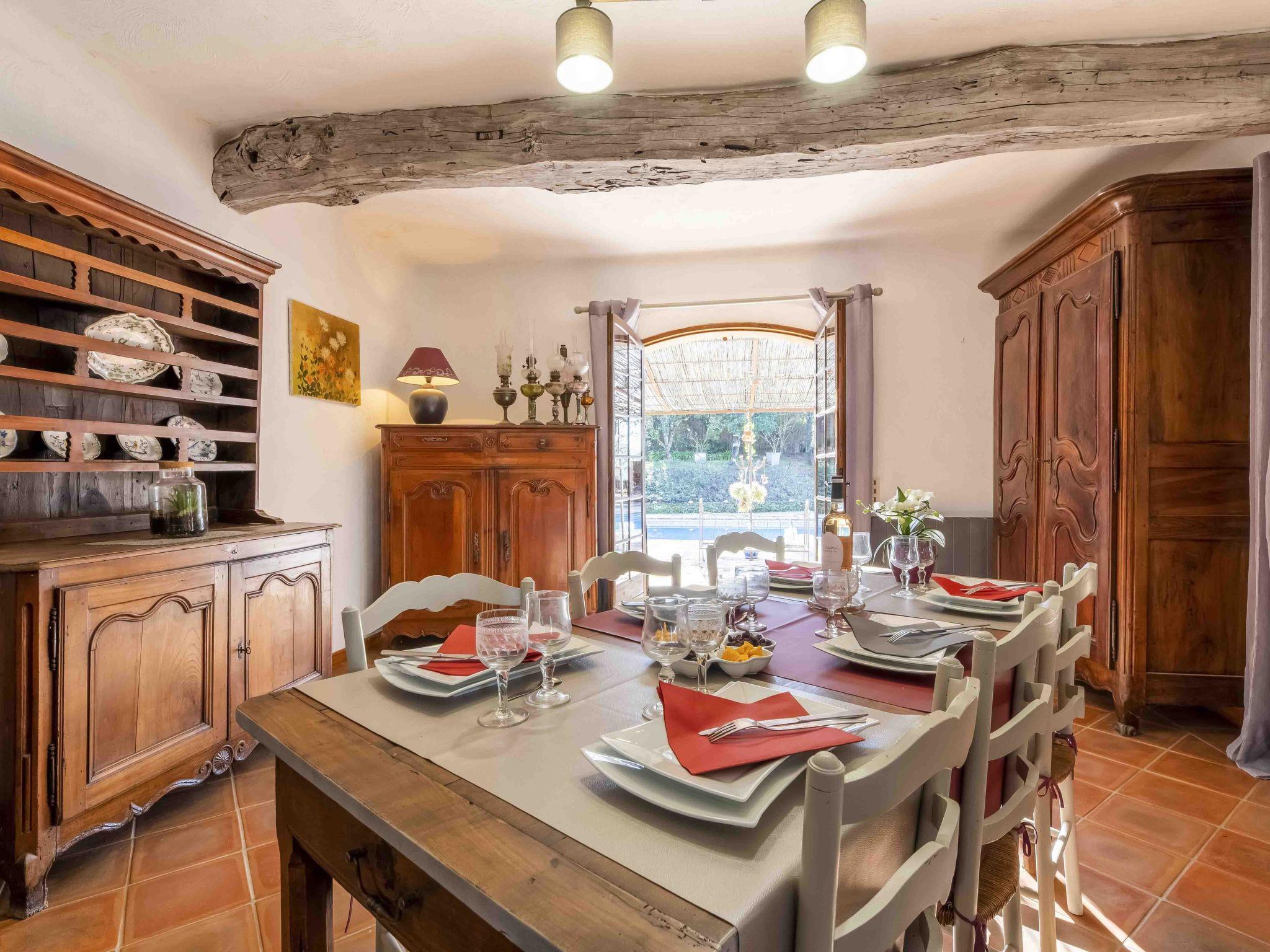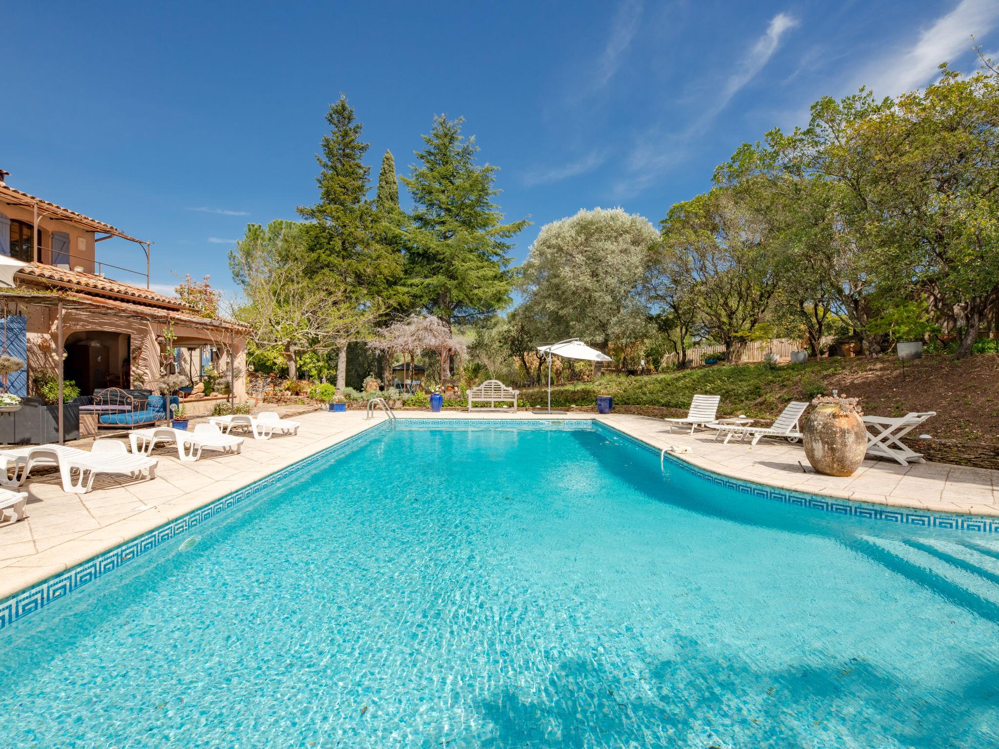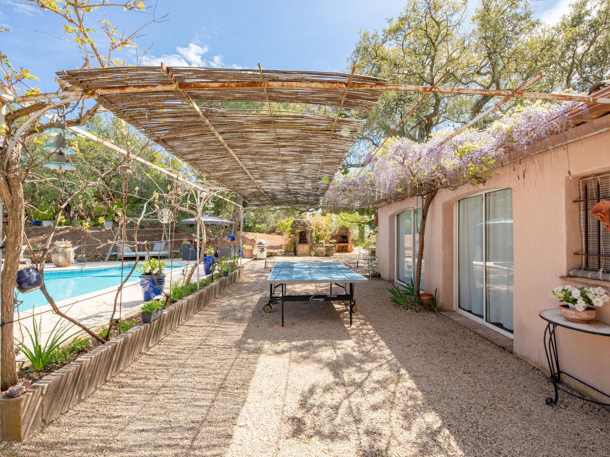 Large single-family house "La Renardière", 2 storeys. Property composed of main house and outbuilding, in a hamlet with 3 houses, on top of a hill, 10 km from the lake, 25 km from the beach. Private: well-kept garden 2'000 m2 (not fenced), swimming pool (12 x 6 m, depth 150 - 240 cm, seasonal availability: 01.May. - 30.Oct.) with alarm system. Table tennis, boules, parking (for 3 cars). Shop 2.5 km, bus stop 2 km, sandy beach "Cannes" 25 km. Golf course (18 hole) 10 km, walking paths from the house 10 m. Well-known lakes can easily be reached: Saint Cassien 10 km. Please note: car recommended. The owner does not accept any groups. The owner lives on the same property.