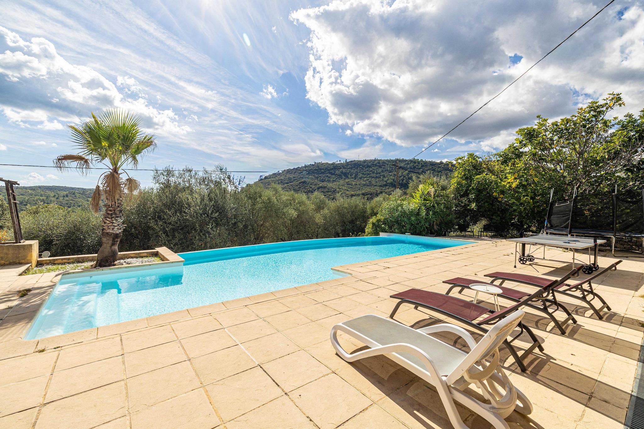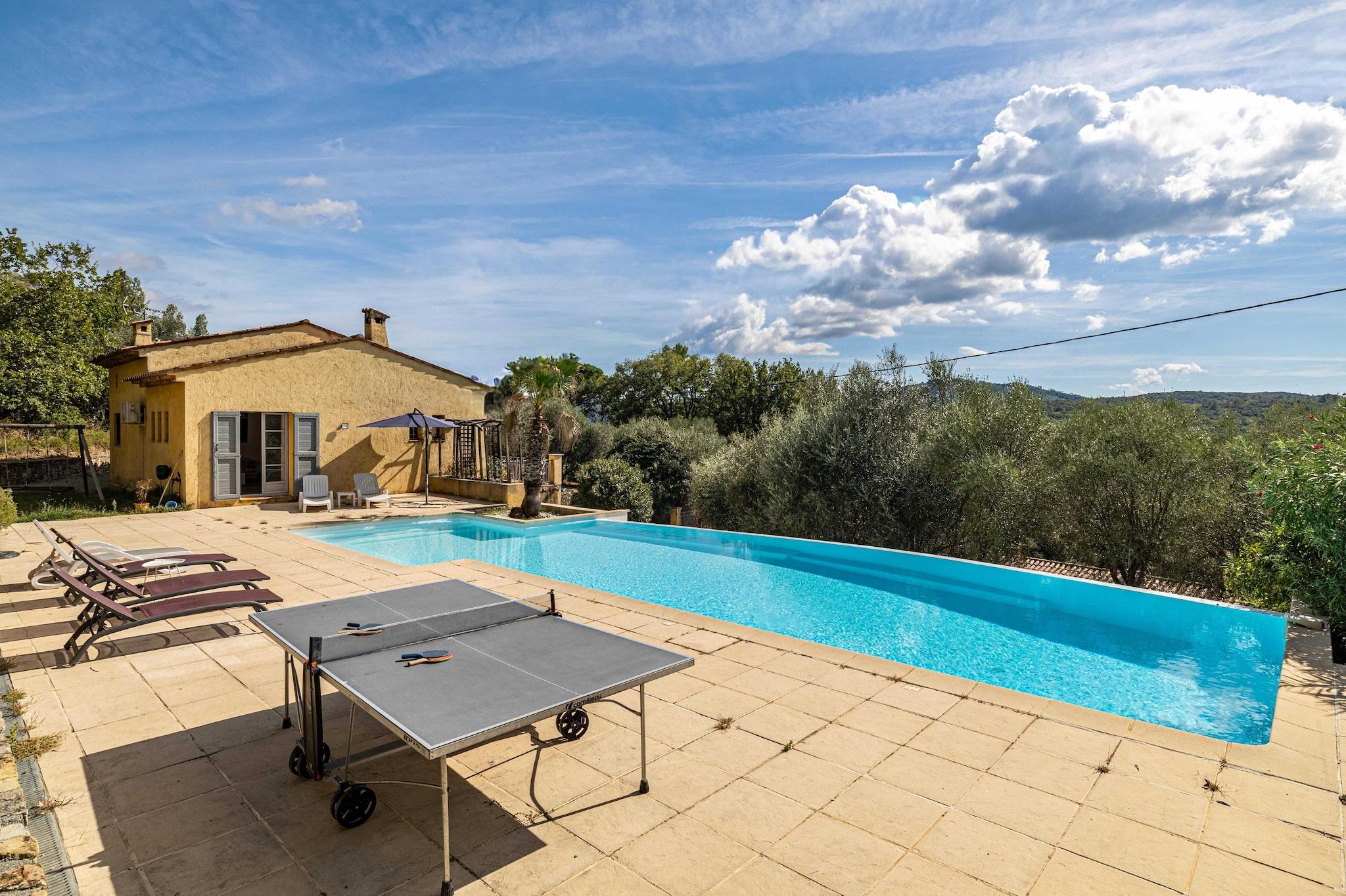 Hus med aircondition, 4 soveværelser/10 personer, pool – 40 min fra Cannes
