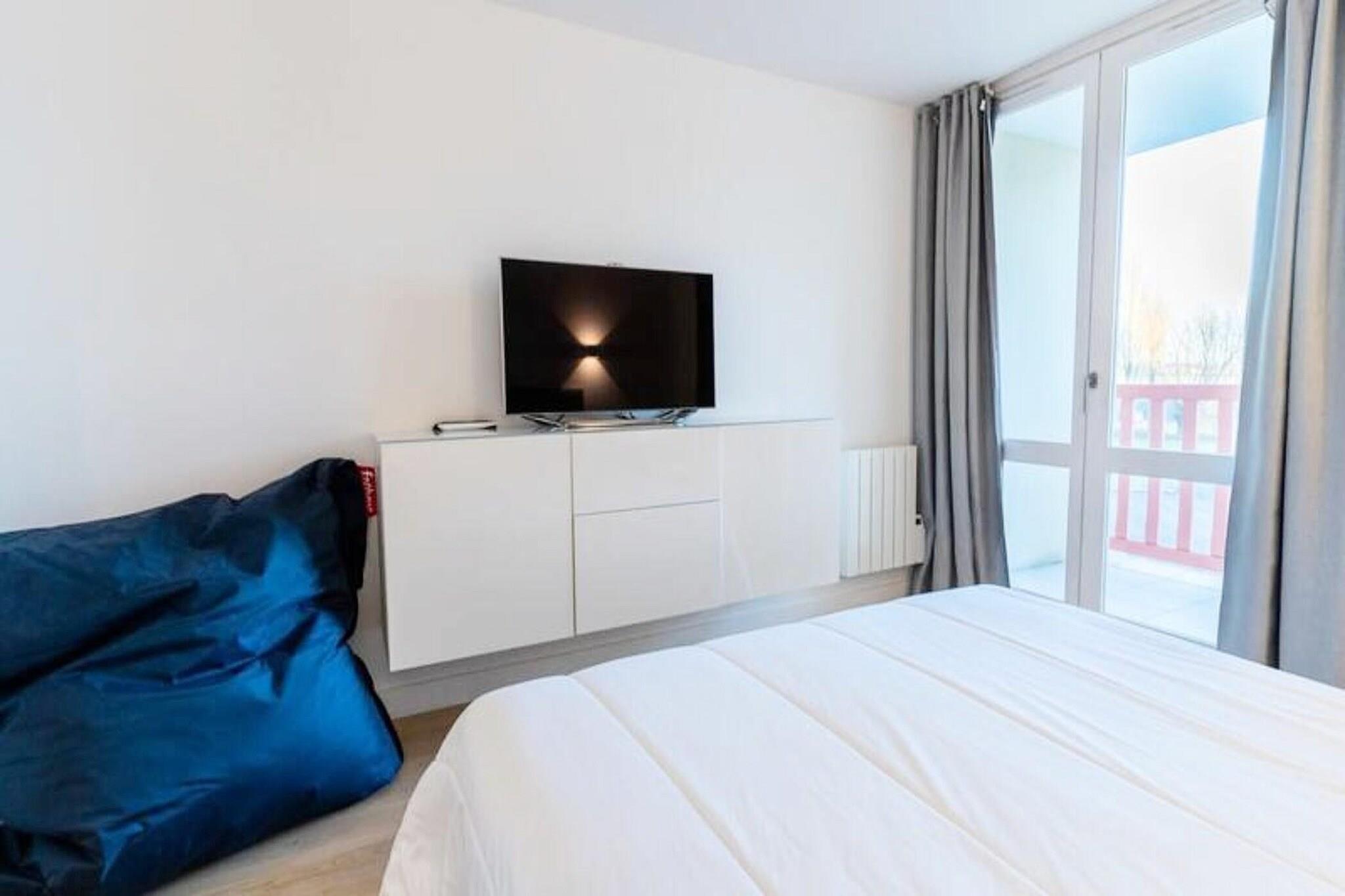 Denne charmerende lejlighed har plads til 4 personer og er beliggende i hjertet af en smukt anlagt park t?t p? v?ddel?bsbanen og rideparken. Det har en stue med en 140 cm sovesofa, et sovev?relse med en komfortabel 160 cm dobbeltseng og et tv til din underholdning. Lejligheden er k?ledyrsvenlig mod et till?gsgebyr og inkluderer separate toiletter for nemheds skyld. Der kr?ves et depositum ved ankomst. Lejlighedens f?rsteklasses beliggenhed giver nem adgang til n?rliggende attraktioner, herunder den natursk?nne v?ddel?bsbane og ridepark. Du kan nyde de fredelige omgivelser eller udforske de lokale caf?er og markeder inden for kort afstand, ideel til afslapning eller shopping. Parkens omgivelser giver en rolig atmosf?re perfekt til udend?rs aktiviteter og vandreture i naturen. Den fuldt renoverede lejlighed har et veludstyret ?bent k?kken med opvaskemaskine, vaskemaskine og Nespresso-maskine til din bekvemmelighed. Badev?relset er moderne og komfortabelt, og altanen byder p? en dejlig udend?rs plads til at slappe af. Bem?rk venligst, at senget?j og h?ndkl?der ikke medf?lger, men kan lejes efter anmodning.