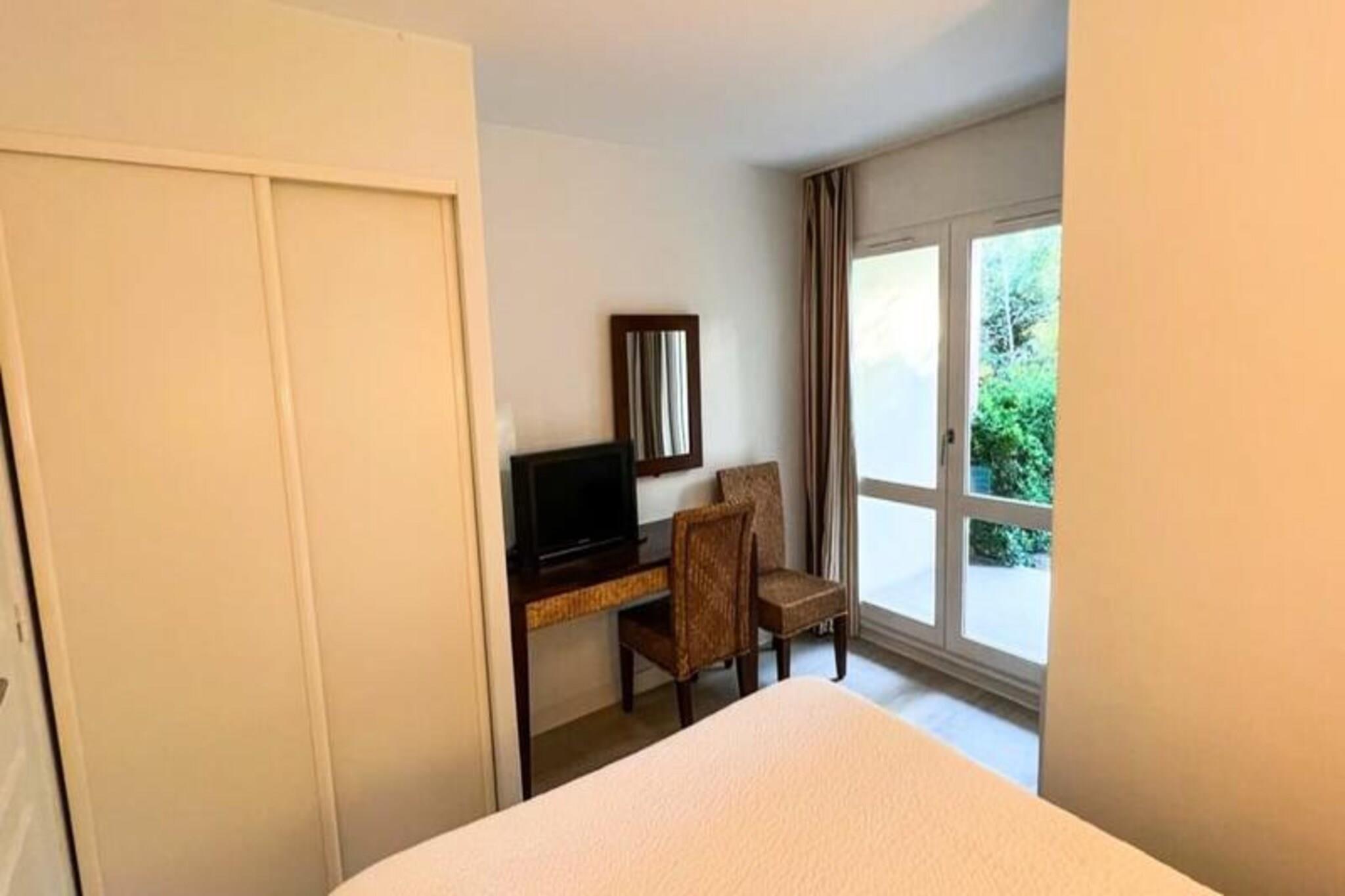Denne hyggelige lejlighed i stueetagen er perfekt til op til seks gæster og tilbyder et komfortabelt opholdsrum i en veludstyret turistbolig. I stuen er der to enkeltsenge, mens hovedsoveværelset har en dobbeltseng (140x190), og en kahyt byder på køjesenge (2x90). Ejendommen har også en terrasse med havestole, som er ideel til at slappe af udendørs. Bemærk venligst, at sengetøj ikke medfølger, og kæledyr er ikke tilladt, hvilket sikrer et rent og roligt miljø for alle gæster. Boligen tilbyder en indendørs swimmingpool, tennisbaner og gratis parkering, hvilket giver rigelige fritidsmuligheder under dit ophold. Beliggende kun en kort afstand fra Touquet-hesteparken og Hippodromen, er denne ejendom ideelt placeret for at udforske de lokale attraktioner. Den nærliggende Canche Bay byder på naturskøn skønhed, mens shuttles, der kører tæt på boligen, giver praktiske transportmuligheder (tilgængeligheden kan variere). Til spisning og underholdning er lokale caféer og markeder inden for rækkevidde, så du kan fordybe dig i regionens charme. Lejligheden har et åbent køkken udstyret med opvaskemaskine og kaffemaskine, hvilket gør tilberedning af måltider til en leg. To badeværelser, det ene med toilet, tilføjer bekvemmelighed for grupper. Yderligere faciliteter omfatter en betalt vaskemaskine til rådighed i boligen. Med sin førsteklasses beliggenhed og tankevækkende funktioner lover denne lejlighed en dejlig og problemfri ferie.