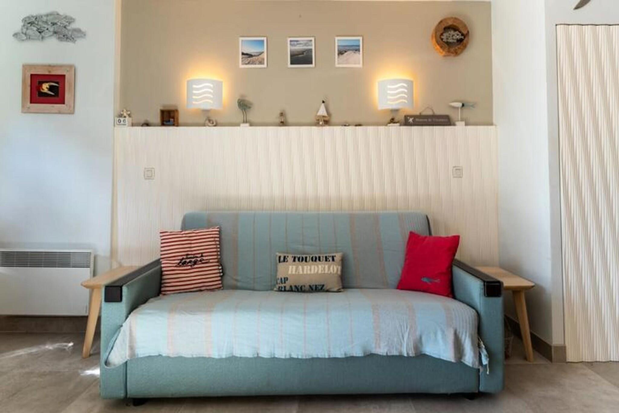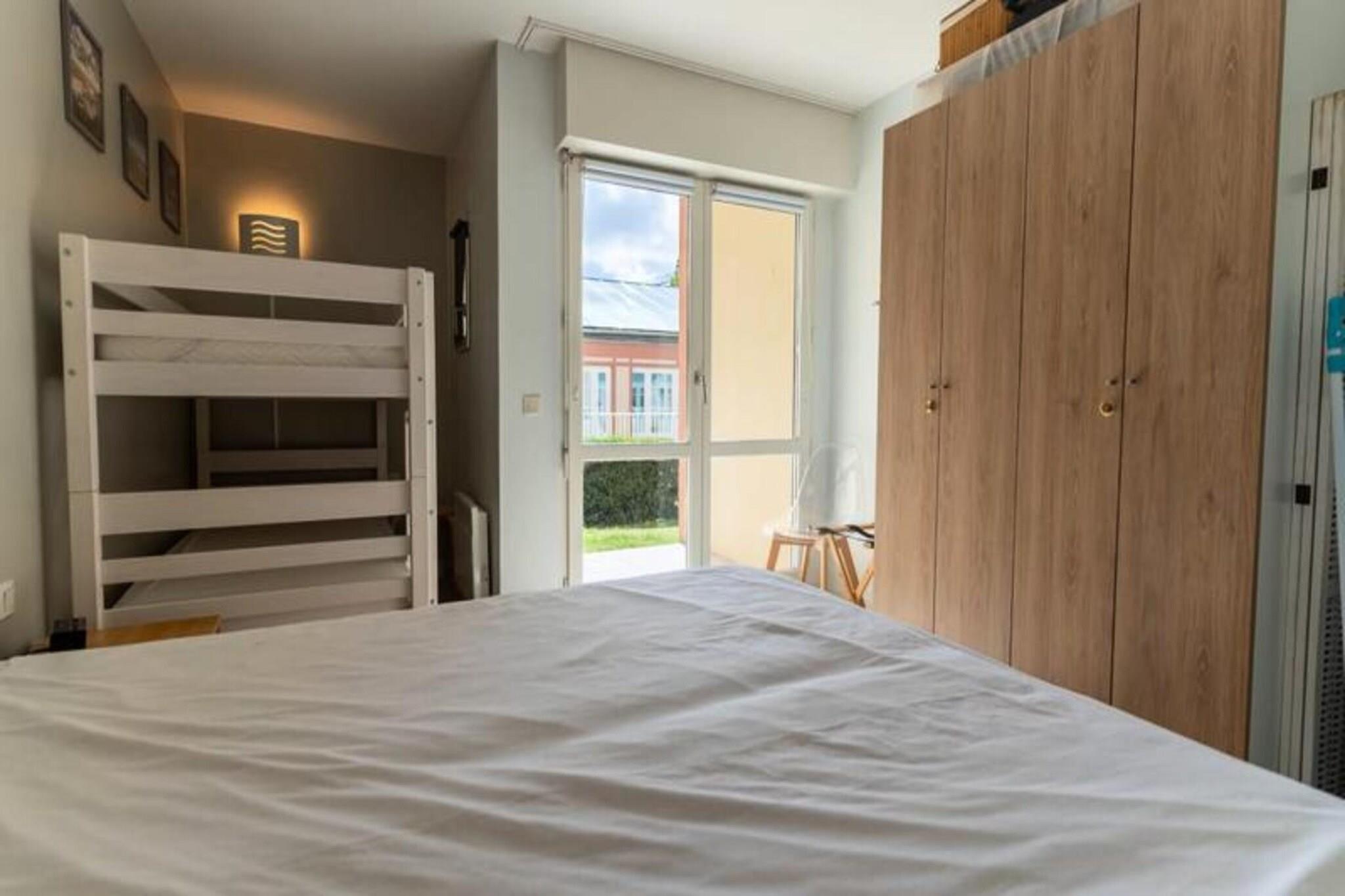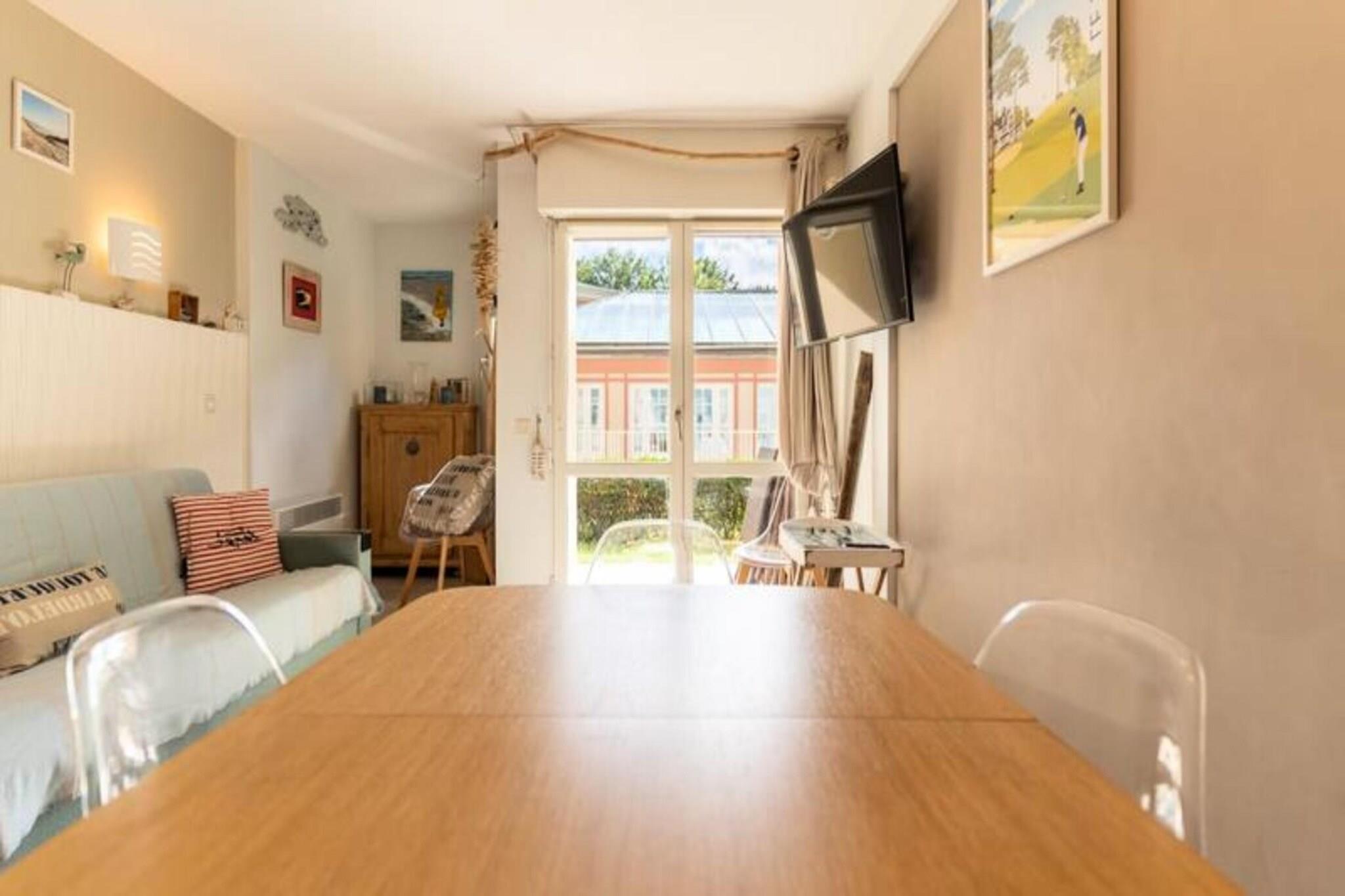 Denne hyggelige lejlighed, beliggende i en turistresidens, tilbyder komfortabel indkvartering for op til fire personer. Det har en stue med åbent køkken udstyret med opvaskemaskine, ovn, mikroovn og køleskab med fryser. Soveværelset indeholder en dobbeltseng (160 cm) og en køjeseng, hvilket gør det ideelt til familier eller små grupper. Lejligheden har desuden badeværelse med badekar og håndvask, samt separat toilet. Gæsterne tilbydes trådløs internetadgang, og der er gratis parkering på stedet. Bemærk venligst, at kæledyr ikke er tilladt, og lagner og håndklæder er valgfrie og ikke inkluderet. Ejendommen er ideelt beliggende i hjertet af hesteparken Touquet og tilbyder rolige og naturskønne omgivelser. Gæsterne kan nyde de fredelige omgivelser, mens de er tæt på lokale attraktioner. I nærheden finder du caféer, butikker og markeder, perfekt til at udforske og opleve den lokale kultur. Uanset om du søger afslapning eller udendørs aktiviteter, giver beliggenheden nem adgang til alt, hvad området har at byde på. Yderligere faciliteter omfatter adgang til en indendørs swimmingpool (dog lukket fra 5/1/25 til 7/2/25) og tennisfaciliteter. En betalt vaskeservice er tilgængelig i boligen for din bekvemmelighed. Lejligheden er veludstyret til et behageligt ophold, med alle de nødvendige apparater for at gøre dit besøg behageligt.