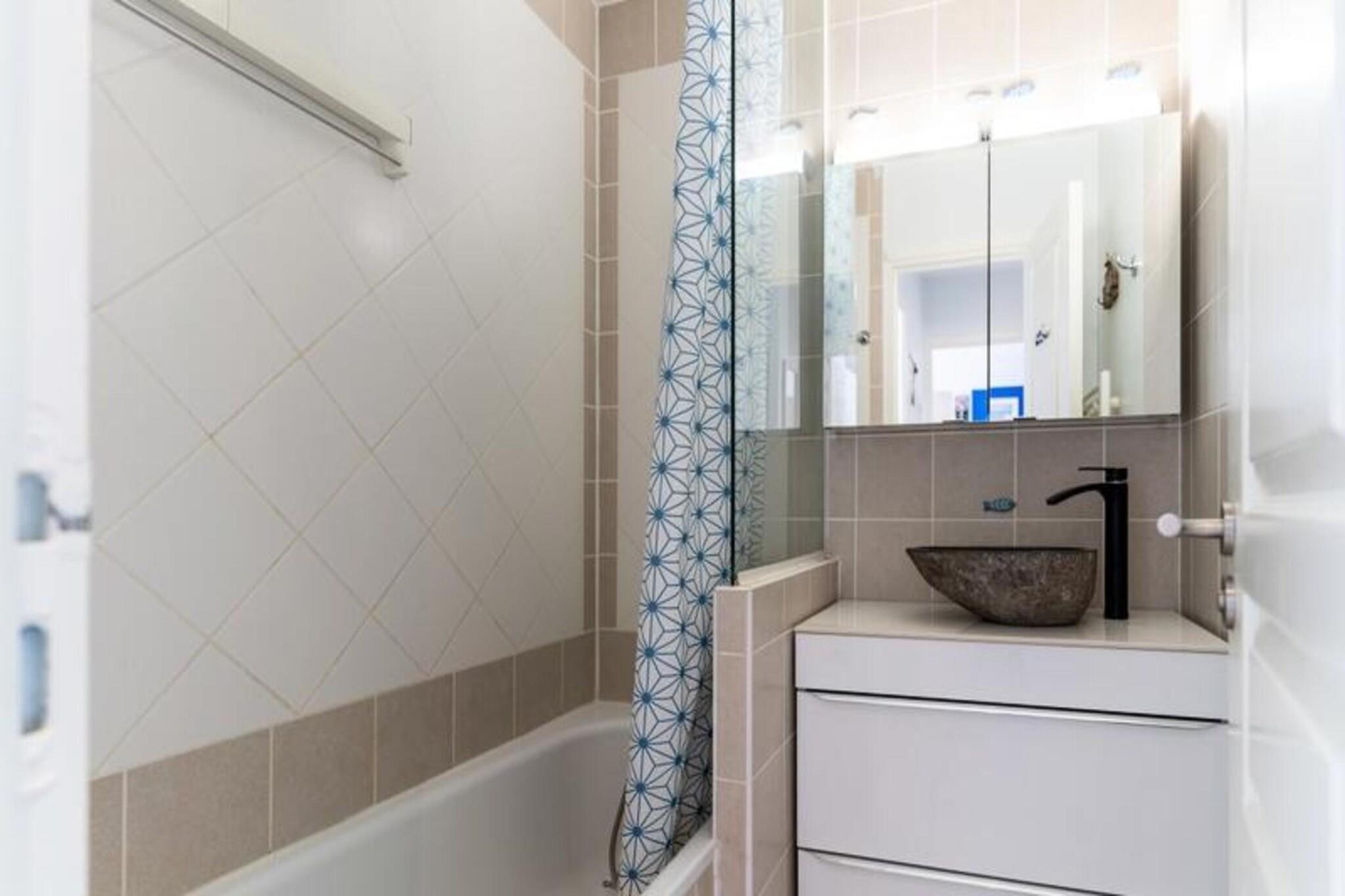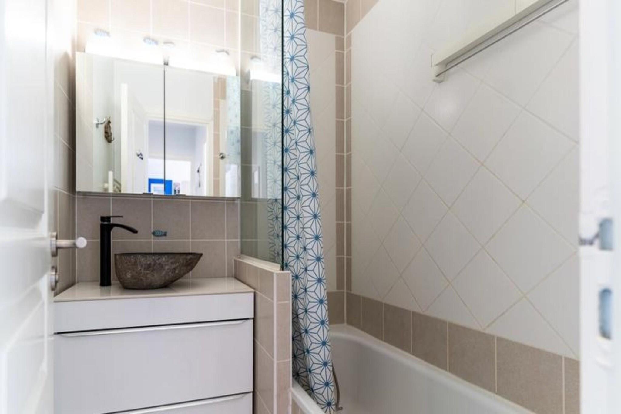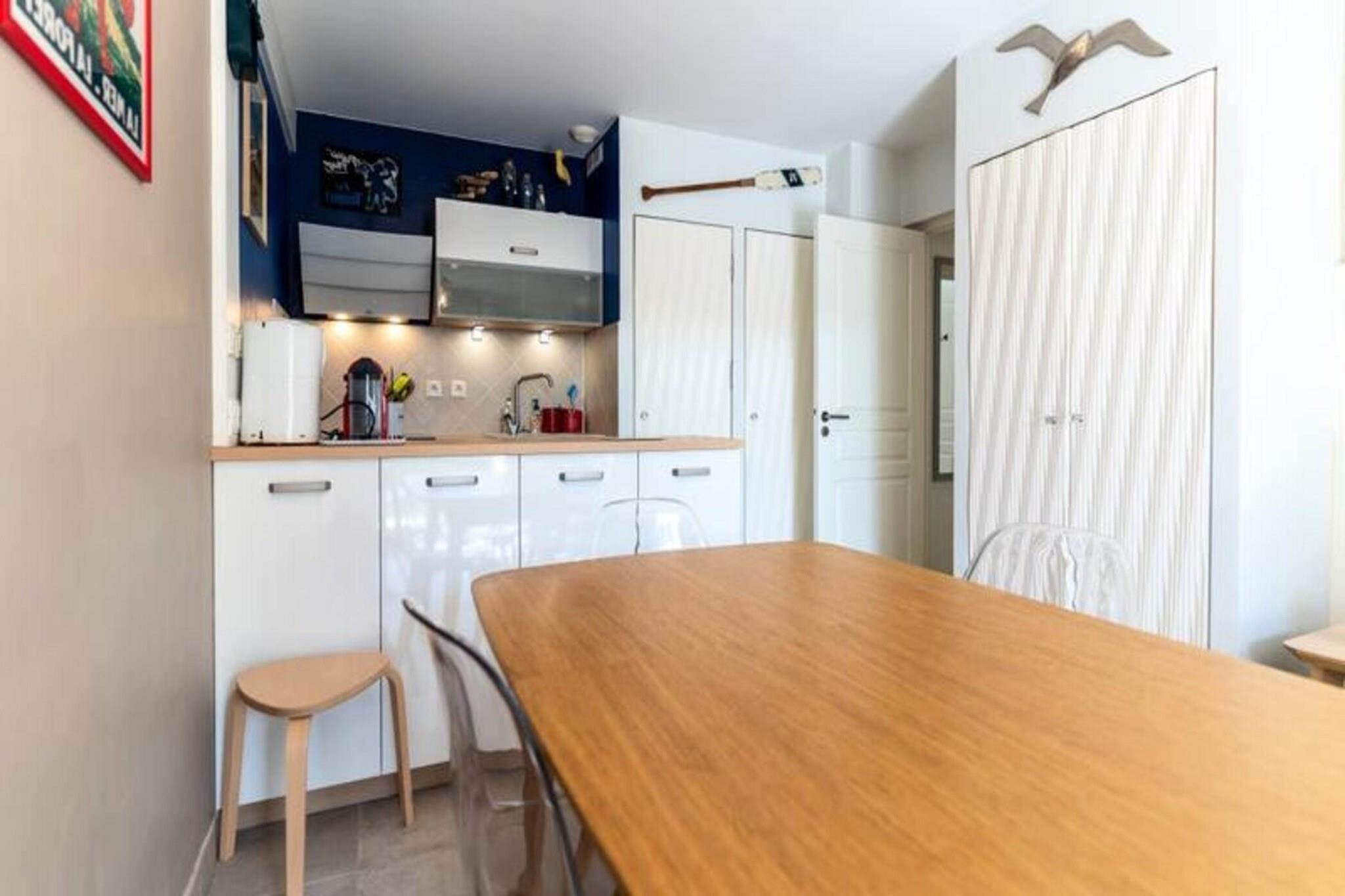Denne hyggelige lejlighed, beliggende i en turistresidens, tilbyder komfortabel indkvartering for op til fire personer. Det har en stue med åbent køkken udstyret med opvaskemaskine, ovn, mikroovn og køleskab med fryser. Soveværelset indeholder en dobbeltseng (160 cm) og en køjeseng, hvilket gør det ideelt til familier eller små grupper. Lejligheden har desuden badeværelse med badekar og håndvask, samt separat toilet. Gæsterne tilbydes trådløs internetadgang, og der er gratis parkering på stedet. Bemærk venligst, at kæledyr ikke er tilladt, og lagner og håndklæder er valgfrie og ikke inkluderet. Ejendommen er ideelt beliggende i hjertet af hesteparken Touquet og tilbyder rolige og naturskønne omgivelser. Gæsterne kan nyde de fredelige omgivelser, mens de er tæt på lokale attraktioner. I nærheden finder du caféer, butikker og markeder, perfekt til at udforske og opleve den lokale kultur. Uanset om du søger afslapning eller udendørs aktiviteter, giver beliggenheden nem adgang til alt, hvad området har at byde på. Yderligere faciliteter omfatter adgang til en indendørs swimmingpool (dog lukket fra 5/1/25 til 7/2/25) og tennisfaciliteter. En betalt vaskeservice er tilgængelig i boligen for din bekvemmelighed. Lejligheden er veludstyret til et behageligt ophold, med alle de nødvendige apparater for at gøre dit besøg behageligt.