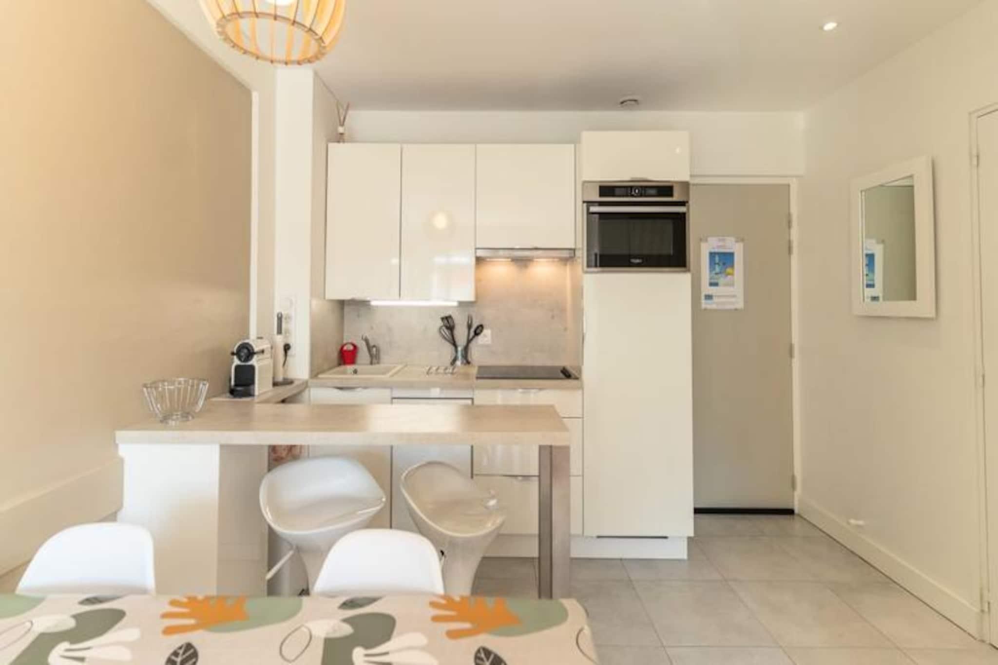 Hvor den fredfyldte Canche-bugt møder det livlige ridecenter, tilbyder denne charmerende lejlighed i stueetagen et roligt tilflugtssted for op til fem gæster. Beliggende i en velholdt turistbolig, inviterer ejendommen dig til at slappe af og koble af med sin opvarmede indendørs swimmingpool (lukket i januar), tennisbane og privat parkering. Uanset om du søger en fredelig ferie eller en aktiv ferie, tilbyder denne beliggenhed den perfekte balance mellem natur og bekvemmelighed. Indvendigt er lejligheden omhyggeligt designet med henblik på komfort og funktionalitet. Den hyggelige stue har et åbent køkken udstyret med en Nespresso-kaffemaskine, kombineret mikroovn/ovn, brødrister og opvaskemaskine, hvilket gør madlavningen til en leg. Soveværelset har en queensize-seng, garderobeskabe og køjesenge, mens sovesofaen i stuen tilbyder ekstra soveplads. Badeværelset har badekar, håndvask og toilet samt en hårtørrer for din bekvemmelighed. Der er også vaskemaskine og tørretumbler til rådighed i boligen mod et mindre gebyr. Gå udenfor og udforsk den nærliggende ridepark og væddeløbsbane, eller benyt dig af shuttlebus til byens centrum, der ligger bekvemt tæt på boligen og kører i weekenden. De maleriske omgivelser ved Canche-bugten er den perfekte kulisse for afslappede gåture, cykling eller blot for at nyde områdets naturlige skønhed. Uanset om du rejser med familien, en gruppe venner eller som par, er denne lejlighed et dejligt udgangspunkt for at skabe varige minder. Med sin blanding af moderne faciliteter og nærhed til lokale attraktioner er det et ideelt valg til din næste ferie.