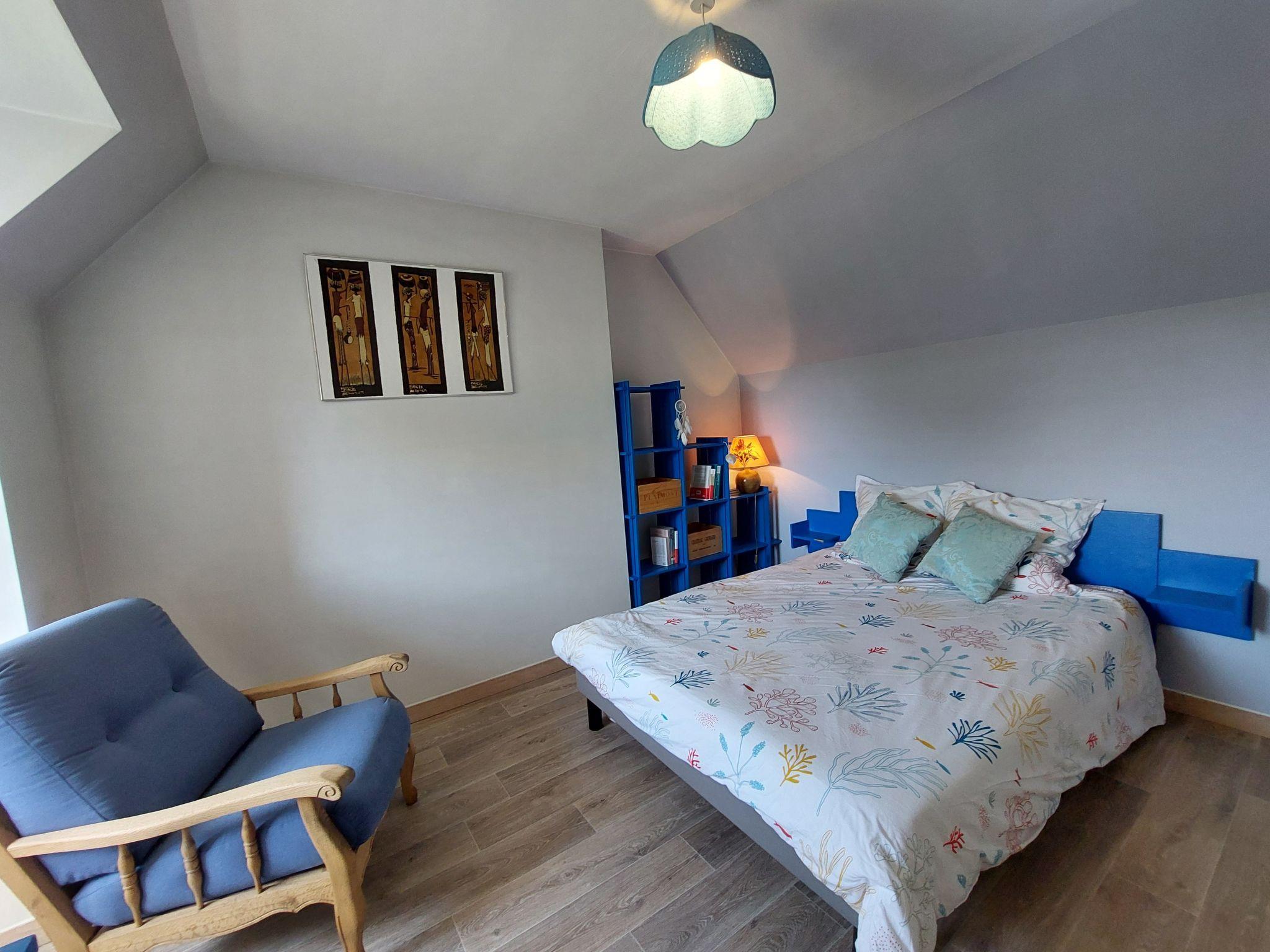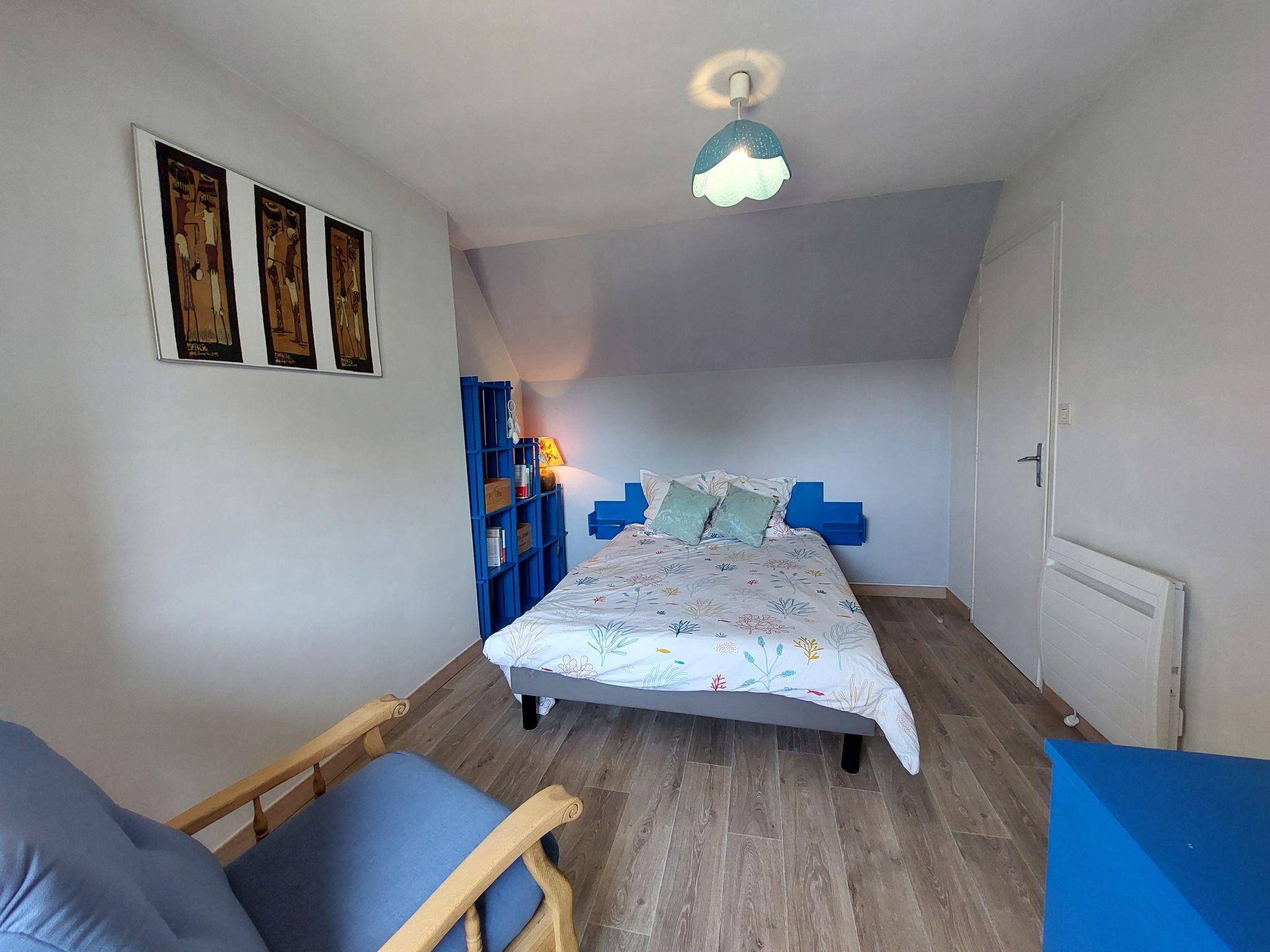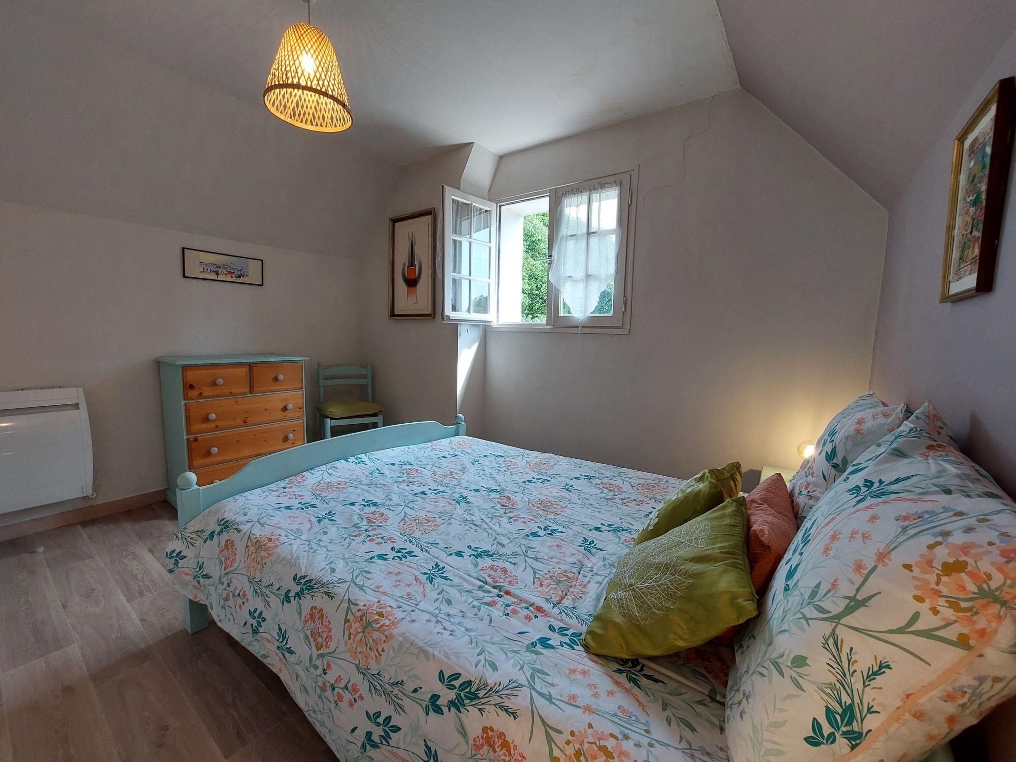 3-room house 60 m2 on 2 levels. Beautiful furnishings: living/dining room with 1 sofabed (120 cm, length 190 cm), TV (flat screen). Exit to the veranda. Open kitchen (oven, dishwasher, 4 gas rings, toaster, kettle, microwave, freezer, electric coffee machine). Exit to the terrace. Bathroom, sep. WC. Upper floor: 1 room with sloping ceilings with 1 double bed (140 cm, length 190 cm). 1 room with sloping ceilings with 1 french bed (140 cm, length 190 cm). Electric heating. Terrace. Terrace furniture, barbecue, deck chairs (2). Facilities: washing machine. Internet (WiFi, free). Please note: non-smoking house. Maximum 1 pet/ dog allowed. Smoke alarm. Offer by a private individual according to Art. 155, IV of CGI.