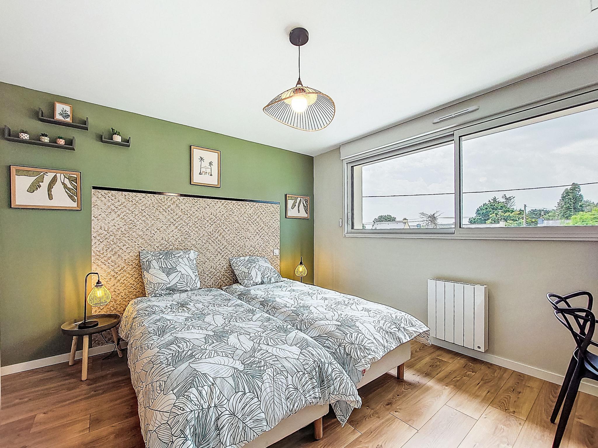 Modern, very comfortable house "Charme de la Plage du Rouvran", built in 2023. 1.1 km from the centre of Le Tour du Parc, 470 m from the sea, 470 m from the beach. Private: property 340 m2 with lawn. Storeroom available. Parking on the premises. Grocery 1.1 km, supermarket 1.1 km, restaurant 500 m, bus stop "Surzur" 9.3 km, sandy beach "Plage de Rouvran" 470 m. Nearby attractions: Musée de l'Ostréiculture 850 m, Pointe de Penvins (Parc Accrobranche) 5 km, Château de Suscinio 6.2 km, Golfe du Morbihan 8.5 km, Sarzeau 9.4 km, Arzon-Vannes 22 km. Hiking paths: GR34. Part of the house is closed and unoccupied.