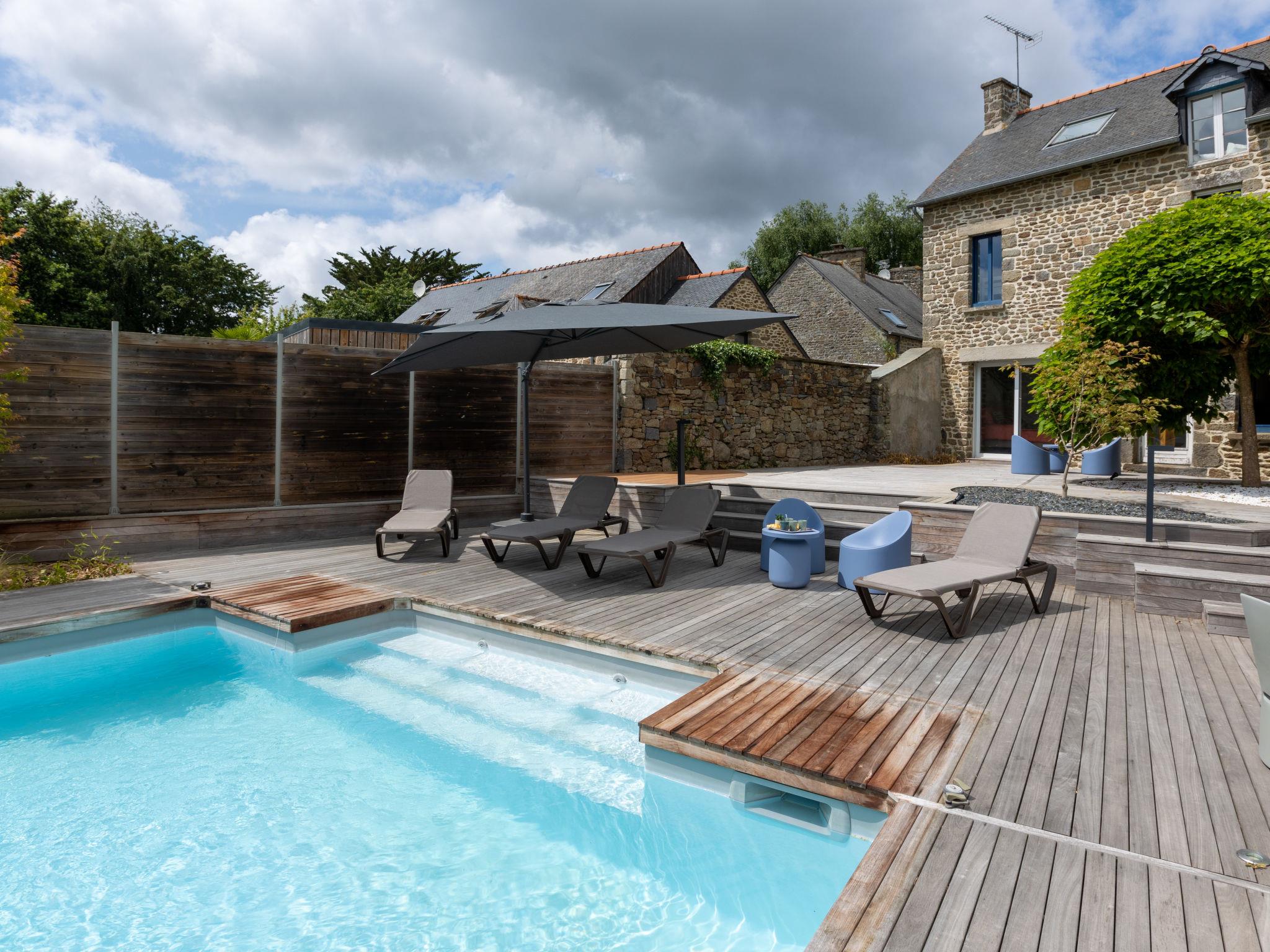 Le tronchet: Very beautiful, comfortable, luxurious country house "La Gentilhommière", 3 storeys, renovated, surrounded by trees. In a secluded, quiet, sunny position, 19 km from the sea. Private: well-kept garden 800 m2 (fenced) lawn and trees, swimming pool angular (5 x 10 m, seasonal availability: 15.May. - 30.Sep.) with shutter cover. Pool maintenance by the owner/gardener. In the house: lounge with TV, WiFi, fitness room, playroom, table football. Parking (for 4 cars). Grocery 6 km, restaurant 1 km, bakery 5 km, bus stop "Tronchet centre" 260 m, railway station "Plerguer" 6 km, ferry "Gare maritime du Naye" 26 km, sandy beach "Saint Suliac" 19 km, thermal baths "Therme marin de Saint Malo" 27 km, lake de Mirloup 1 km. Golf course (18 hole) 2 km, riding stable 5 km. Nearby attractions: Saint Malo intra muros 27 km, Cobac park 9 km, Cancale 26 km, Grand aquarium de Saint Malo 23 km, Golf du Tronchet 2 km, Mont Saint Michel 40 km. Please note: car recommended.
