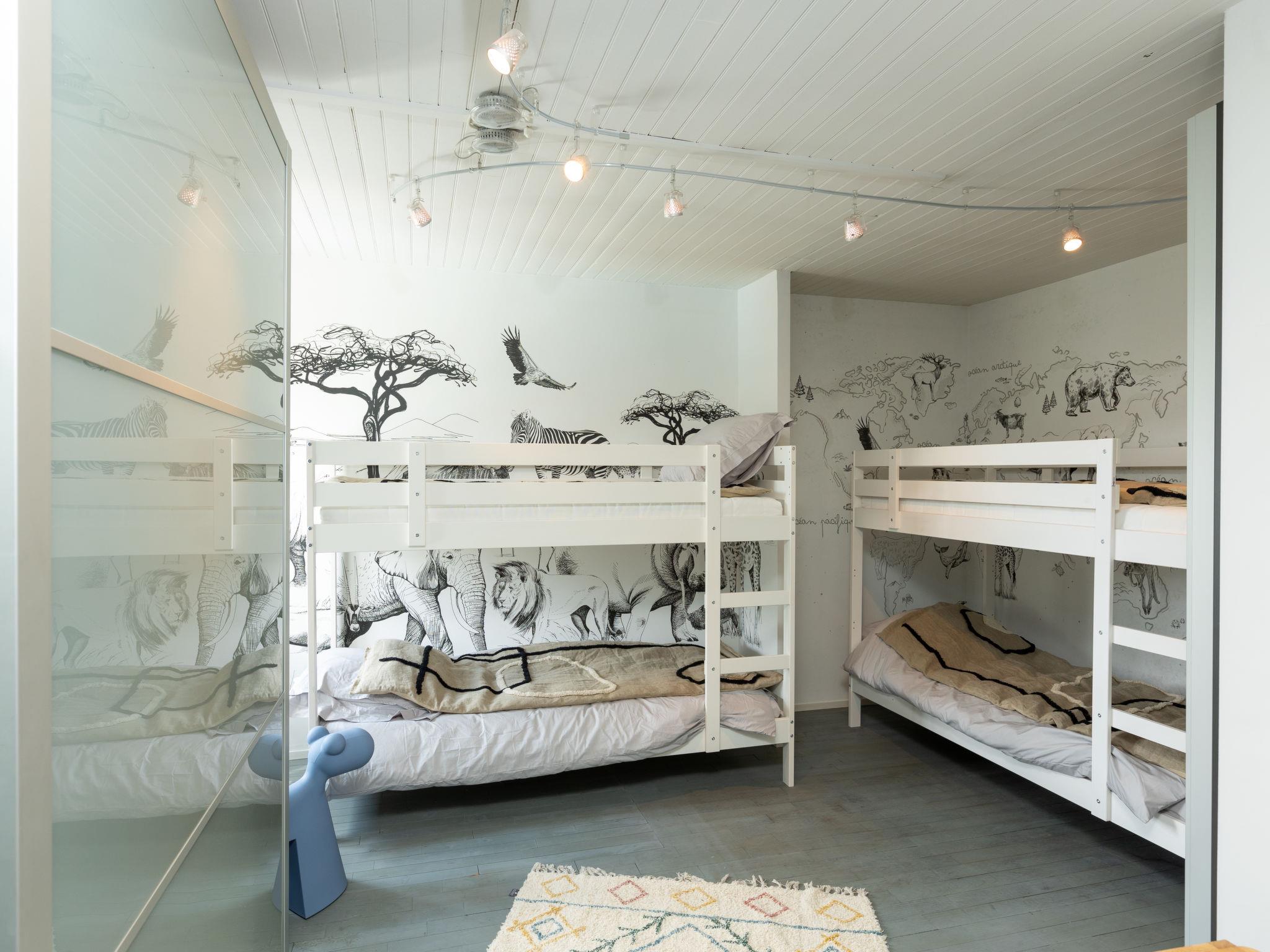 8-room house 370 m2 on 3 levels. Spacious and bright, comfortable and luxurious furnishings: large lounge. Exit to the garden, to the terrace. Dining room. Exit to the terrace. Large playroom with Home cinema. 1 room with 1 french bed (1 x 160 cm, length 200 cm). Exit to the terrace. Kitchen (oven, dishwasher, 3 induction hot plates, toaster, kettle, microwave, freezer, electric coffee machine, Capsules for coffee machine (Nespresso/Special T) extra) with bar, dining table, TV (flat screen). Shower, sep. WC. Electric heating. Upper floor: 1 children's room with 2 x 2 bunk beds (90 cm, length 190 cm). 1 large room with 1 french bed (1 x 180 cm, length 200 cm). Bath/shower, sep. WC. 2nd upper floor: 1 room with 1 french bed (1 x 160 cm, length 200 cm). 1 room with 2 beds (90 cm, length 190 cm). Large terrace, large garden 800 m2, south facing position. Terrace furniture, barbecue, deck chairs. Facilities: washing machine, dryer, iron, hair dryer. Internet (WiFi, free). Please note: non-smokers only. Smoke alarm. The pool mentioned in the description is for private use. gym, cinema, personalized welcome on site according to defined conditions. Offer by a private individual according to Art. 155, IV of CGI.