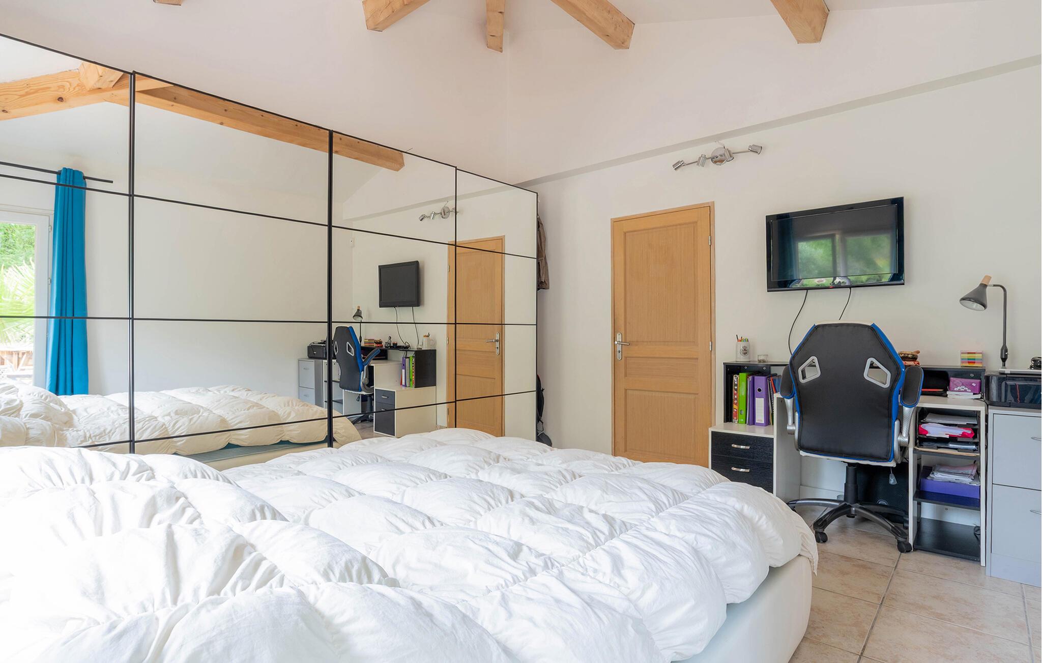 Beliggende på en stor naturgrund byder dette charmerende provencalske hus jer velkommen og tilbyder masser af plads til afslapning med familien. Spil billard, tryll lækre retter frem i det åbne køkken og glæd jer til hyggelige måltider, afslappende læsetimer eller sjove spilleaftener i den rummelige opholdsstue.