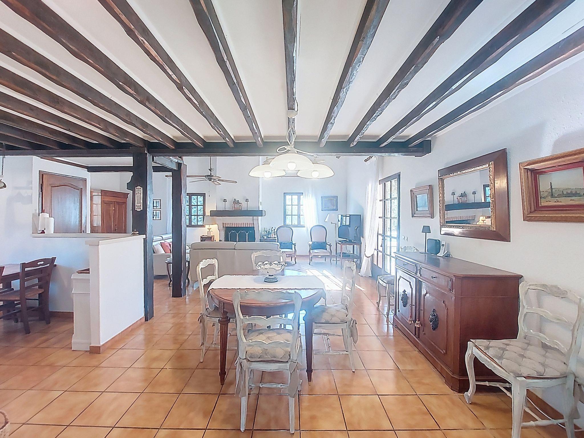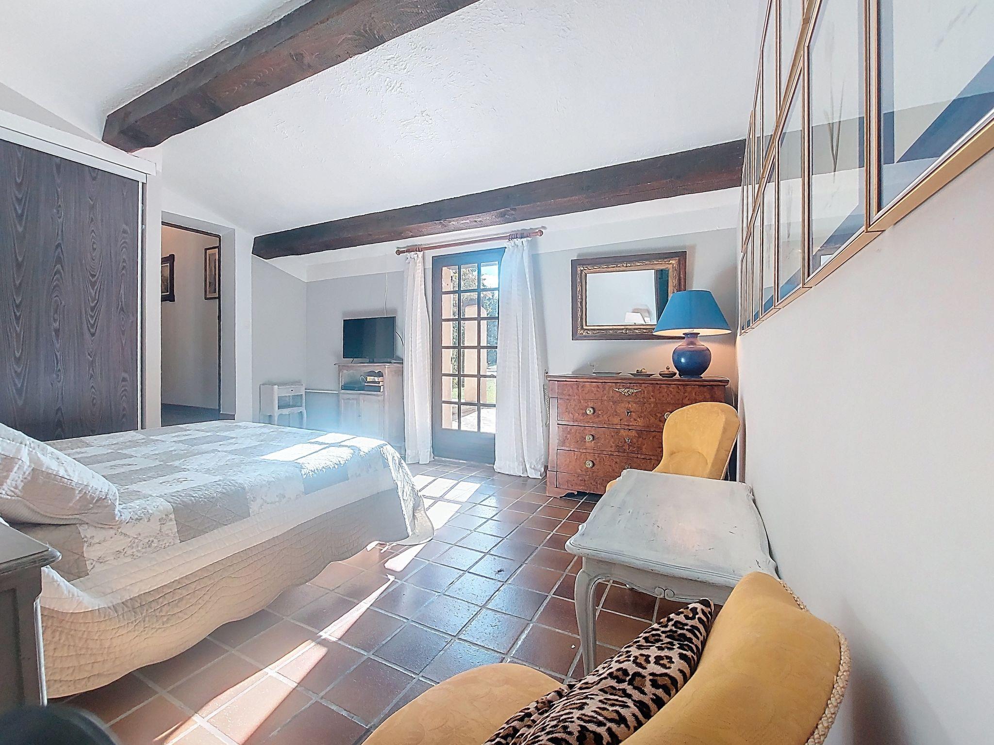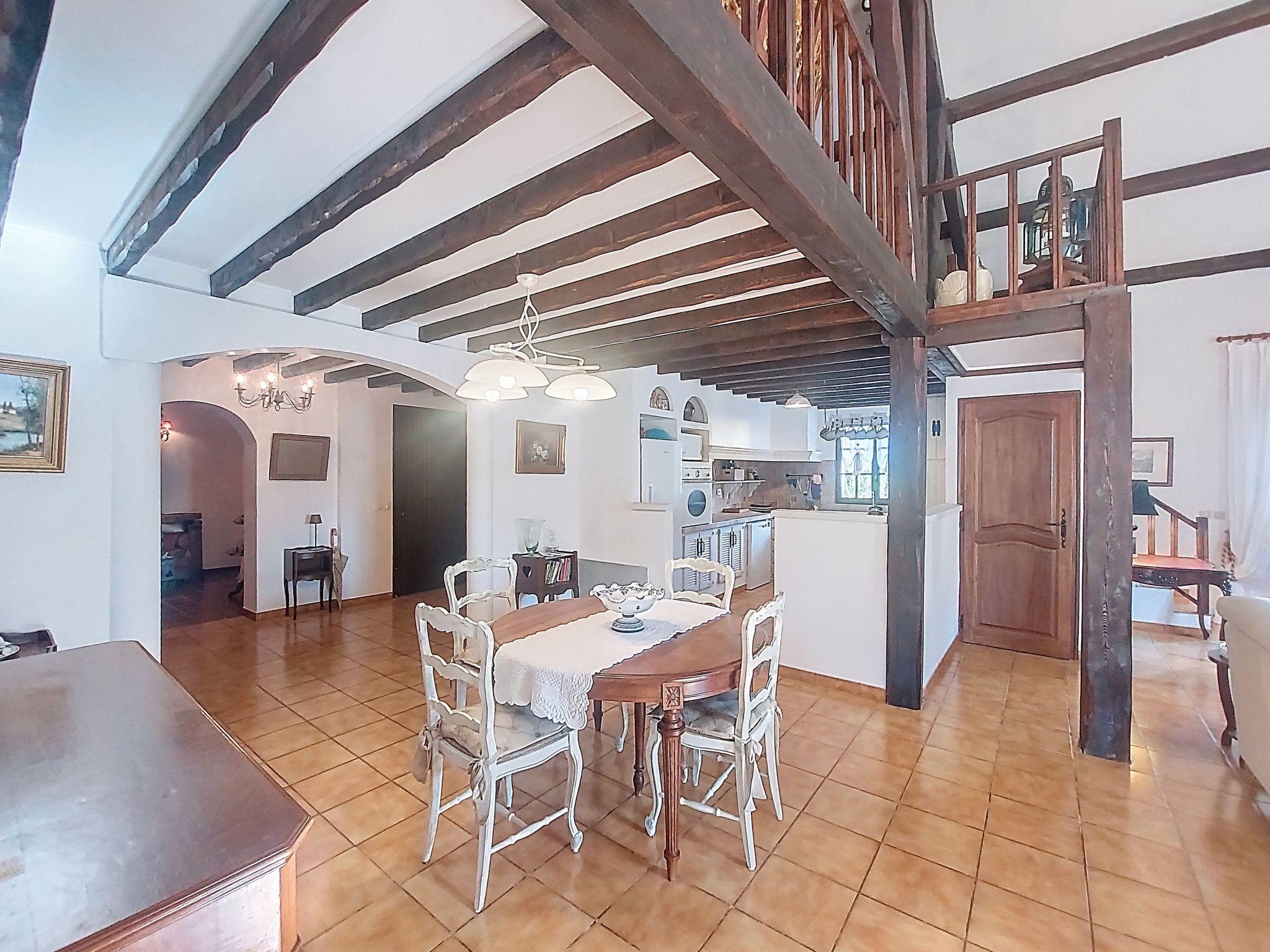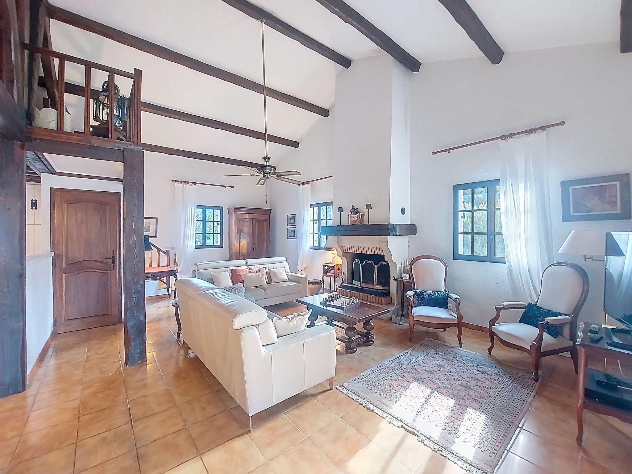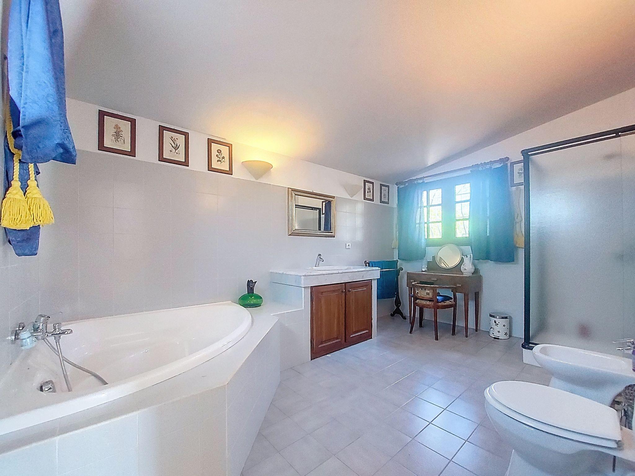 "La Maisonnette", 5-room villa 180 m2. Beautiful furnishings: entrance hall. Living/dining room with open-hearth fireplace, dining table and TV (flat screen). Exit to the terrace. 2 rooms, each room with 1 french bed (160 cm, length 190 cm). Exit to the terrace. 1 room with 1 french bed (160 cm, length 200 cm), bath/shower/WC. Exit to the terrace. Open kitchen (oven, dishwasher, 4 ceramic glass hob hotplates, toaster, kettle, microwave, electric coffee machine). Shower, shower/WC, sep. WC. Upper floor: 1 children's room with sloping ceilings with 2 beds (90 cm, length 190 cm). Electric heating. Large terrace roofed. Barbecue, deck chairs (6). Facilities: washing machine, iron, baby cot for up to 3 year olds, hair dryer. Internet (WiFi, free). Please note: non-smoking house. Smoke alarm. The pool mentioned in the description is for private use. Offer by a private individual according to Art. 155, IV of CGI. 83143000118VQ