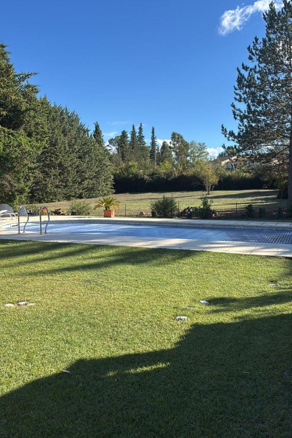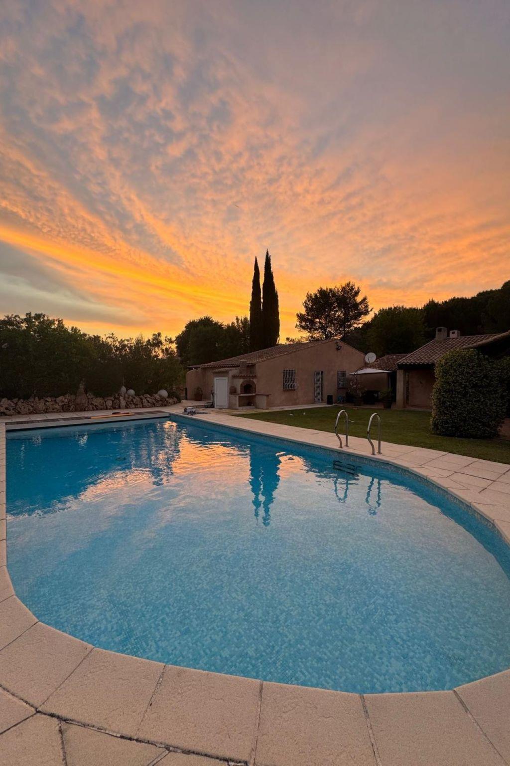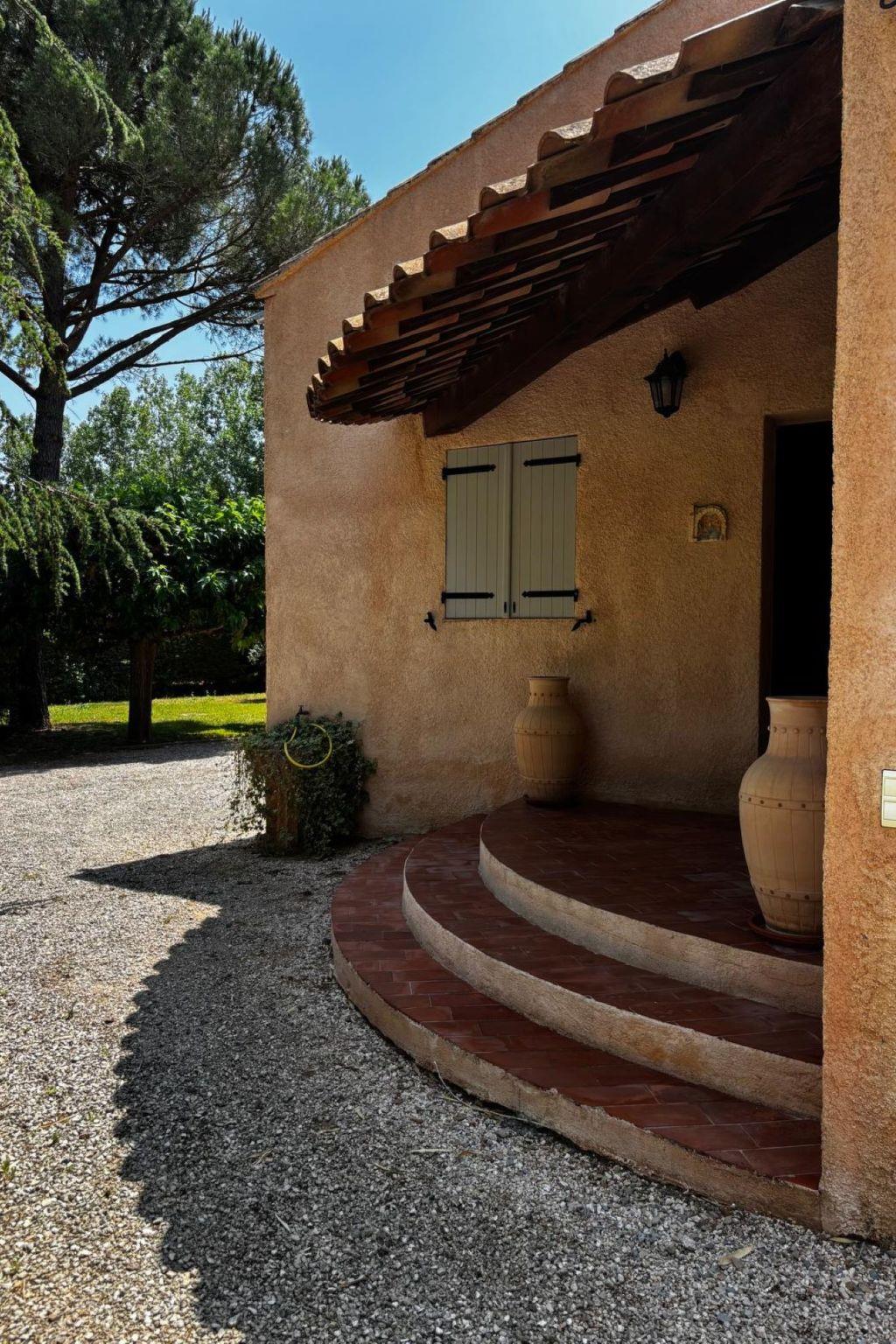 2.7 km from the centre of Le Val, 8 km from the centre of Brignoles, 17 km from the centre of Saint Maximin la Sainte Baume, in the residential district, 57 km from the sea, 41 km from the lake. Private: property 2'500 m2 (fenced), beautiful garden to relax, swimming pool angular (10 x 5 m, depth 110 - 180 cm, seasonal availability: 01.May. - 30.Oct.) with shutter cover. 300 m long narrow motor access. Parking (for 3 cars) on the premises. Grocery 3.4 km, supermarket 8 km, shopping centre 8.5 km, restaurant 2.7 km, bar 2.7 km, bakery 2.7 km, café 2.7 km, bus stop 3 km, railway station "Les Arcs Draguignan" 45 km, sandy beach "Les Salins Hyeres" 57 km. Golf course (18 hole) 15 km, riding stable 2 km. Nearby attractions: Vallon Sourn, Abbaye de la Celle, Abbaye du Thoronet, Gorges du Verdon. Well-known lakes can easily be reached: Lac de Carcès (pêche uniquement) 14 km, Lac de Quinson 41 km, Lac de Sainte Croix 48 km. Hiking paths: Parc Régional de la Sainte Baume, Parc Régional du Verdon, Plaine des Maures. Please note: car recommended. The owner does not accept any youth groups. Part of the house is closed and unoccupied.