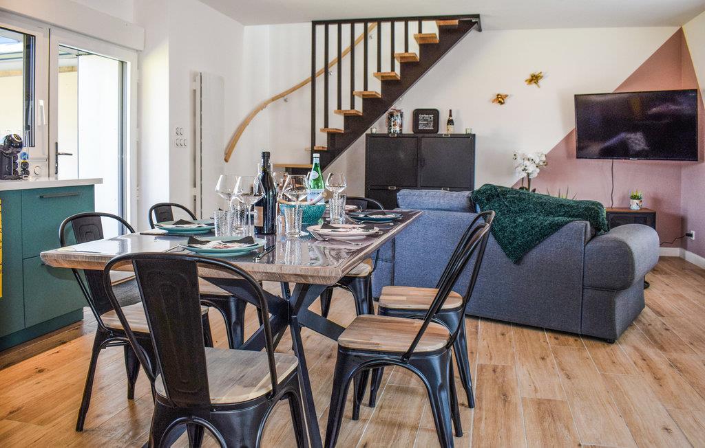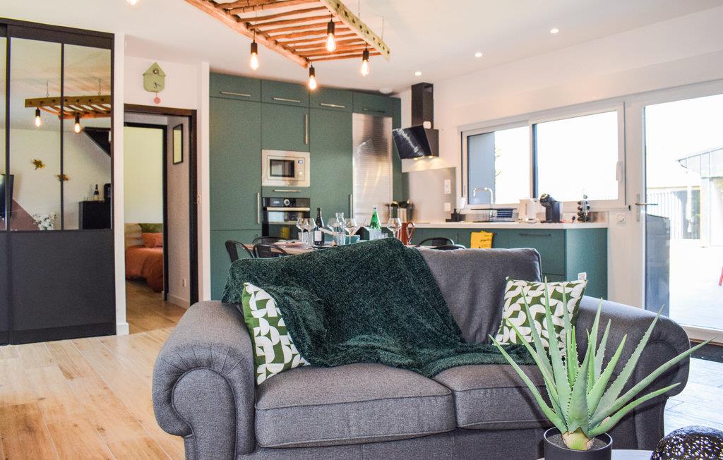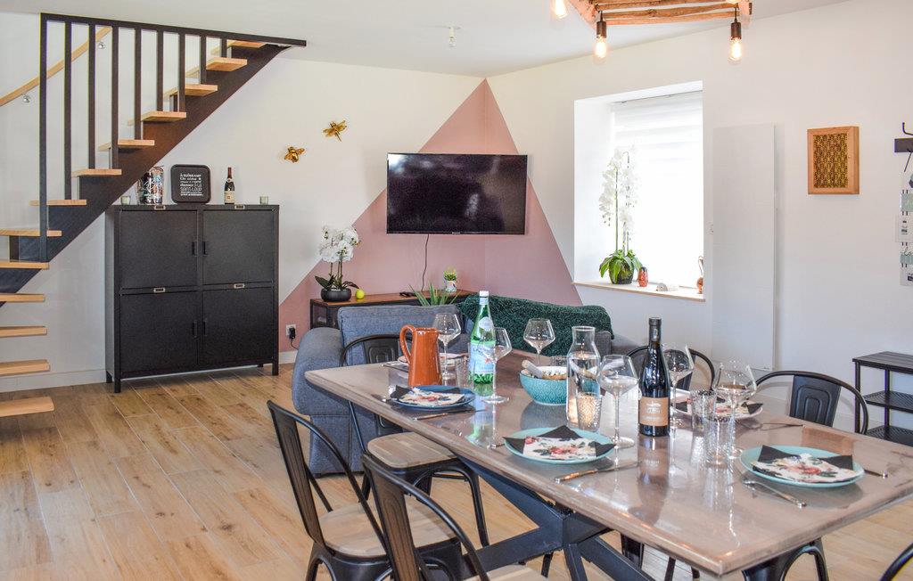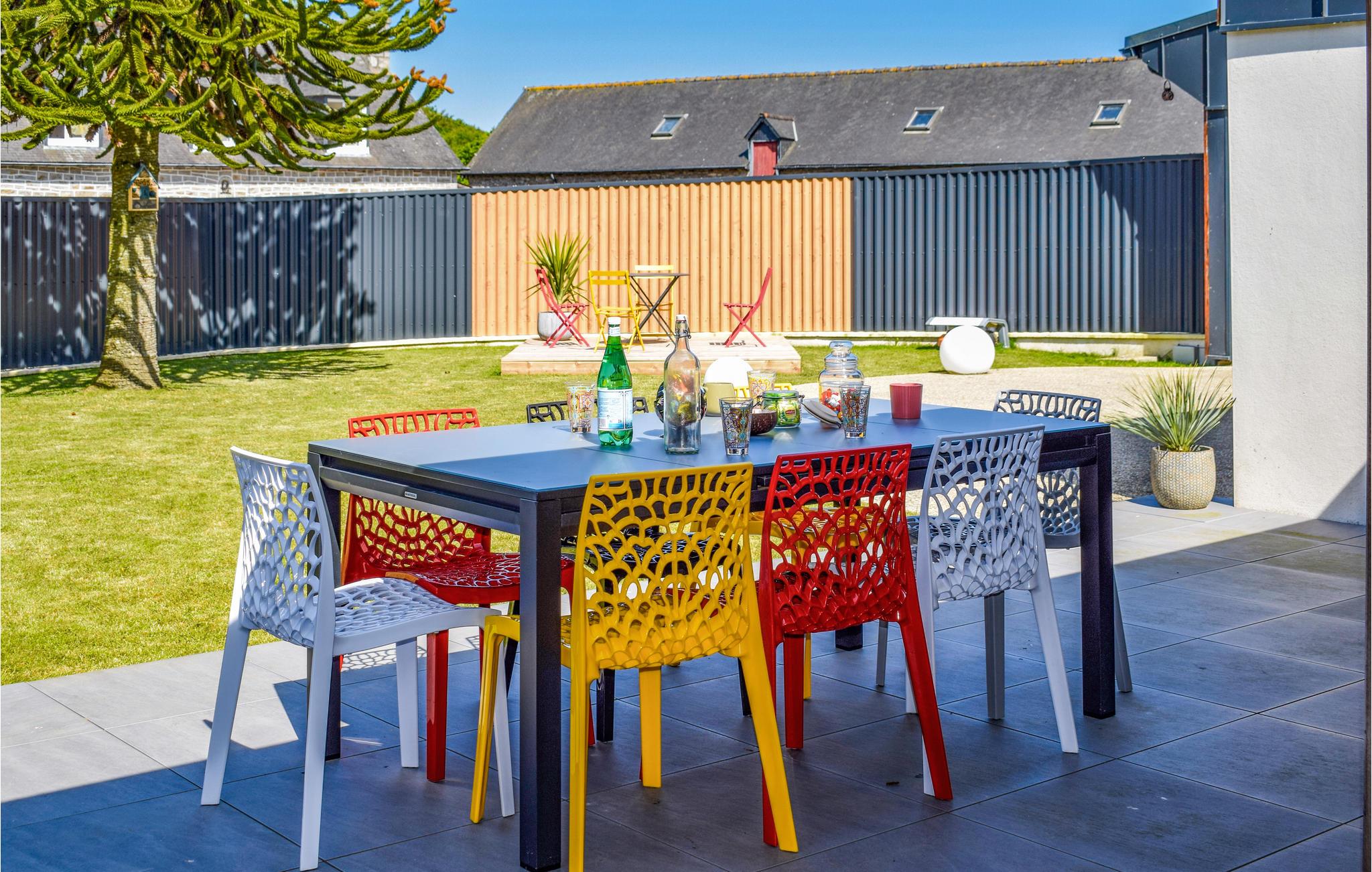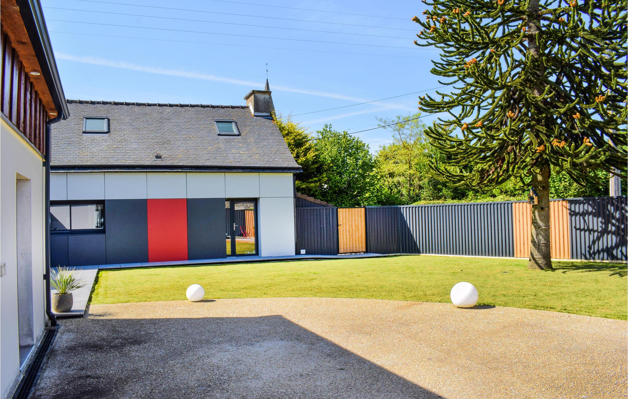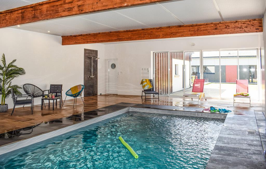 Rummeligt, familievenligt feriehus med opvarmet indendørs pool. Dette feriehus ligger roligt i den bretonske kommune Le Vieux-Bourg. De lyse, farverigt indrettede værelser gør et smagfuldt indtryk og tilbyder de perfekte rammer for ubekymrede ferier med familien. Lad de små slippe dampen ud i legehjørnet, hygge med et spil bordtennis og senere slappe af ved poolen. Om aftenen kan I tilberede jeres delikatesser i det store køkken og afslutte en fantastisk dag omkring spisebordet. Den indhegnede have byder på flere hjørner, der inviterer til at blive hængende, og på varme dage kan I køle af under den udendørs bruser. Gå en tur gennem området og besøg destinationer som de helliges dal eller slottet Val. Kig forbi på hyggelige restauranter og prøv lækre regionale specialiteter. Inden for rækkevidde frister Guerlédan-søen jer også med badeture og vandsport.