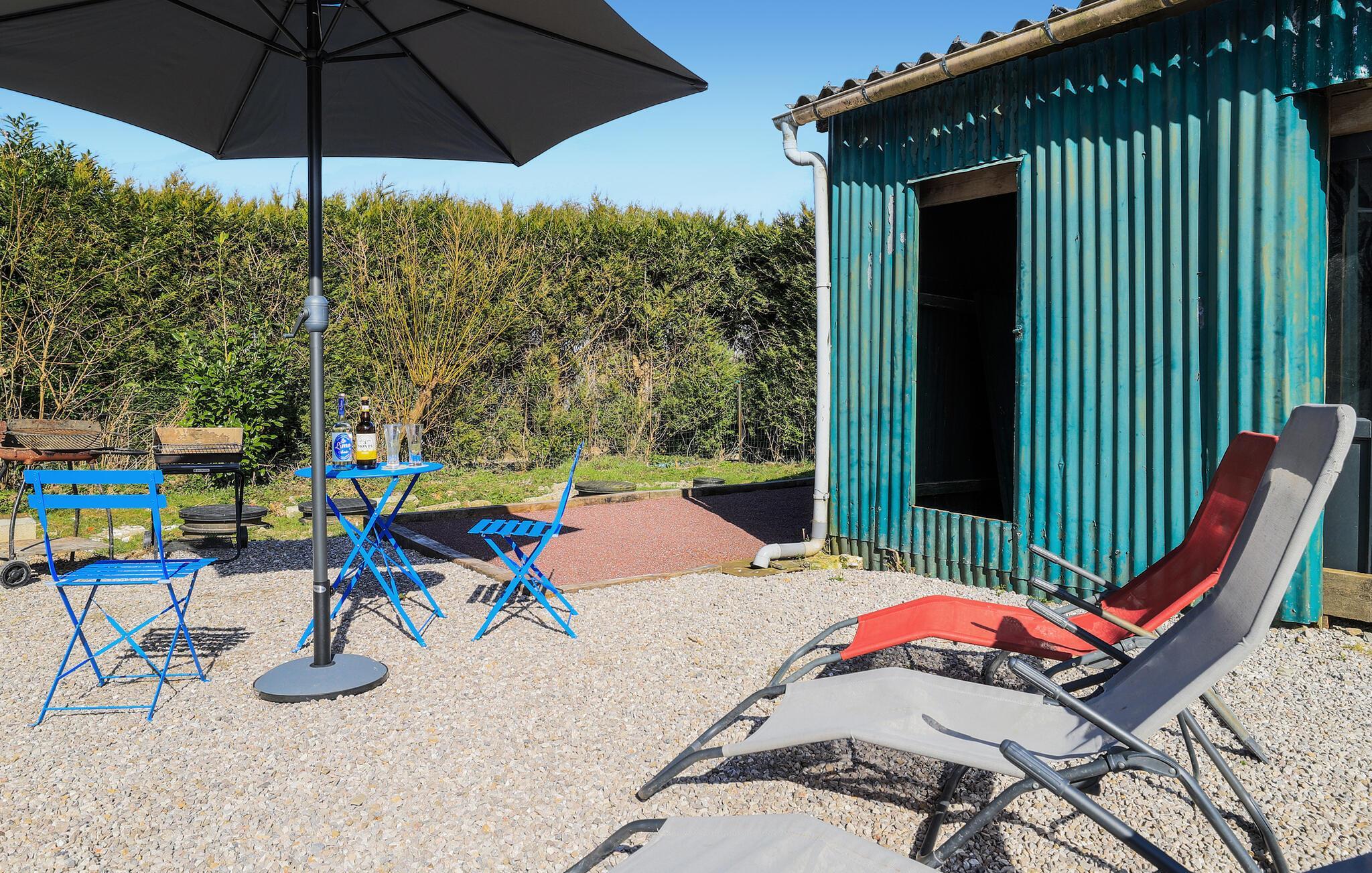 Slap af i det solrige udendørsområde, som er udstyret med liggestole og masser af siddepladser samt en parasol. Tilbring varme sommeraftener med at grille og nyd den rolige atmosfære i den velholdte have. Udfordr familien eller venner til et spil petanque på jeres egen boulebane eller spil bordtennis sammen udendørs.