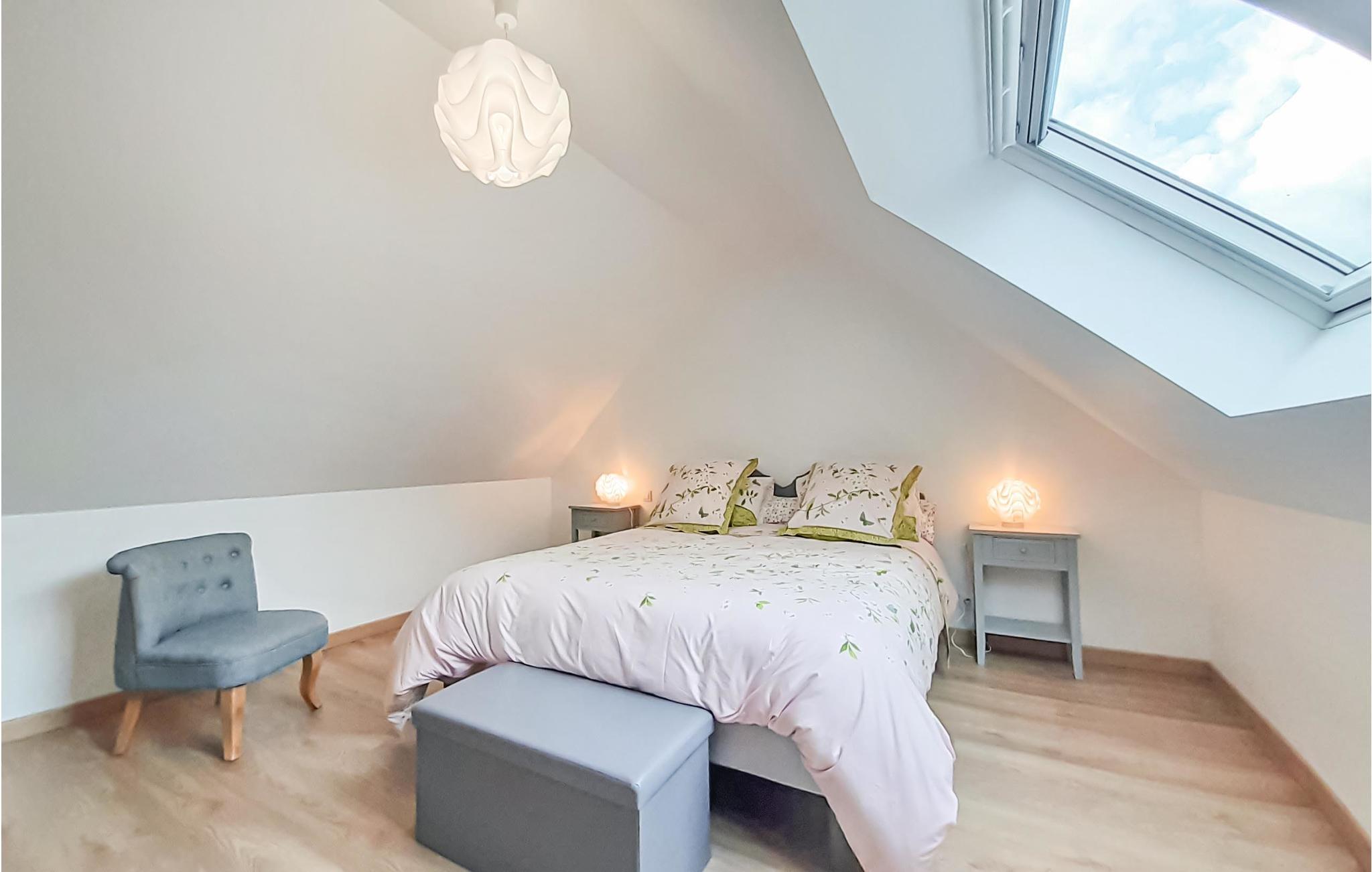 Du vil sætte pris på det moderne og venlige interiør med rummelige og veludstyrede værelser. Saunaen, 1 stort soveværelse med en barneseng og et badeværelse ligger i stueetagen. De andre 3 soveværelser og det andet badeværelse er ovenpå. Stor stue med adgang til terrassen og køkken med adgang til den store spisestue.