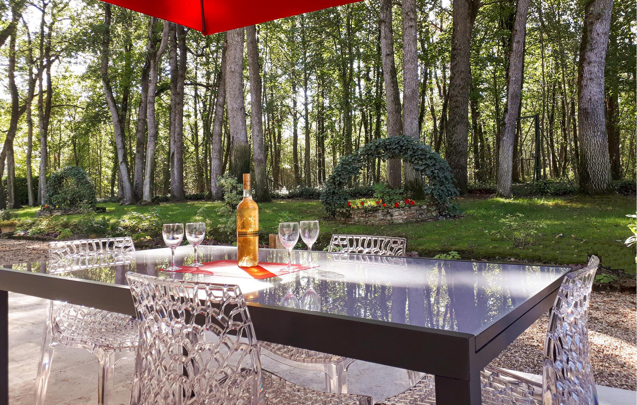 Slap af og indånd den friske landluft på den hyggelige terrasse. Ejendommens store grund kan prale af en række forskellige træ- og buskarter og er hjemsted for mange dyr og fugle, der gør dette sted fortryllende. Den store swimmingpool lægger op til at køle af på varme dage. For friluftsmennesker er der adskillige vandrestier, hvor I kan observere hjorte og mange andre dyr om morgenen. I selve Lencloitre finder I charmerende caféer og butikker. Regionen er rig på historie og kultur, ideel til udforskning og afslappende gåture.