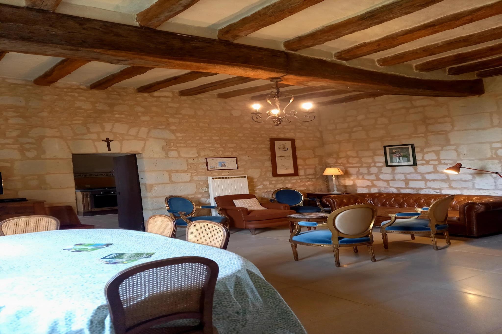 Vidunderlig autentisk natursten palæ med lukket privat have i hjertet af det historiske TouraineDen store store palæ kan nås via en lille landevej. Din bolig er beliggende på højre side af bygningen. Et attraktivt og unikt feriehus; du vil føle at du kommer tilbage i tiden, men har stadig moderne bekvemmeligheder ved hånden. Høje lofter, antikke mantelpieces og smukke store vinduer kombineret med en himmelseng fuldfører den romantiske franske atmosfære. tyk, natursten vægge holder stedet køligt på varme sommerdage. Haven, med legepladsudstyr og en stor græsplæne, er omgivet af en naturstenmur, der giver dig fuldstændig privatliv. Du kan frit vælge din egen frugt, såsom kirsebær og brombær og brænde grillen om aftenen og nyd den vidunderlige udsigt. Der er masser af interessante seværdigheder at besøge i området. Chinon (15 km) har for eksempel en berømt historisk bymidte såvel som et slot. Fontevraud Abbey og byen Saumur er også et besøg værd. 20 minutter væk finder du de smukkeste huler i Touraine. Det kuperede landskab er perfekt til vandre og cykle. Andre aktiviteter, som alle kan nås inden for 15 minutter, inkluderer kano på floden Vi enne, ridning, tennis, squash og en swimmingpool.