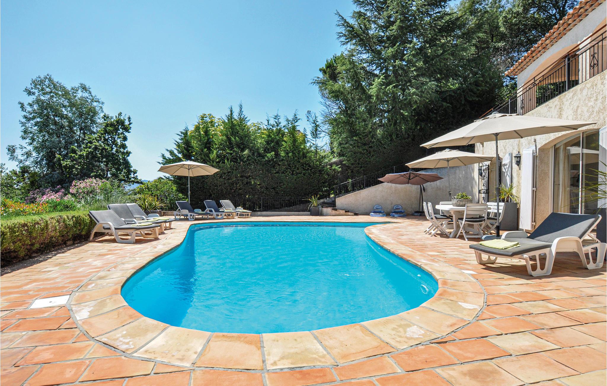 Denne villa, der er indrettet i romantisk landstedsstil, byder jer velkommen til en høj beliggenhed med en storslået udsigt, der strækker sig helt til Cannes-bugten. Det smukt designede interiør byder op en behagelig stemning. Snak over afslappede måltider, tryl kulinariske lækkerier frem, og benyt de komfortable sofaer til stille læsning eller sjove spilleaftener.