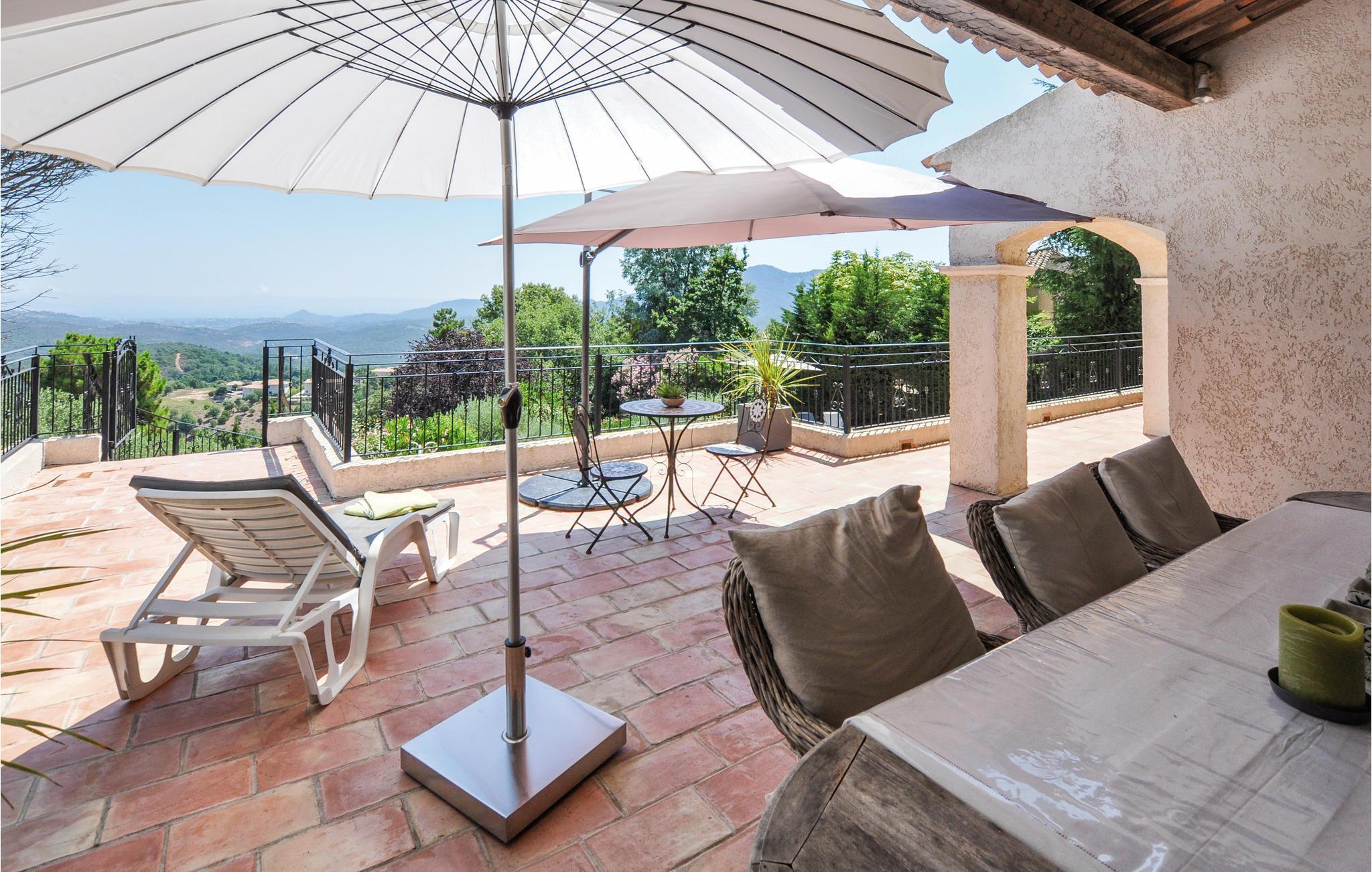Forkæl jer selv med en dejlig ferie i dette rummelige feriehus med pool og panoramaudsigt.
