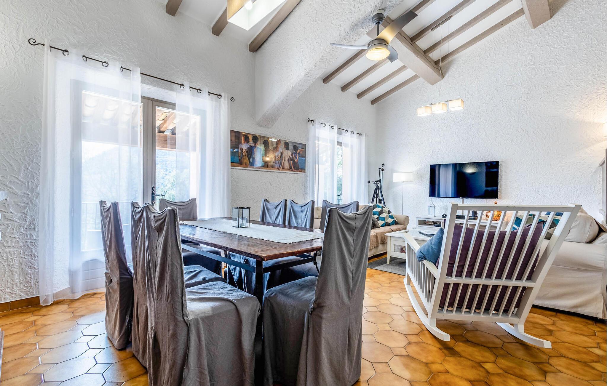I dette attraktive feriehus, der ligger i idylliske omgivelser, finder I ro og fred fra første dag. De indbydende rum og hjemlige møbler skaber en hyggelig atmosfære og får jer til at føle jer godt tilpas. Her kan hele familien hygge sig, nyde den vidunderlige udsigt straks fra morgenstunden af og tilbringe sjove aftener sammen i godt selskab efter en oplevelsesrig dag.