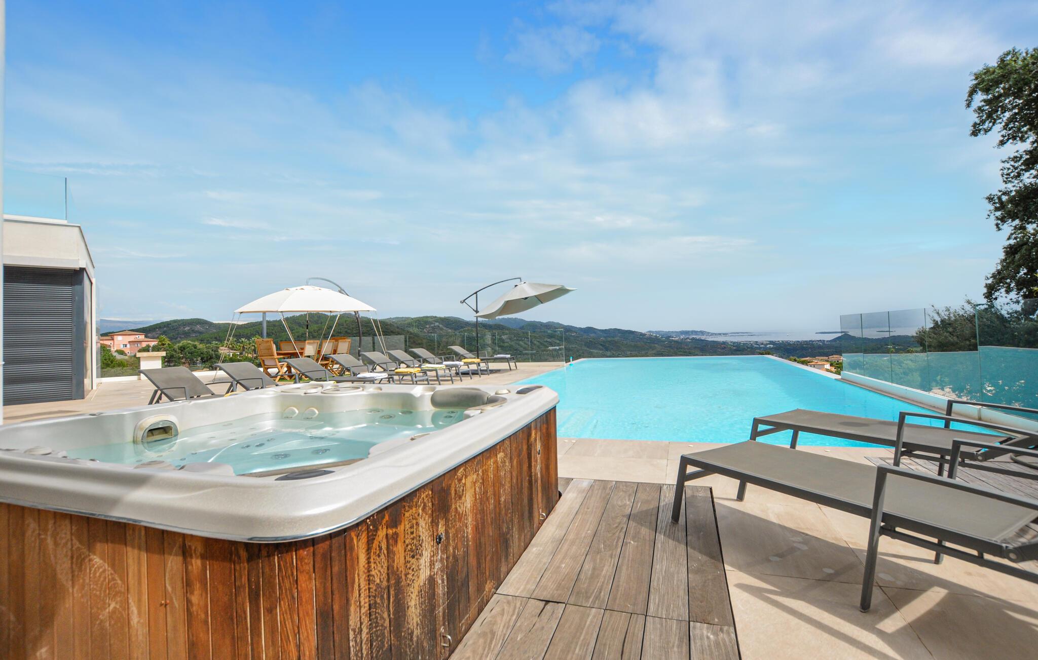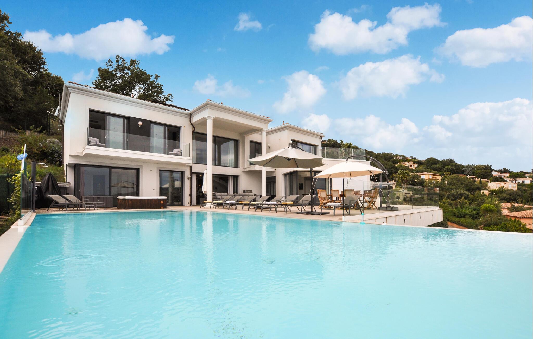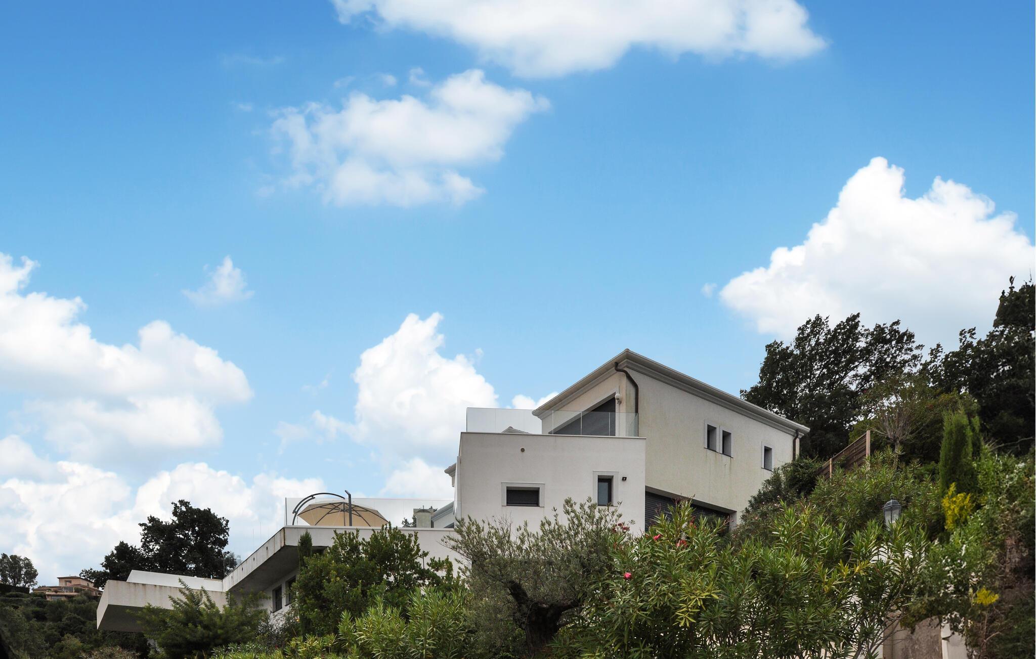 Vil I ikke undvære komfort på ferien? Så er dette moderne feriehus med havudsigt og pool det helt rigtige valg.