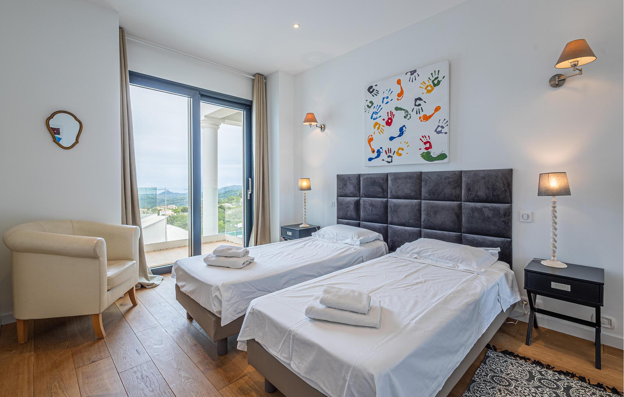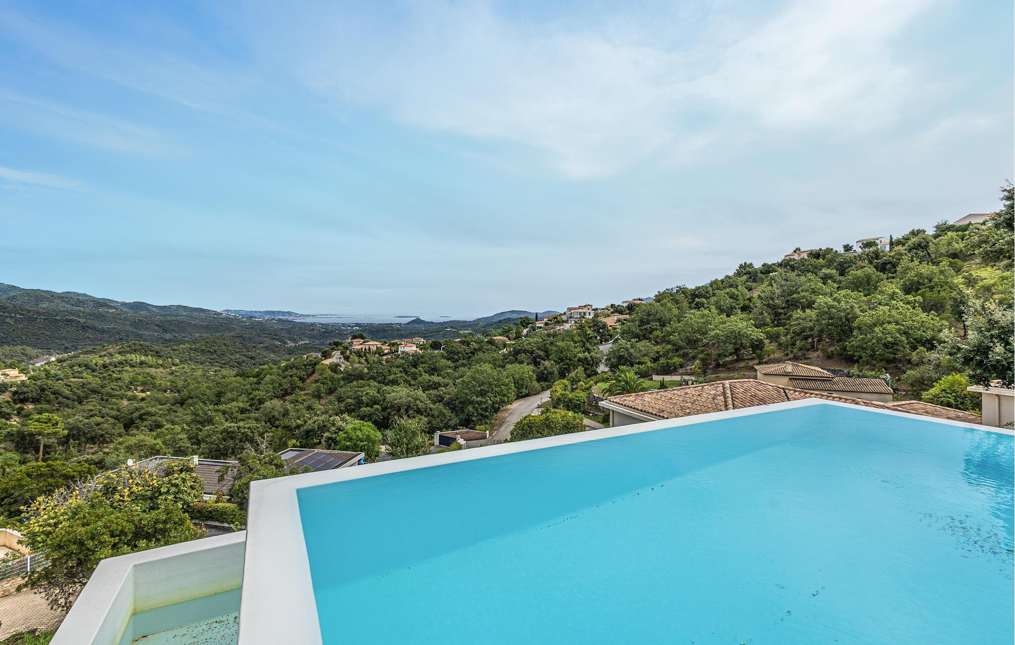 Det attraktive hus byder velkommen i en idyllisk beliggenhed. Takket være panoramavinduer fra gulv til loft kan I vågne op her om morgenen med en betagende udsigt over landskabet. De lyse, moderne og komfortabelt indrettede værelser sikrer, at I kan slappe af her og komme helt ned i gear. Efter en begivenhedsrig dag kan I føle jer godt tilpas med hele familien på de komfortable sofaer og nyde en afslappende tid. Slap af på ejendommen, som ligger malerisk indlejret i landskabet, og nyd solen og den fantastiske udsigt over de skovklædte bjergtoppe i behagelige liggestole. Poolen byder på en badesjov og nedkøling på de varmeste dage. Lad senere en dejlig feriedag slutte med lækker mad fra grillen i det fri.