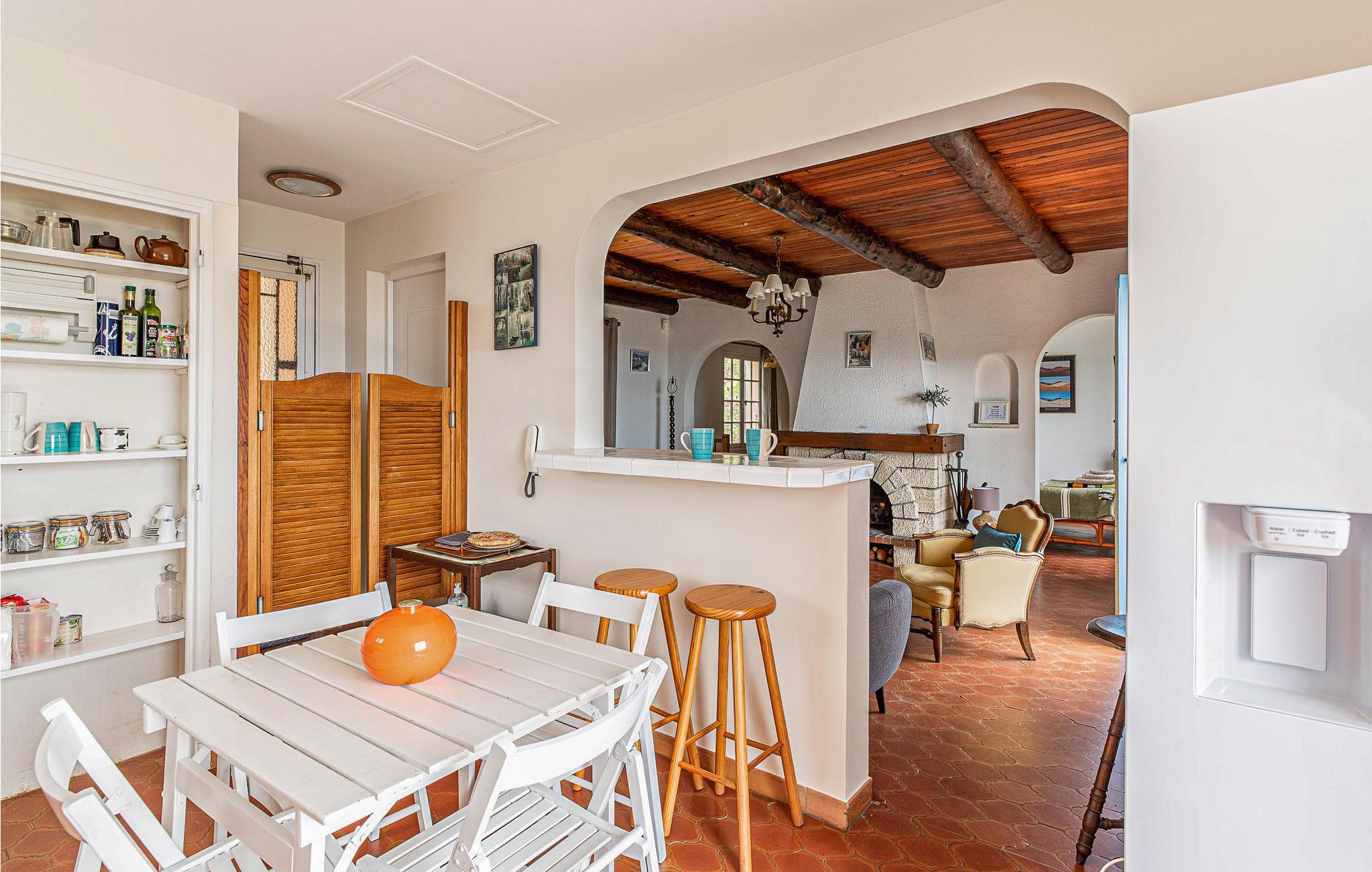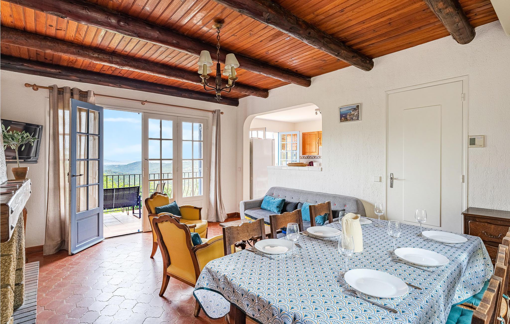 I dette attraktive feriehus, som byder velkommen i en fantastisk panoramisk beliggenhed, vil de, der søger fred og ro, føle sig hjemme fra dag ét. De indbydende lokaler, med skønne trælofter og hjemlige møbler, der giver et hyggeligt udtryk, byder jer og familien velkommen. Find jer godt til rette med jeres kære, nyd den vidunderlige udsigt, mens I spiser sammen og slapper af i sofaen og tilbring hyggelige aftener i godt selskab efter en begivenhedsrig dag.