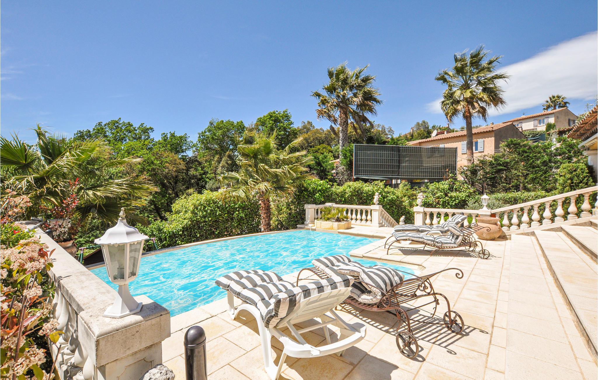Charmerende villa i udkanten af en dejlig lille by, ikke langt fra Lac de Saint-Cassien søn. Til husets elegante indretning hører bl.a. marmorgulve og lædersofaer. Huset er udstyret med klimaanlæg og i den store terrasse ligger den skønne overløbspool , omgivet af en skøn have. Huset ligger rigtigt godt ikke langt fra motorvejen, herfra kommer i hurtigt til rivieraen kun 15 km væk, med skønne fine sandstrande der indbyder til afslappede badedage. I nærheden af bjergbyen Fayence. Oplev også de mondæne byer Nice og Cannes, hvor I kan slentre langs havet.