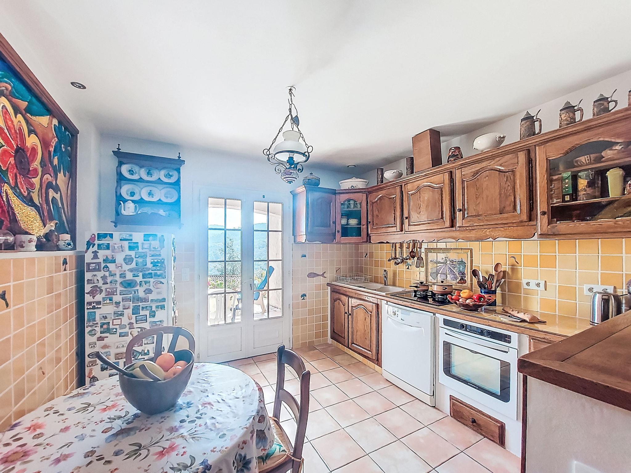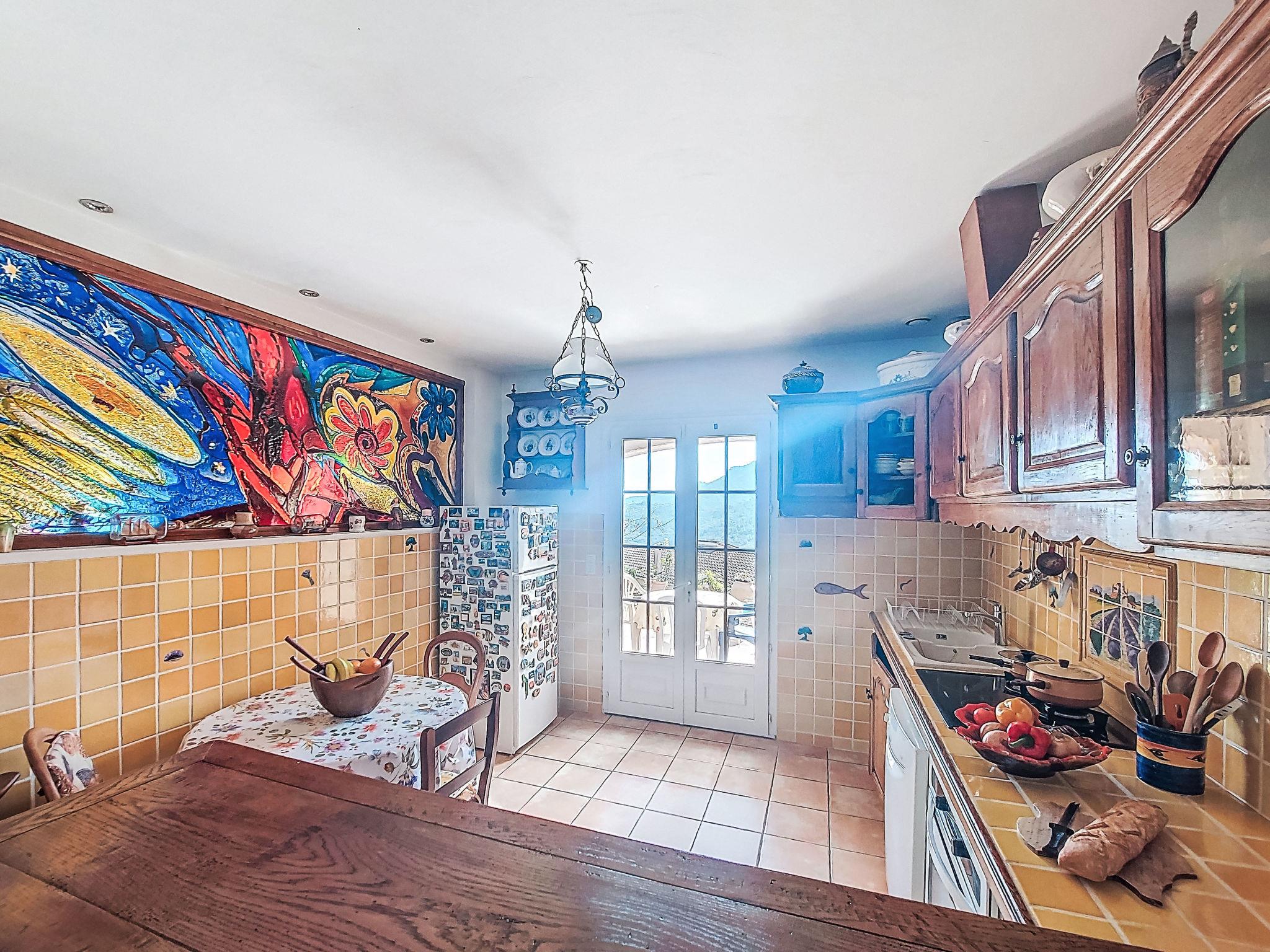 "L´Argentière", 4-room house 110 m2. Comfortable furnishings: living/dining room with open-hearth fireplace (only for decoration), TV and air conditioning. Exit to the terrace. 1 room with 1 french bed (140 cm, length 190 cm), shower/WC and air conditioning. 1 room with 1 double sofabed (140 cm, length 190 cm). 1 room with 1 bed (120 cm, length 190 cm). Kitchen (oven, dishwasher, 2 induction hot plates, 2 gas rings, toaster, kettle, microwave, freezer, electric coffee machine) with dining table. Exit to the terrace. Shower, sep. WC. Electric heating. Terrace 20 m2 partly roofed, south facing position. Terrace furniture. Beautiful panoramic view of the sea and the valley. Facilities: washing machine. Internet (WiFi, free). Parking (2 cars). Please note: not suitable for small children. Non-smokers only. Smoke alarm. Offer by a private individual according to Art. 155, IV of CGI. 83001000093OH