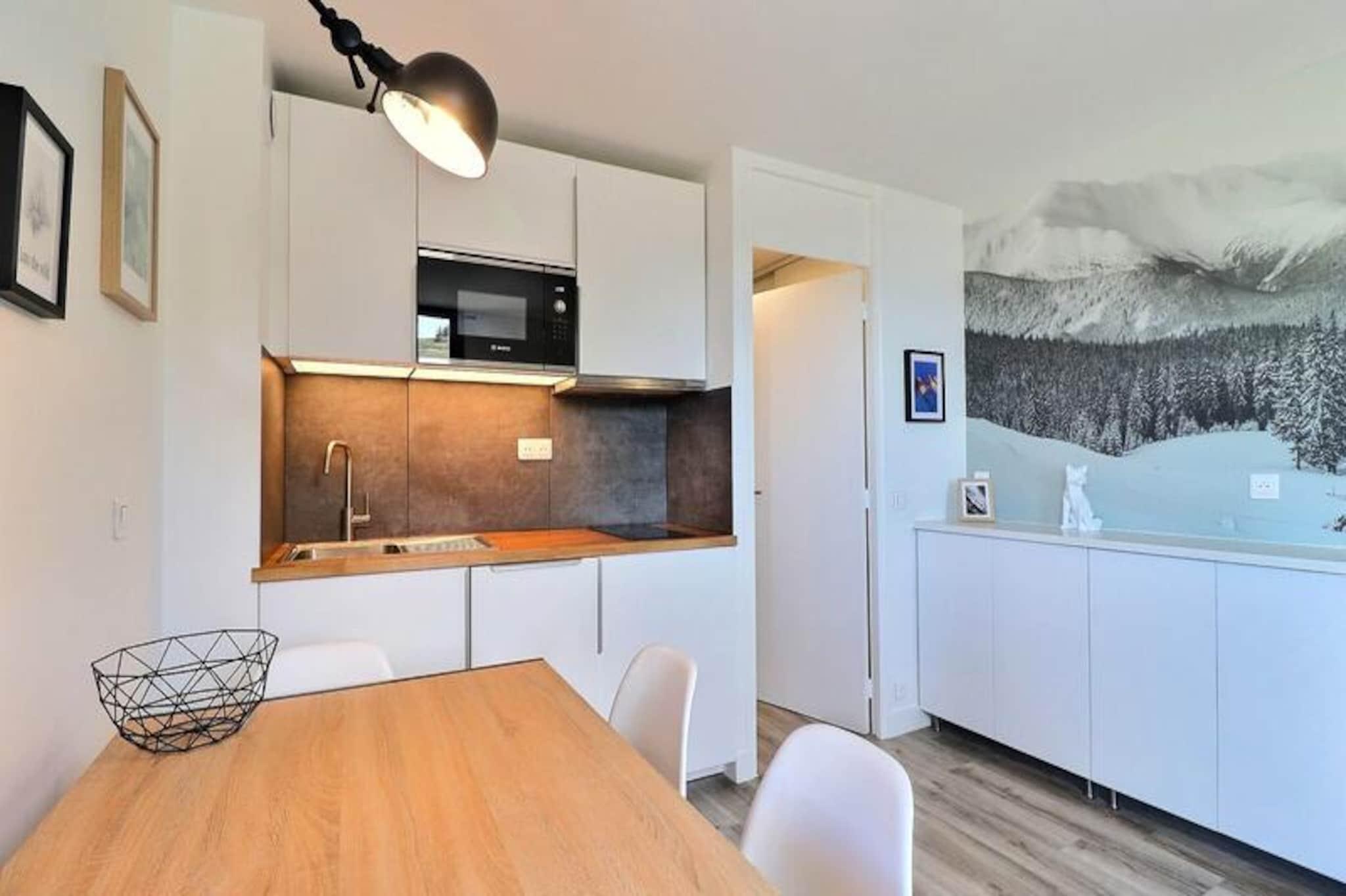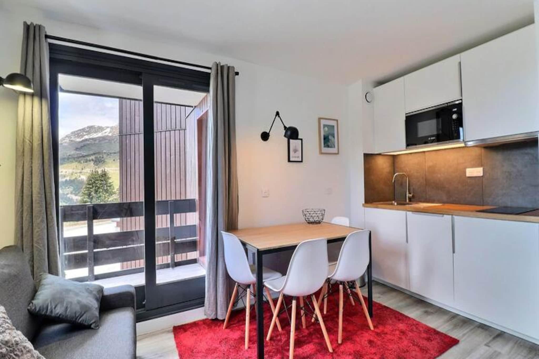 I den fredfyldte alpelandsby Le Laitelet tilbyder denne charmerende lejlighed i Creux de l'Ours-residensen et hyggeligt tilflugtssted for både skientusiaster og bjergentusiaster. Forestil dig at vågne op til frisk bjergluft og træde ud på din nordvendte balkon for at nyde de rolige omgivelser. Med direkte adgang til pisterne er eventyr kun få skridt væk, hvilket gør dette til den perfekte base for at udforske de sneklædte landskaber i de franske alper. Residensen er bekvemt placeret i nærheden af ??butikker og faciliteter, hvilket sikrer, at alt hvad du behøver er inden for rækkevidde. \n\nDenne omhyggeligt indrettede lejlighed er designet til op til fire gæster og har en komfortabel stue med en sovesofa til to og et separat soveværelse med to enkeltsenge. Køkkenet er udstyret med moderne bekvemmeligheder, herunder en kombineret mikrobølgeovn, keramiske kogeplader, opvaskemaskine og essentielle apparater som en kaffemaskine og brødrister, hvilket gør det nemt at tilberede solide måltider efter en dag på pisterne. Et fladskærms-tv og gratis Wi-Fi (afhængigt af tilgængelighed) bidrager til komforten, mens det separate badeværelse og toilet sikrer praktisk anvendelighed for alle gæster. \n\nBeliggenheden er ideel for dem, der søger både eventyr og afslapning. Adgang til pisterne er ubesværet – du skal blot gå til skiboksene og krydse pladsen for at nå den grønne Perdrix-piste, der fører til skiliftens hovedafgangssted. Chalets-svævebanen, der kører fra tidlig morgen til sen aften, tilbyder gratis og bekvem transport til at udforske Le Hameau- og Le Laitelet-områderne. \n\nUanset om du er her for at kæmpe dig gennem frisk puddersne eller nyde den fredelige alpine atmosfære, tilbyder denne bolig en indbydende og veludstyret base for din bjergferie. Med sin uovertrufne beliggenhed og hyggelige faciliteter lover den et mindeværdigt ophold i hjertet af de franske alper.