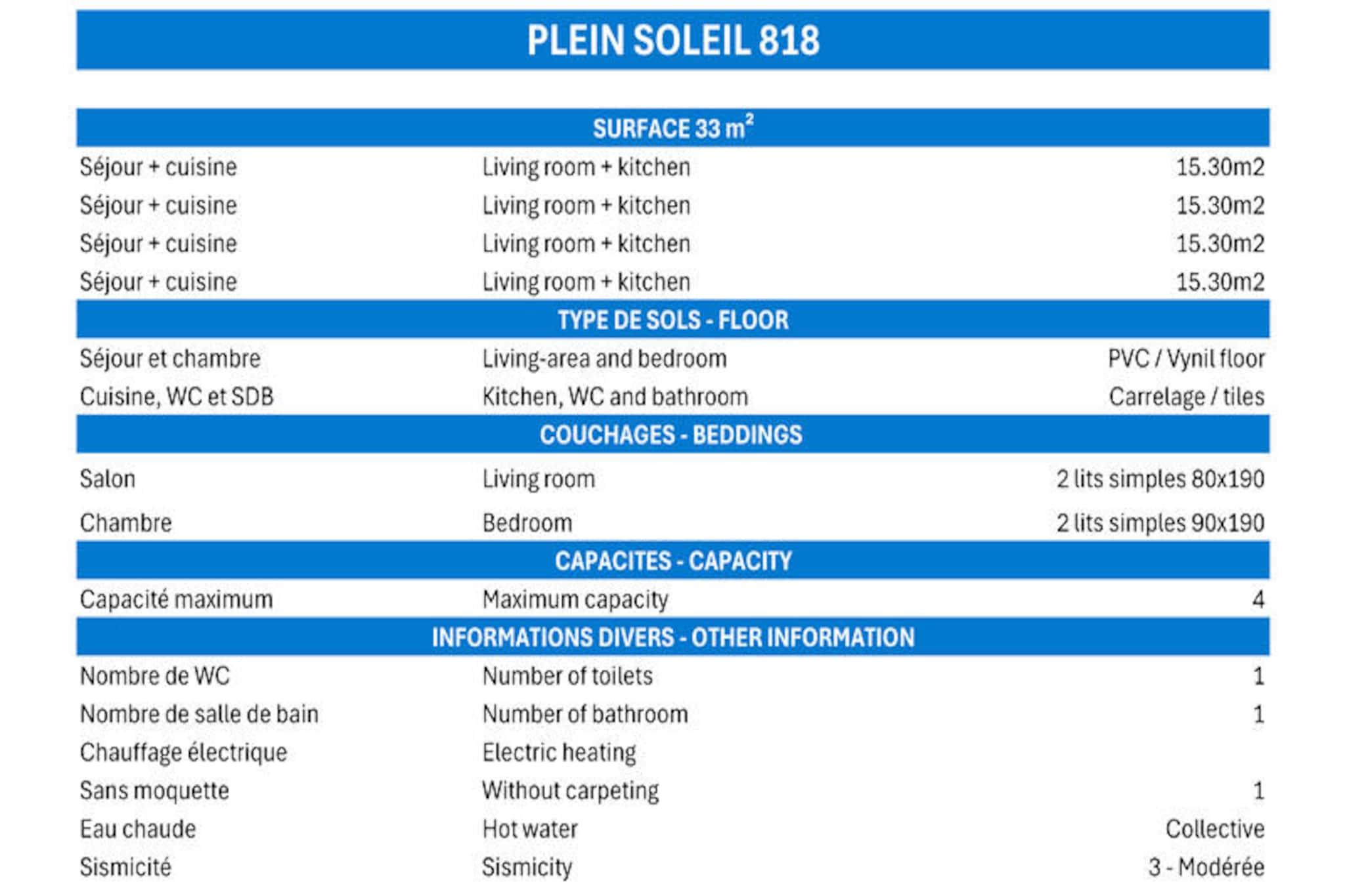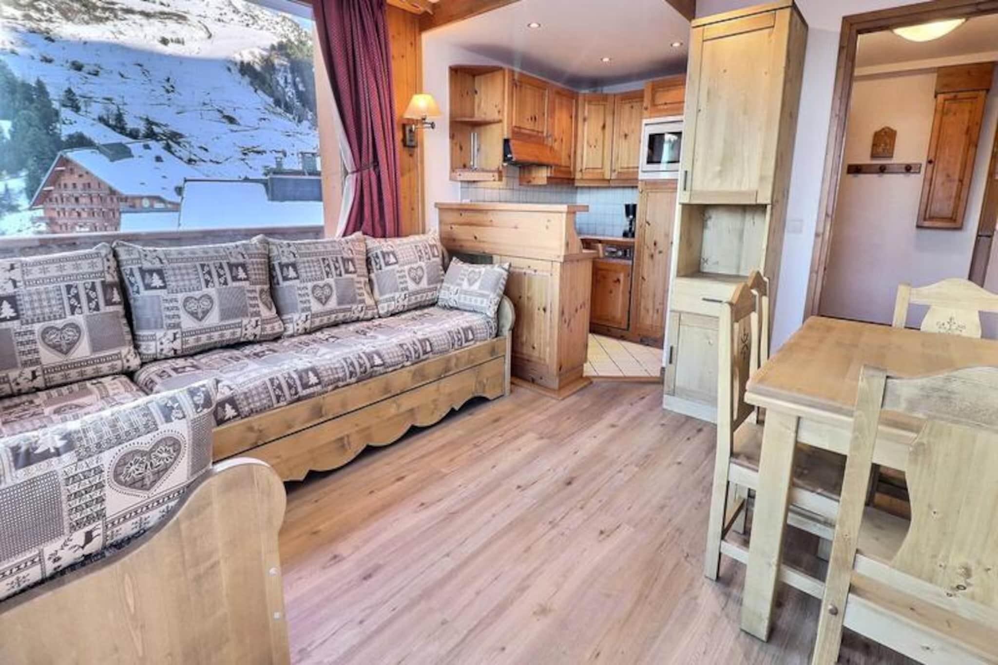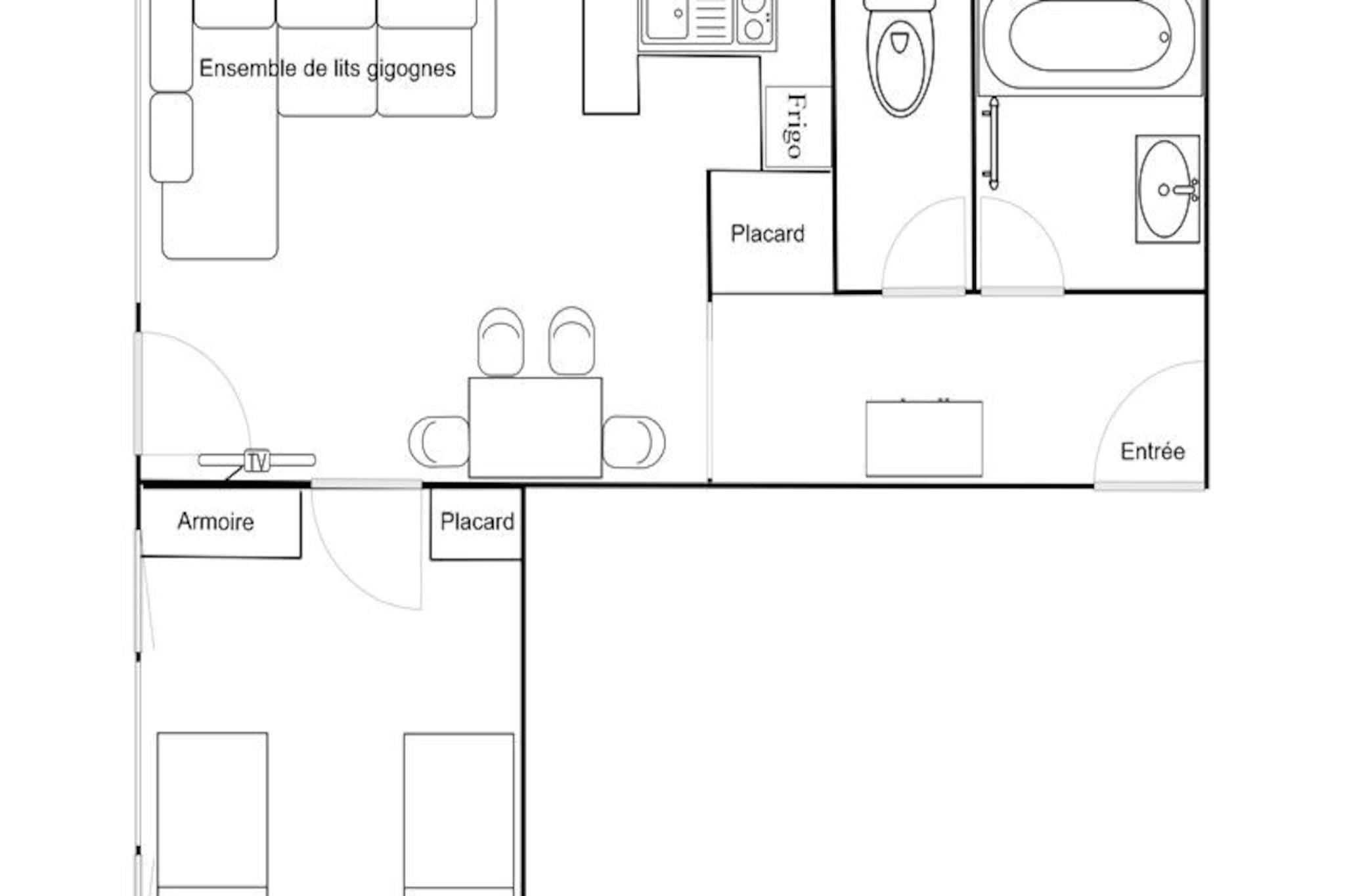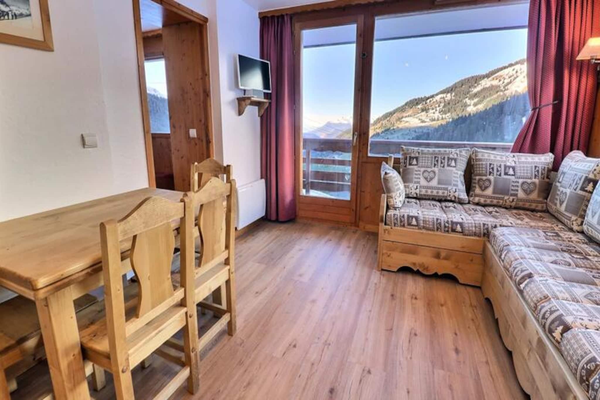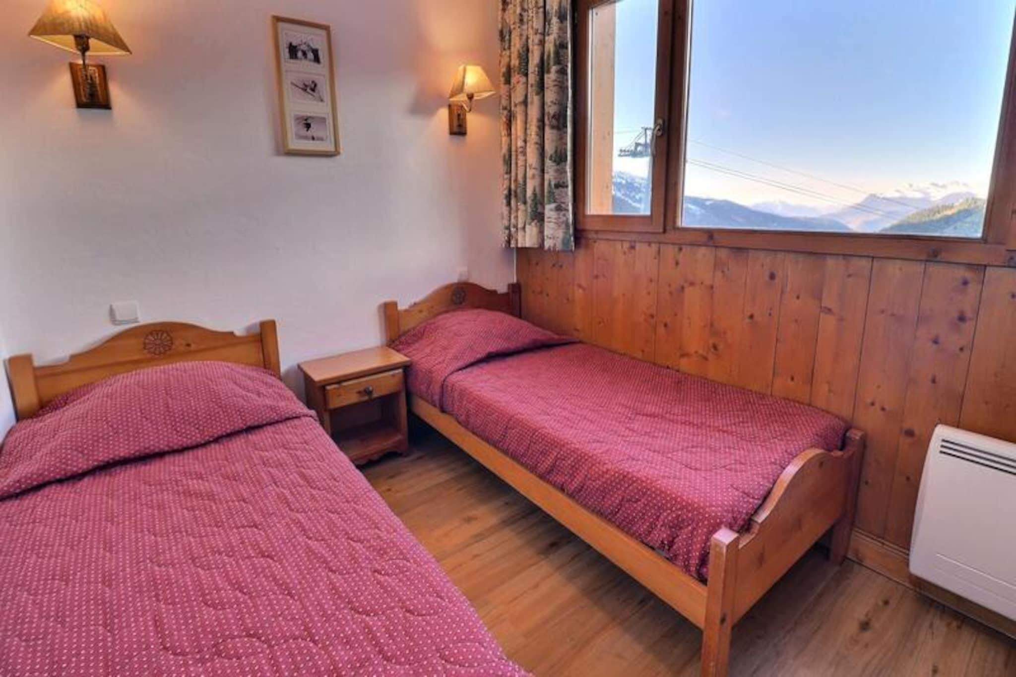 Højt over den fortryllende dal Méribel tilbyder denne hyggelige lejlighed i Plein Soleil-residensen et perfekt alpint tilflugtssted for dem, der søger både eventyr og afslapning. Med sin førsteklasses beliggenhed direkte på pisterne kan du træde ud af skiboksene og glide direkte ind i den uberørte sne, hvilket gør den til et ideelt valg for skientusiaster. Det omkringliggende landskab med sine majestætiske tinder og fredfyldte skove sætter tonen for en uforglemmelig bjergferie. \n\nLejligheden er designet til at rumme op til fire gæster og har en gennemtænkt planløsning, der balancerer komfort og praktisk anvendelighed. Stuen har et sæt udtrækssenge, mens soveværelset har to enkeltsenge, der sikrer afslappende nætter efter aktive dage. Tekøkkenet, der er udstyret med moderne apparater såsom en kombineret mikrobølgeovn, keramiske kogeplader og en opvaskemaskine, er perfekt til at tilberede solide måltider til at nyde i den hyggelige spisestue. En nord- og østvendt balkon inviterer dig til at nyde den friske alpine luft og beundre den fantastiske udsigt. Yderligere faciliteter inkluderer et fladskærms-tv og gratis Wi-Fi i opholdsstuen, hvilket sikrer bekvemmelighed og underholdning under hele dit ophold. \n\nPlein Soleil-residensen er ideelt beliggende nær butikkerne i centrum af Mottaret, hvilket giver nem adgang til lokale spisesteder og afterski-muligheder. Chalets-svævebanen, der kører fra tidlig morgen til sen aften, tilbyder gratis adgang til Hameau- og Laitelet-områderne, hvilket gør udforskningen ubesværet. Uanset om du står på ski, vandrer eller blot nyder charmen ved Méribel, er alt hvad du behøver kun få skridt væk. \n\nDenne dejlige lejlighed kombinerer det bedste fra alpinlivet med moderne komfort og skaber et indbydende paradis til din næste bjergferie. Oplev Méribels magi og skab minder for livet.
