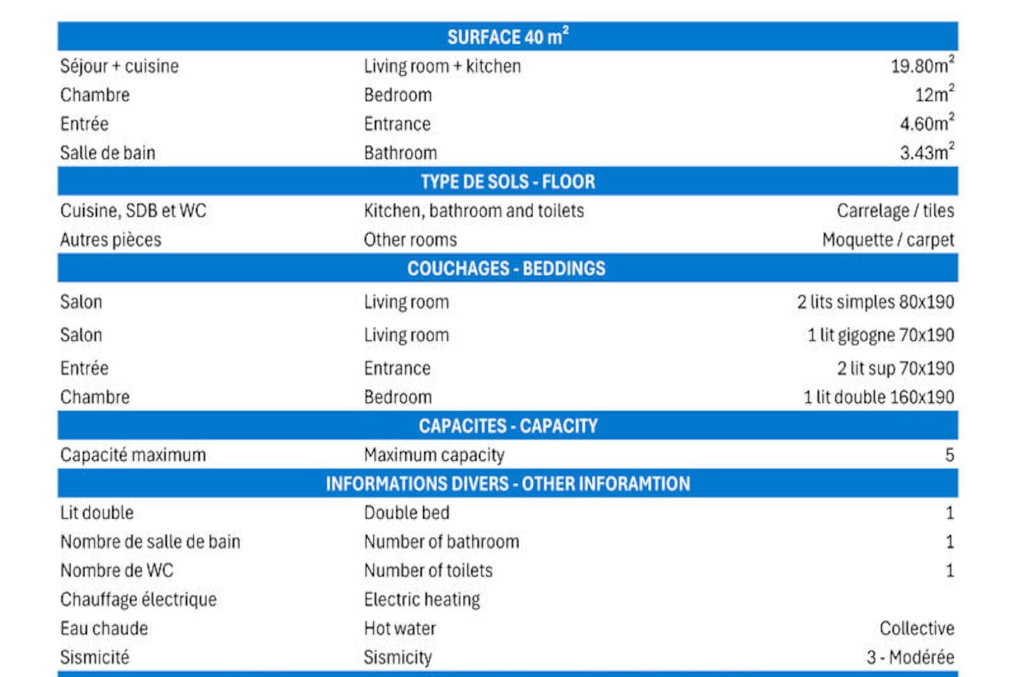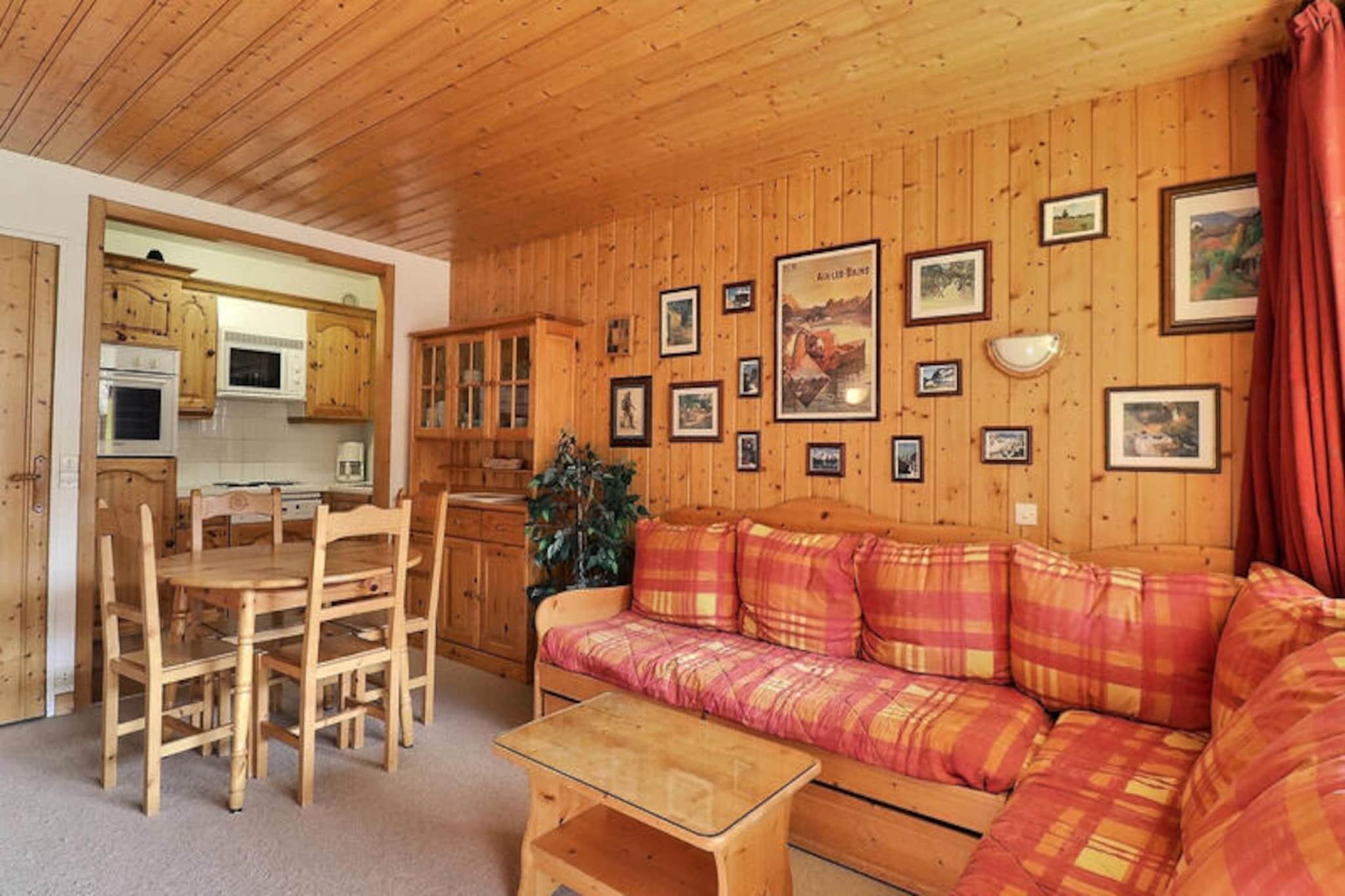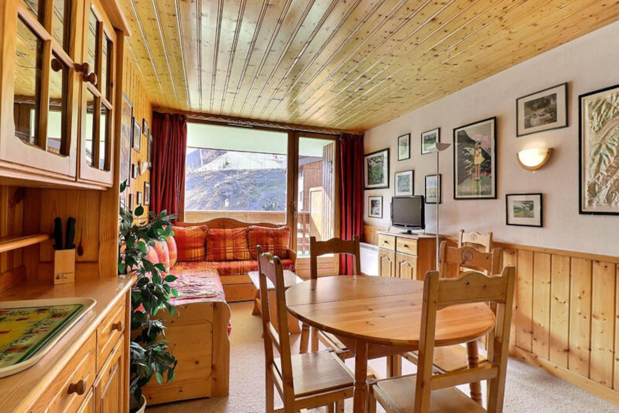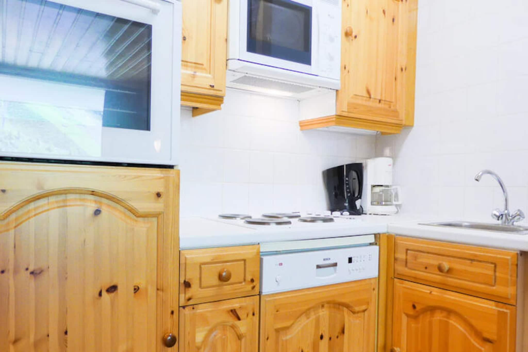 Højt over Mottarets fortryllende pister tilbyder denne indbydende lejlighed i Plein Soleil-residensen et hyggeligt tilflugtssted for både skientusiaster og naturelskere. Forestil dig at vågne op til den friske bjergluft, træde ud på din sydvendte balkon for at nyde den alpine udsigt og gå direkte ud på pisterne fra skiboksene - du behøver ikke at slæbe dit udstyr langt. Med direkte adgang til Chalets-svævebanen, der kører fra tidlig morgen til sen aften, har det aldrig været nemmere at udforske Hameau- og Laitelet-områderne. Dette er din port til den uberørte skønhed i de franske alper. \n\nLejligheden er designet til op til fem gæster og har en gennemtænkt planløsning med en komfortabel stue udstyret med udtrækssenge og en enkelt sovesofa, et roligt nordvendt soveværelse med en dobbeltseng og en alkove med køjesenge for ekstra fleksibilitet. Tekøkkenet er fuldt udstyret med moderne apparater, herunder ovn, mikrobølgeovn, opvaskemaskine og fornødenheder som kaffemaskine og elkedel, hvilket gør det nemt at tilberede måltider efter en dag med eventyr. Badeværelset og det separate toilet giver ekstra komfort, mens fladskærms-tv'et og den gratis Wi-Fi i opholdsstuen sikrer afslapning og underholdning under dit ophold.\n\nPlein Soleil-residensen ligger i hjertet af Mottaret og er perfekt placeret i nærheden af ??butikker og lokale faciliteter, hvilket gør det nemt at fylde op med de nødvendige ting eller nyde en afslappet aftentur. Uanset om du er her for at stå på ski på verdensklasse-pister eller udforske de betagende vandrestier om sommeren, placerer denne ejendom dig i centrum af det hele.\n\nMed sit røgfri og kæledyrsfri miljø garanterer denne charmerende lejlighed et fredeligt og behageligt ophold. Kom og oplev bjergenes magi, hvor hver dag er fyldt med eventyr og uforglemmelige øjeblikke.