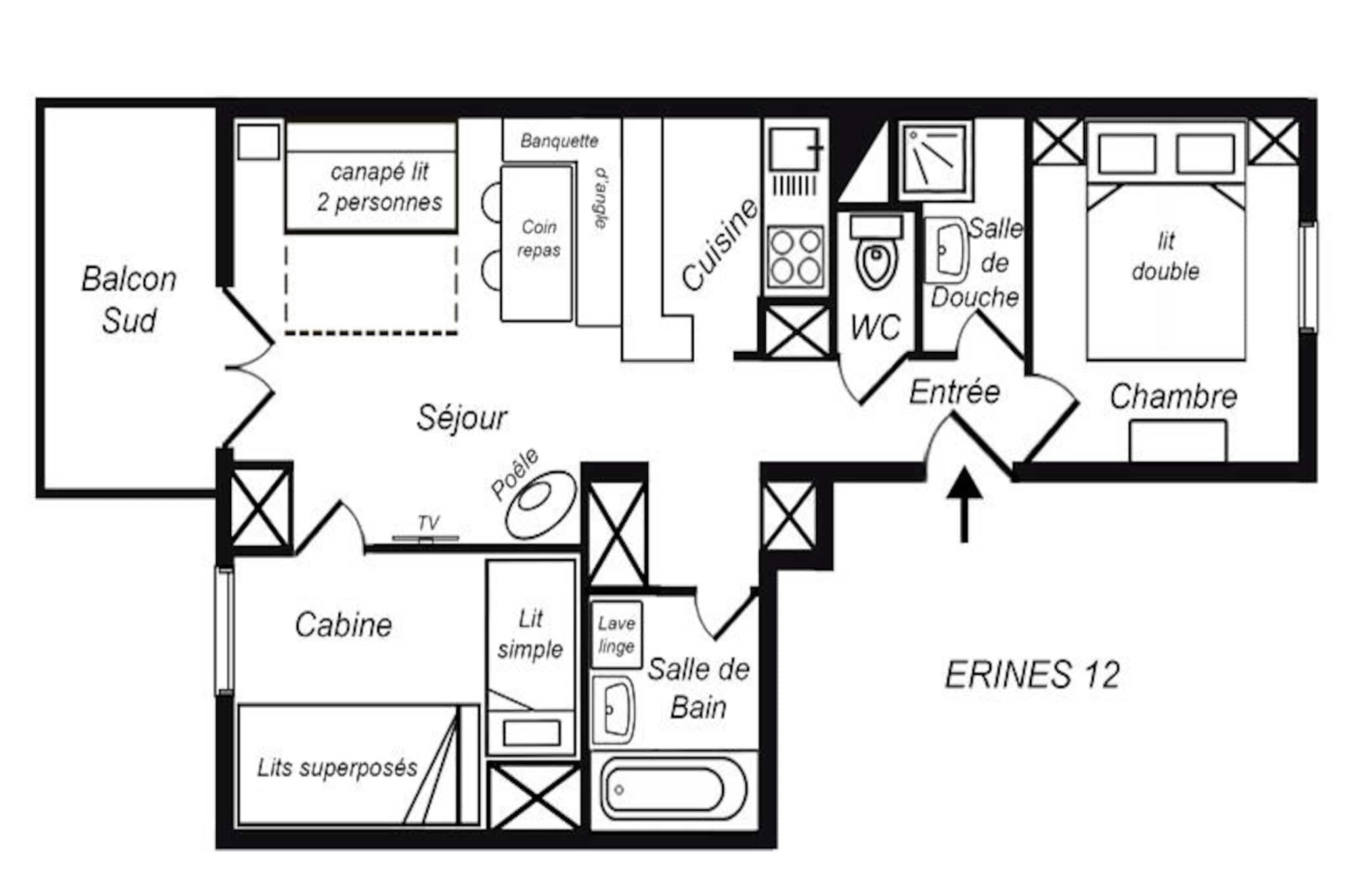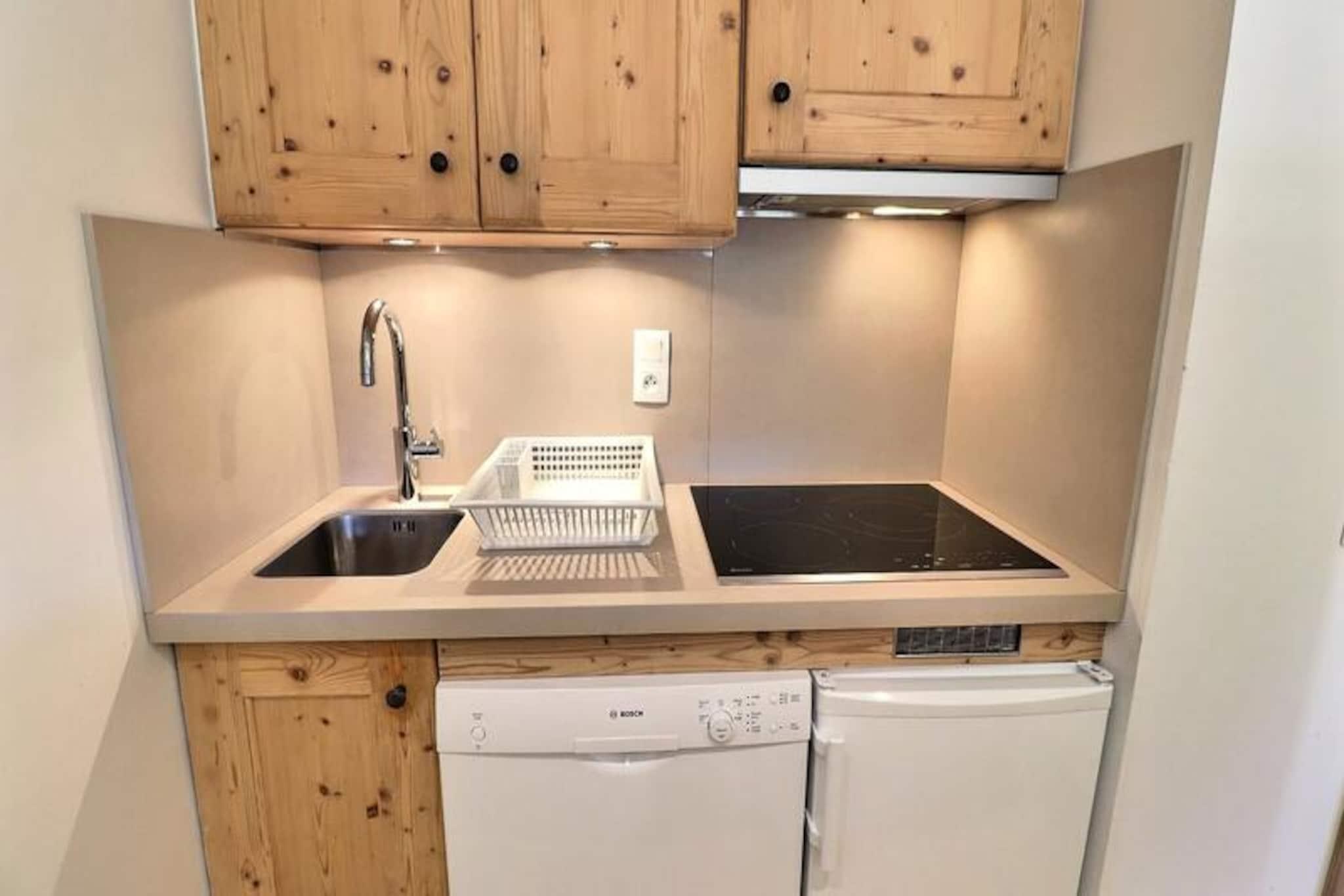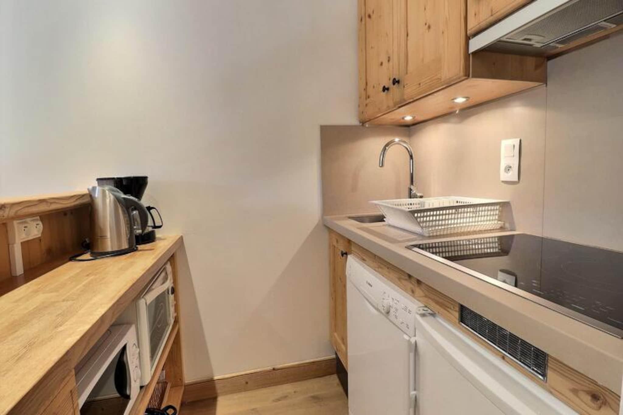 Højt over de glitrende skråninger i Méribel-Mottaret tilbyder dette charmerende alpine tilflugtssted en perfekt blanding af komfort og bekvemmelighed til din bjergferie. Forestil dig at vågne op til en betagende udsigt fra din sydvendte balkon, nippe til kaffe, mens solen står op over de snedækkede tinder. Med direkte adgang til skisportssteder lige fra boligen venter eventyr kun få skridt fra din dør, hvilket gør det til et ideelt valg for både vintersportsentusiaster og naturelskere. Uanset om du er her for at grave dig gennem frisk puddersne eller udforske naturskønne stier, føles hvert øjeblik som en fejring af den store natur. \n\nIndenfor er boligen omhyggeligt designet til at rumme op til seks gæster på tværs af dens 45 m² store areal. Den hyggelige stue har en spiseplads, en lounge med en dobbelt sovesofa og en brændeovn, der tilføjer et strejf af rustik charme (brænde medfølger ikke). Tekøkkenet er fuldt udstyret med moderne apparater, herunder køleskab, opvaskemaskine, induktionskogeplader, miniovn, mikrobølgeovn og mere, hvilket gør det nemt at tilberede måltider efter en dag på pisterne. To indbydende soveværelser tilbyder fleksible sovemuligheder – en dobbeltseng i det ene og en kombination af køjesenge og en enkeltseng i det andet – hvilket sikrer en afslappende nats søvn for alle. Yderligere faciliteter inkluderer et fladskærms-tv, gratis internetadgang (forbindelse afhængigt af operatørens tilgængelighed) og en vaskemaskine for ekstra bekvemmelighed.\n\nBeliggende kun 500 meter fra Mottaret indkøbscenter, tilgængelig via trapper eller svævebane, finder du alt hvad du behøver inden for rækkevidde. Fra skiudlejning og afterskiing-steder til charmerende butikker og lokale spisesteder summer landsbyen af ??liv og alpin charme. Om sommeren forvandles området til et paradis for vandrere og cyklister, med frodige stier og panoramaudsigt, der venter på at blive udforsket.\n\nUanset om du søger spændende skidage, rolige aftener ved brændeovnen eller uforglemmelige øjeblikke omgivet af de franske alpers skønhed, inviterer denne bolig dig til at skabe varige minder i et af regionens mest maleriske omgivelser.