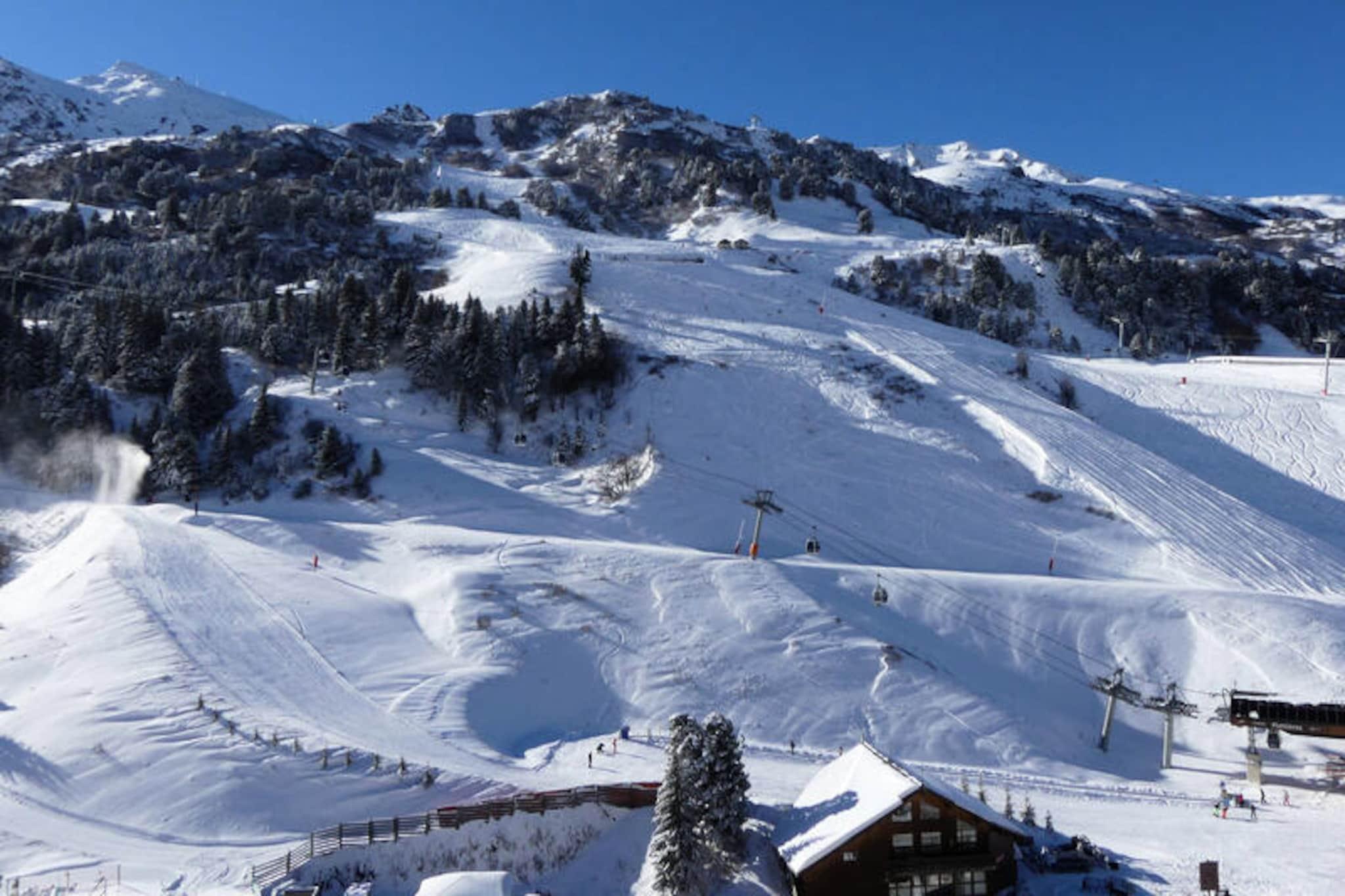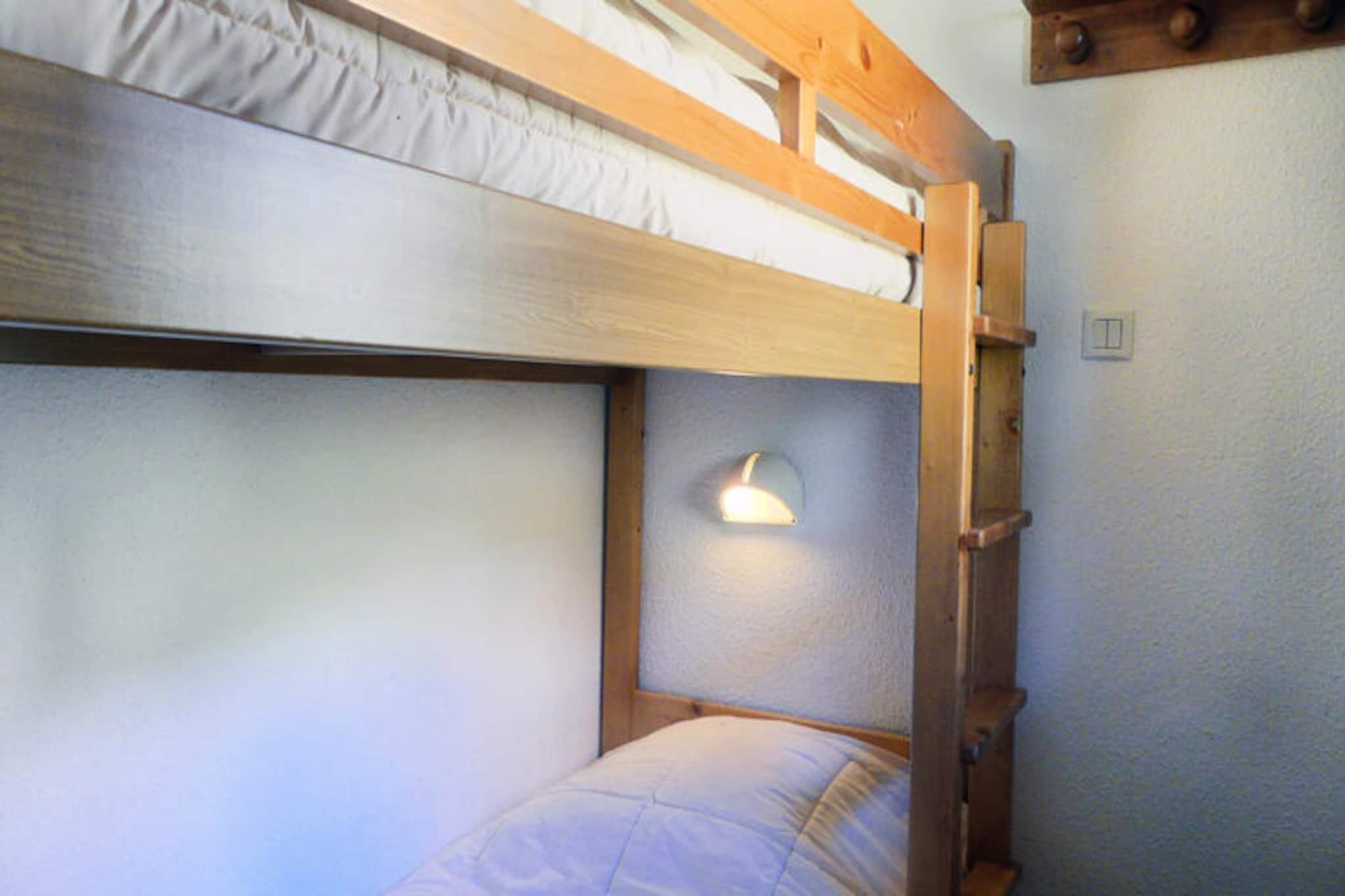 Højt over det travle indkøbscenter Chatelet inviterer denne charmerende alpine duplex dig til at opleve magien ved Méribel i hjertet af de franske alper. Med sin førsteklasses beliggenhed ved foden af ??pisterne begynder dit vintereventyr kun få skridt væk. Uanset om du er en erfaren skiløber eller en familie, der søger sjov i sneen, gør det nærliggende ESF-mødested og Piou-Piou-børnehaven denne bolig ideel for alle aldre. Når solen går ned, tilbyder den vestvendte balkon et roligt tilflugtssted, hvor man kan nyde udsigten over bjergene og reflektere over dagens eventyr. \n\nDenne hyggelige duplex med to værelser er designet til komfortabelt at rumme op til seks gæster og har en gennemtænkt planløsning, der blander praktisk sans og alpin charme. Stuen har en sovesofa og udtrækssenge, mens en separat kahyt har køjesenge til de yngre gæster. Ovenpå sikrer et privat soveværelse med en dobbeltseng en afslappende nat. Tekøkkenet er udstyret med moderne apparater, herunder en mikrobølgeovn med grill, køleskab, opvaskemaskine og keramiske kogeplader, hvilket gør madlavning til en leg. Et fladskærms-tv bidrager til komforten, mens den stejle trappe, der fører til øverste etage, tilføjer et strejf af rustik karakter. \n\nUd over boligen tilbyder det pulserende Chatelet-område nem adgang til butikker, restauranter og et shuttlebusstoppested kun 100 meter væk. Om vinteren er pisterne din legeplads, mens sommeren forvandler regionen til et paradis for vandrere og naturelskere. Udforsk de betagende stier, oplev det lokale dyreliv, eller slap blot af i den alpine luft. \n\nUanset om du søger spændende nedkørsler eller rolige øjeblikke, er denne bolig din port til uforglemmelige minder i Méribel. Lad charmen ved de franske alper fange dit hjerte og skab en ferieoplevelse, du vil værdsætte for evigt.