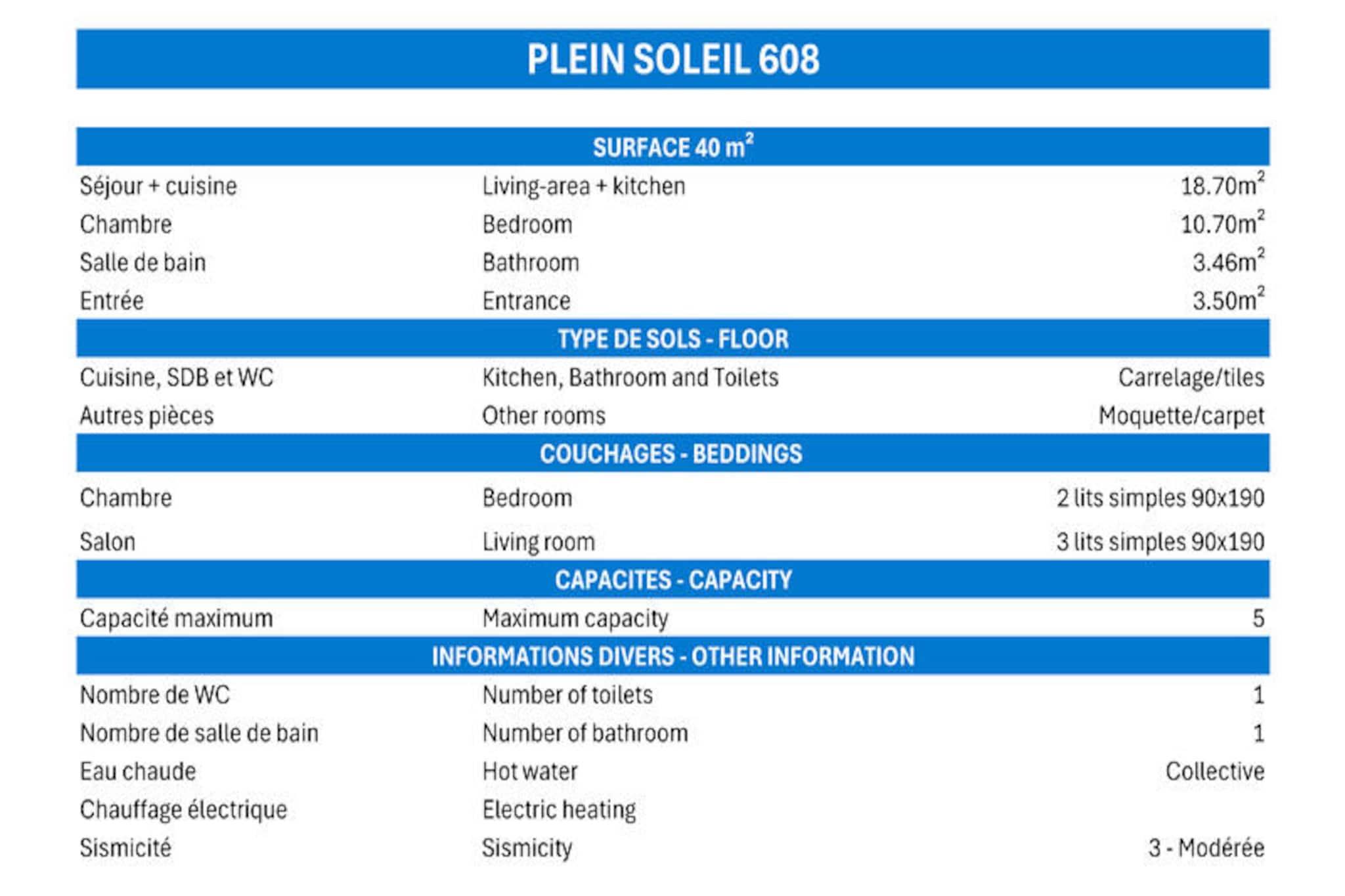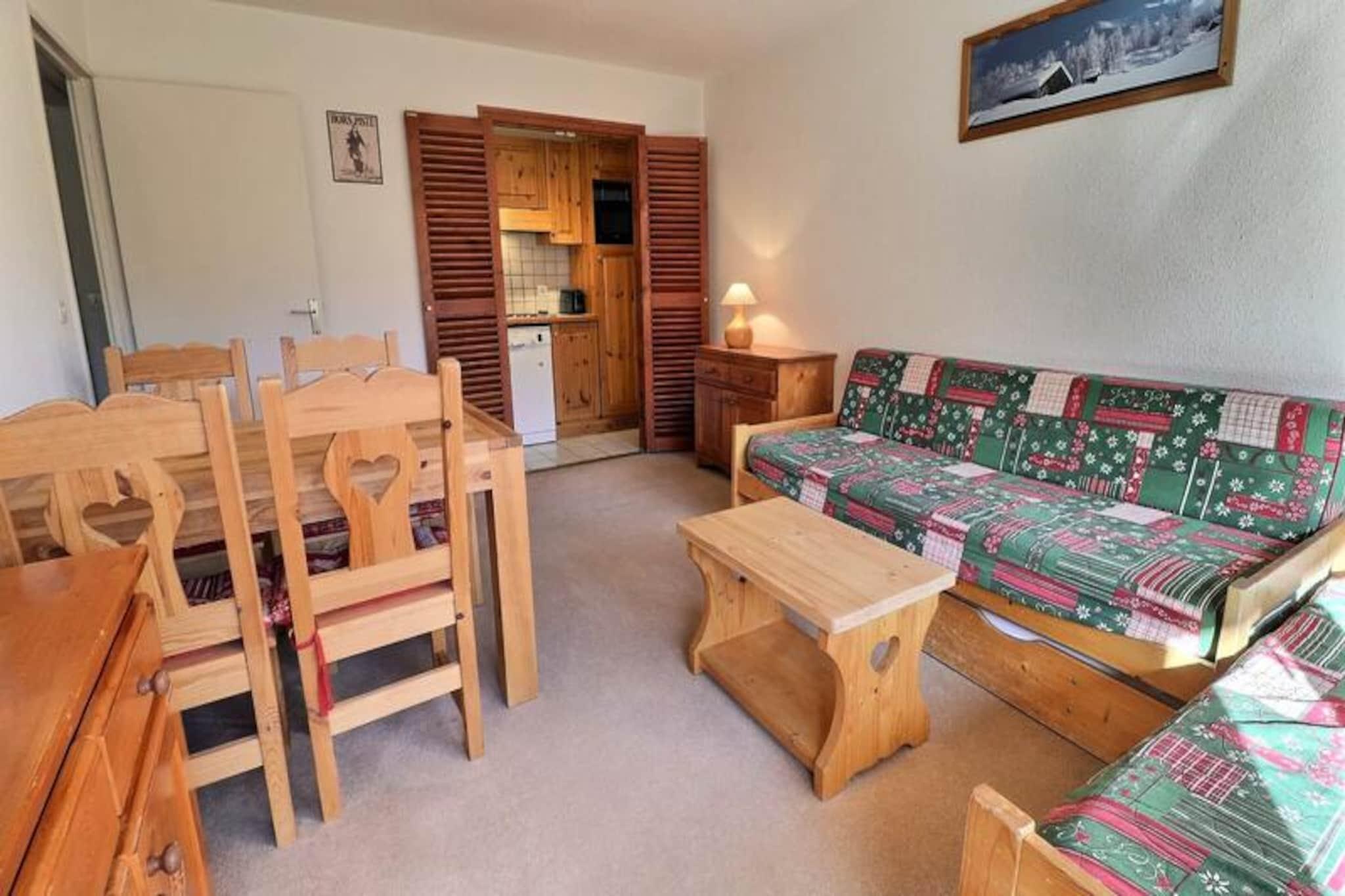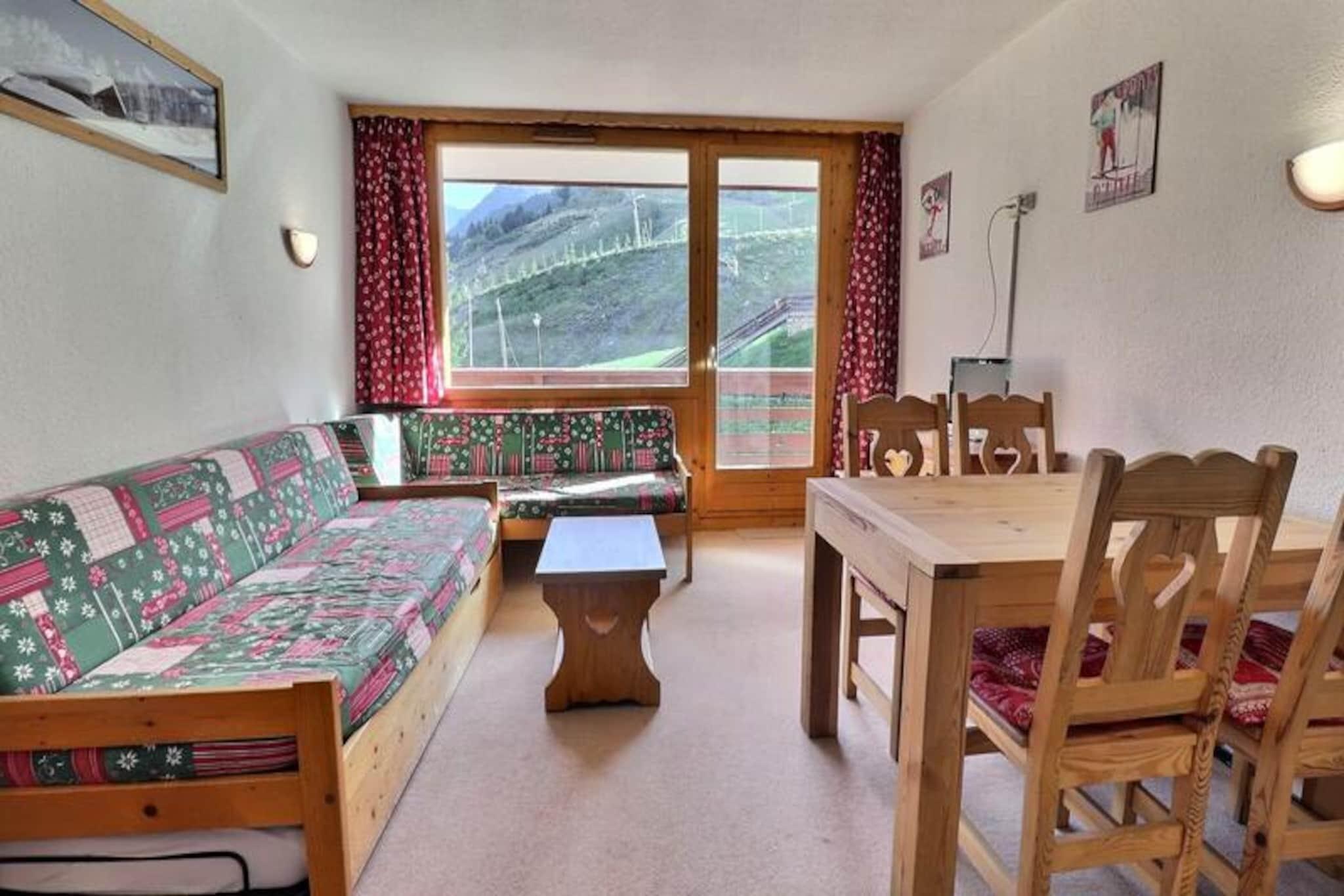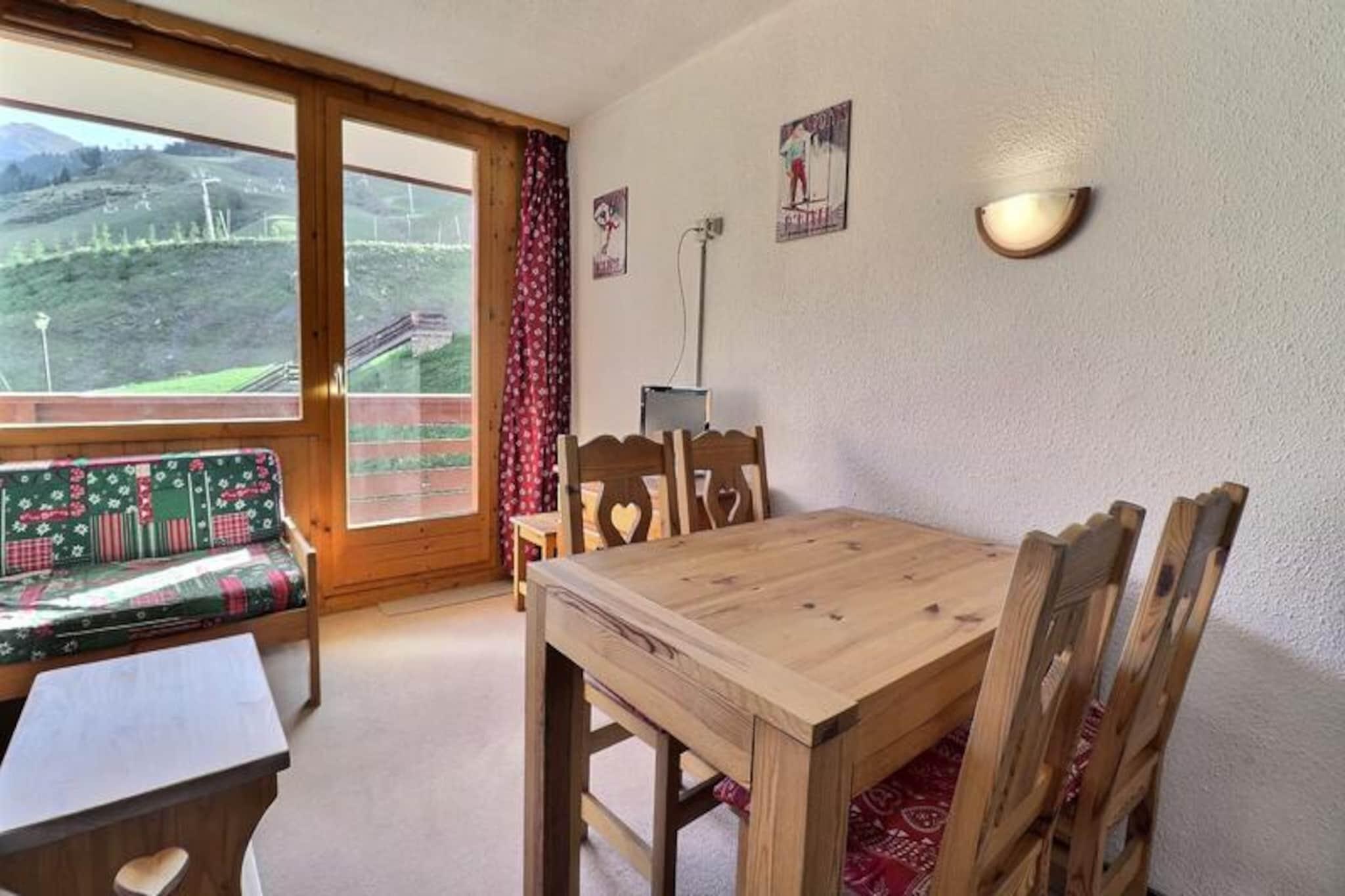 Højt over de maleriske skråninger i Méribel-Mottaret tilbyder dette charmerende alpine tilflugtssted en førsteplads i hjertet af de franske alper. Med sin misundelsesværdige ski-in, ski-out beliggenhed giver Plein Soleil-residensen dig mulighed for at træde direkte ud på pisterne fra skiboksene og fordybe dig i bjergenes spænding fra det øjeblik, du ankommer. Den sydvendte balkon inviterer dig til at nyde solskinnet og panoramaudsigten og skaber den perfekte kulisse for din alpine flugt. \n\nDenne hyggelige, men rummelige lejlighed på 40 m² er designet til op til fem gæster og har en gennemtænkt planløsning. Stuen indeholder en udtrækssenge og en sovesofa, mens det separate soveværelse tilbyder to komfortable enkeltsenge. Et veludstyret tekøkken med en kombineret mikrobølgeovn, køleskab, opvaskemaskine og essentielle apparater sikrer, at du har alt, hvad du behøver for at tilberede solide måltider efter en dag på pisterne. Moderne bekvemmeligheder såsom et fladskærms-tv og gratis Wi-Fi i residensens lounge bidrager til bekvemmeligheden og komforten under dit ophold. \n\nBeliggende i Mottarets pulserende centrum, kun få skridt fra butikker, restauranter og afterski-aktiviteter. Chalets-svævebanen, med gratis adgang fra tidlig morgen til sen aften, forbinder dig ubesværet til Hameau- og Laitelet-områderne, hvilket gør det nemt at udforske det vidtstrakte skiområde Les Trois Vallées. Uanset om du er en erfaren skiløber eller en førstegangsbesøgende, placerer denne beliggenhed dig i hjertet af en af ??verdens mest berømte skidestinationer. \n\nMed sin uovertrufne beliggenhed, varme atmosfære og moderne bekvemmeligheder er denne lejlighed det perfekte valg for familier, venner eller par, der søger en uforglemmelig alpin ferie. Lad magien i Méribel-Mottaret fortrylle dig, mens du skaber dyrebare minder i dette idylliske bjergparadis.