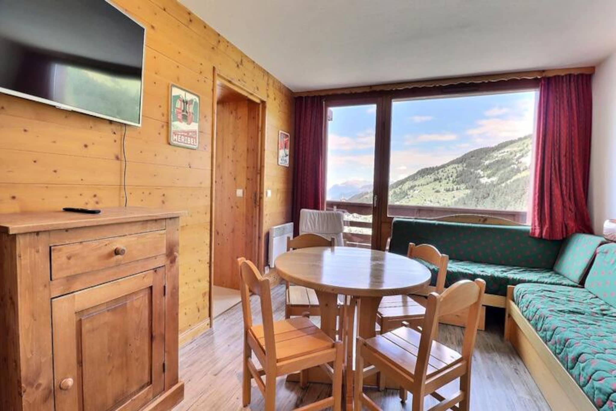 Højt over Méribels maleriske skråninger tilbyder denne charmerende lejlighed i Plein Soleil-residensen et hyggeligt tilflugtssted for både skientusiaster og naturelskere. Med sin førsteklasses beliggenhed i hjertet af Mottaret er du omgivet af betagende alpine landskaber og bekvemmeligheden ved butikker og restauranter kun få skridt væk. Forestil dig at vågne op til den friske bjergluft, klæde dig på i skiboksene og træde direkte ud på pisterne til en dag med eventyr i det verdensberømte skiområde Les Trois Vallées. \n\nDenne lejlighed på 33 m² er designet til at rumme op til fire gæster og kombinerer komfort og funktionalitet. Stuen har to enkeltsofaer, mens soveværelset tilbyder to ekstra enkeltsenge, hvilket gør den ideel til familier eller små grupper. Køkkenet er fuldt udstyret med moderne apparater, herunder ovn, køleskab, opvaskemaskine og kaffemaskine, hvilket sikrer, at du har alt, hvad du behøver for at tilberede solide måltider efter en dag på pisterne. En nordvendt balkon giver et roligt sted at slappe af og nyde udsigten, mens faciliteter som fladskærms-tv, gratis Wi-Fi og vaskemaskine bidrager til bekvemmeligheden under dit ophold. \n\nResidensen kan prale af fremragende adgang til Chalets-svævebanen, som nemt forbinder dig med Hameau- og Laitelet-områderne. Denne gratis service, der er åben fra tidlig morgen til sen aften, gør det nemt at udforske regionen. Uanset om du er her for de spændende skiløjper, naturskønne vandrestier eller blot for at slappe af i de franske alpers rolige skønhed, er denne lejlighed perfekt placeret til at gøre din ferie uforglemmelig. \n\nVælg Plein Soleil-residensen for dens uovertrufne beliggenhed, charmerende atmosfære og gennemtænkte faciliteter. Uanset om du søger eventyr eller ro, lover dette alpine paradis minder for livet.