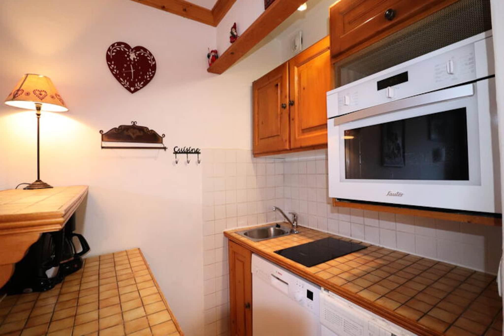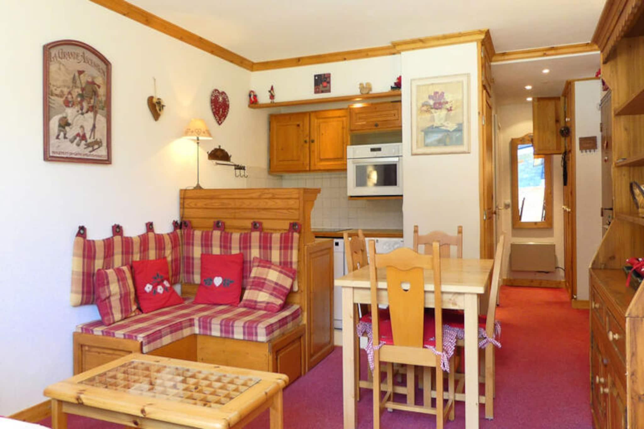 Højt over den maleriske landsby Mottaret tilbyder denne hyggelige studiohytte i Plein Soleil-residensen en ægte ski-in, ski-out-oplevelse for dem, der søger den ultimative alpine ferie. Forestil dig at træde ud af døren, spænde skiene på og glide direkte ud på de uberørte pister i Les Trois Vallées, et af verdens største skiområder. Fra den sydvendte altan kan du nyde solens varme, mens du beundrer den betagende udsigt over de snedækkede bjergtoppe og det livlige landsbyliv nedenfor. Denne charmerende 27 m² store studiolejlighed er designet til op til fire gæster og kombinerer komfort og funktionalitet. Stuen har et sæt udtrækssenge, mens det hyggelige kabineområde har køjesenge, der er perfekte til familier eller små grupper af venner. Det veludstyrede tekøkken har moderne apparater såsom en kombineret mikrobølgeovn, induktionskogeplader, opvaskemaskine og endda en Nespresso-kaffemaskine til din morgenespresso. Efter en dag på pisterne kan du slappe af i den indbydende stue med fladskærms-tv og gratis wi-fi eller nyde et fredeligt øjeblik på altanen. Boligen er røgfri og kæledyrfri, hvilket sikrer et rent og roligt miljø under hele dit ophold. Plein Soleil-boligen er bekvemt beliggende i hjertet af Mottaret, kun få skridt fra lokale butikker og spisesteder, hvilket gør det nemt at udforske landsbyens charme. Adgangen til områderne Hameau og Laitelet er nem via Chalets-svævebanen, der kører fra tidlig morgen til sent aften med gratis adgang. Uanset om du er her for at opleve spændingen ved skiløb eller den fredfyldte skønhed i de franske alper, er denne ejendom det perfekte udgangspunkt for dine bjergeventyr. Oplev magien i Mottaret og skab uforglemmelige minder i dette idylliske alpine fristed, hvor hver eneste detalje er designet til at gøre dit ophold så behageligt og fornøjeligt som muligt.