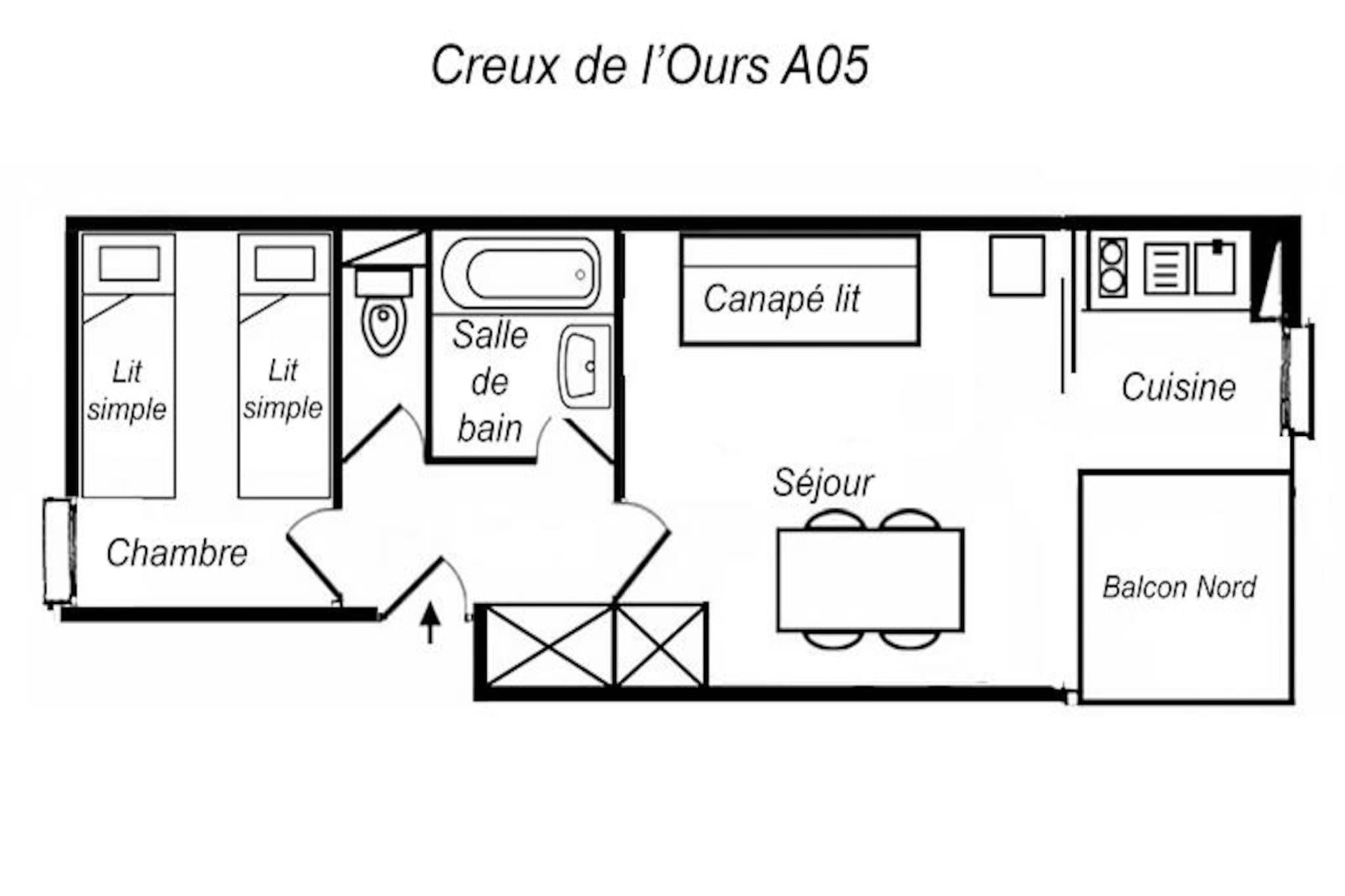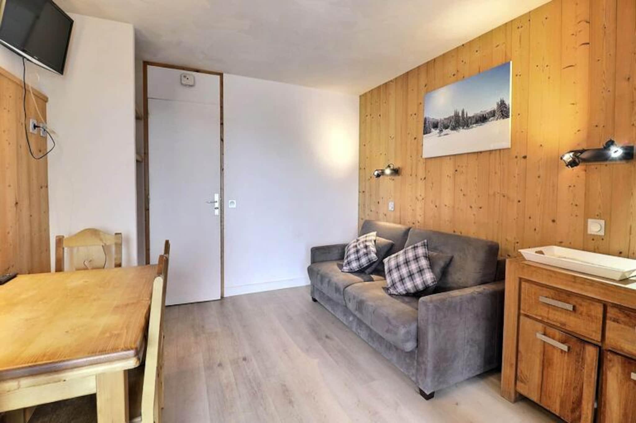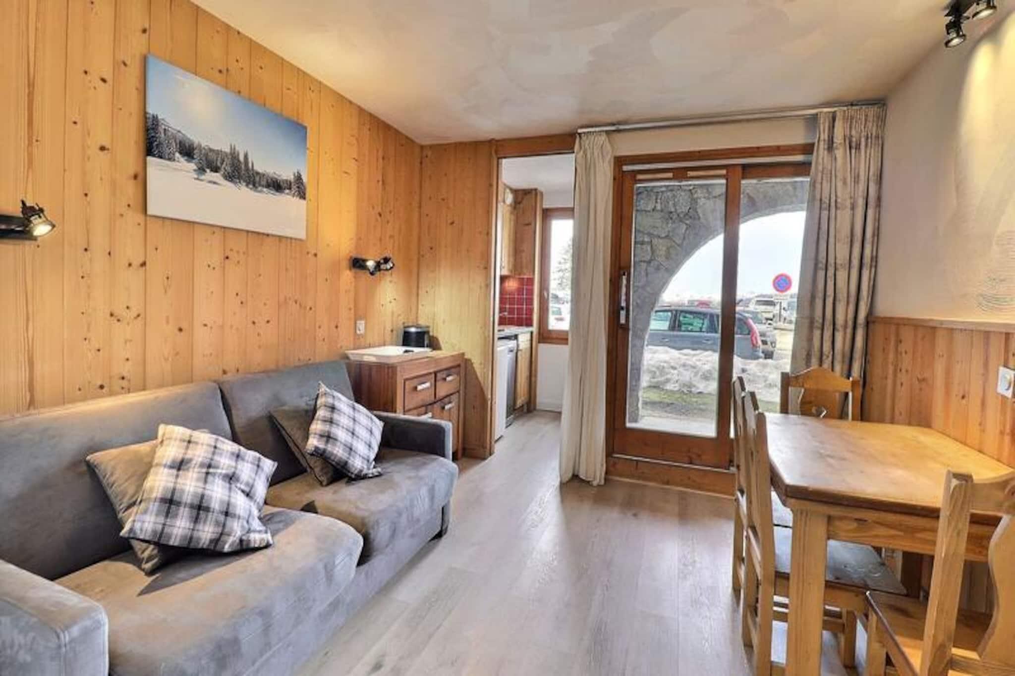 I hjertet af det charmerende Le Hameau-distrikt i Laitelet tilbyder denne hyggelige lejlighed en dejlig alpin ferie med direkte adgang til pisterne og de nærliggende butikker. Forestil dig at træde ud af boligen, krydse en malerisk plads og finde dig selv på en grøn piste, der fører direkte til skiliftens hovedafgangssted. Uanset om du er her for vinterskiløb eller sommerens bjergeventyr, tilbyder Creux de l'Ours-boligen en problemfri forbindelse til de franske alpers skønhed. Chalets-svævebanen, der kører fra tidlig morgen til sen aften, sikrer nem adgang til de omkringliggende områder og gør dit ophold endnu mere bekvemt. \n\nDenne omhyggeligt designede lejlighed i stueetagen har plads til op til fire gæster på sit 27 m² store areal. Stuen har en komfortabel dobbeltsovesofa, mens soveværelset har to enkeltsenge, perfekt til familier eller små grupper. Tekøkkenet, adskilt af en skydedør, er udstyret med moderne faciliteter, herunder mikrobølgeovn/grill, køleskab, keramiske kogeplader, opvaskemaskine og essentielle apparater som kaffemaskine og brødrister. En nordvendt terrasse tilbyder et fredeligt sted at slappe af, og fladskærms-tv og gratis Wi-Fi (afhængigt af tilgængelighed) bidrager til komforten under dit ophold. \n\nUd over boligen vil du blive fordybet i den pulserende atmosfære i Le Hameau, med butikker, restauranter og afterski-muligheder kun få skridt væk. Om vinteren lokker pisterne til spændende eventyr, mens sommeren forvandler regionen til et paradis for vandreture, cykling og udforskning af de majestætiske alpine landskaber. Den nærliggende Chalets-svævebane tilbyder en fantastisk udsigt og nem adgang til områdets højdepunkter, hvilket gør hvert øjeblik uforglemmeligt. \n\nUanset om du søger et roligt tilflugtssted eller en actionfyldt ferie, kombinerer denne lejlighed bekvemmelighed, komfort og de franske alpers charme for en uforglemmelig ferie.